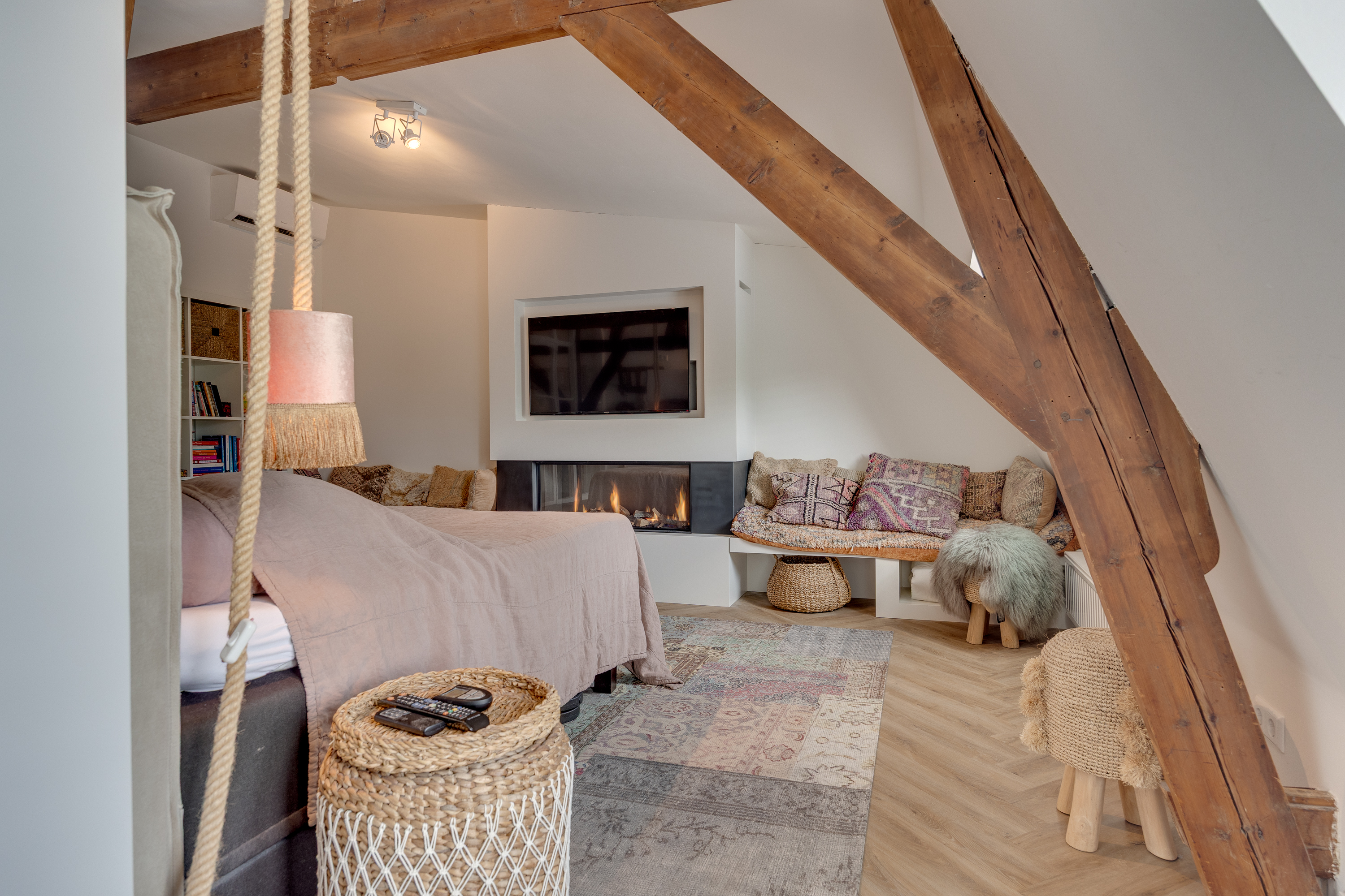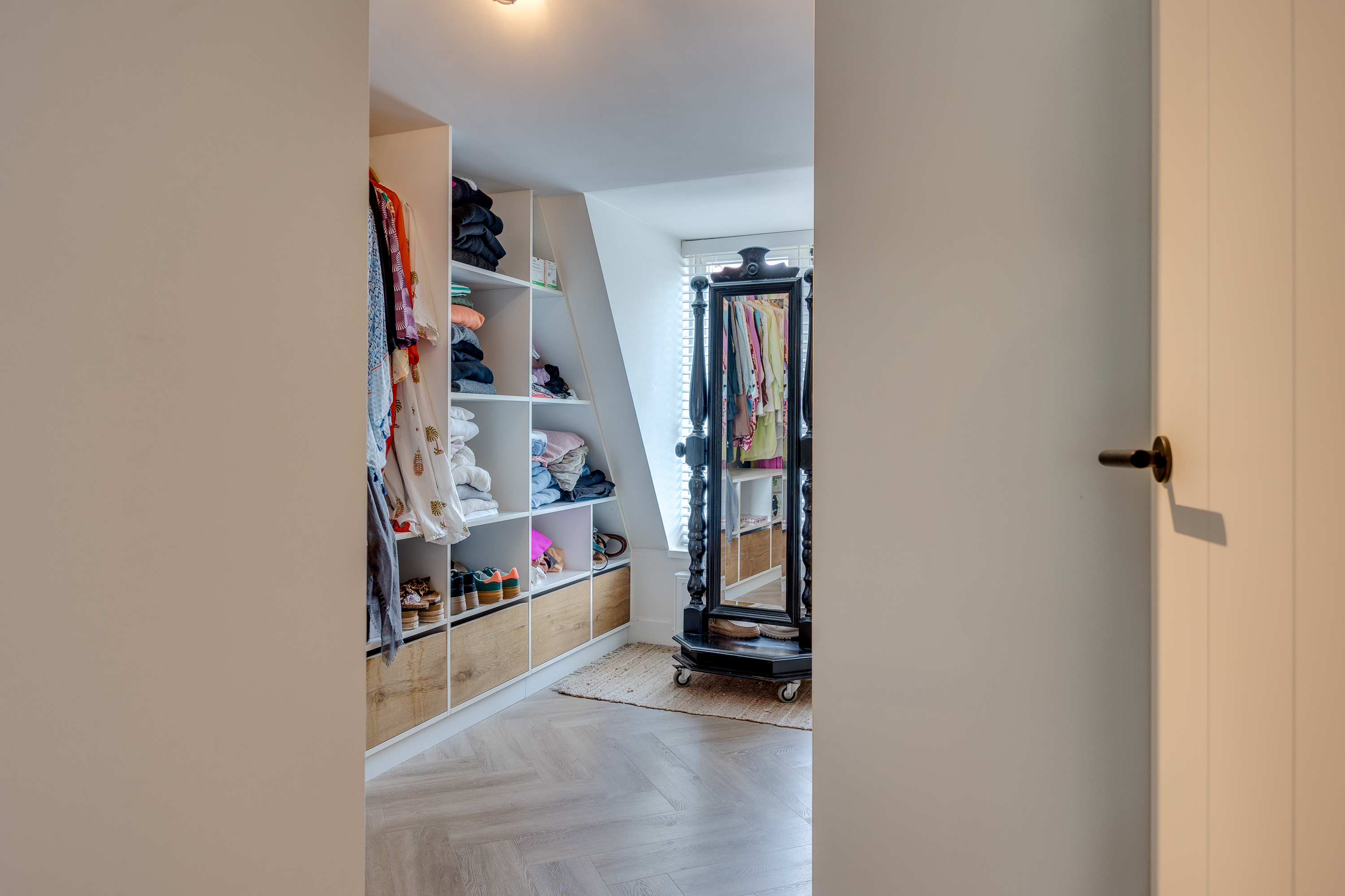The spacious living room at the front is a real eye-catcher, with large windows that provide an abundance of natural light and offer a beautiful view of the lively Kerkbrink. The stylish PVC flooring that runs throughout the entire living area is immediately noticeable. This flooring combines a warm, soothing look with practical features such as durability and ease of maintenance. It forms the perfect basis for any interior. The modern gas fireplace creates a cozy ambiance, ideal for atmospheric evenings. In addition, the air conditioning ensures that the indoor climate remains pleasant throughout the year. Everything about this floor exudes comfort, style, and luxury.