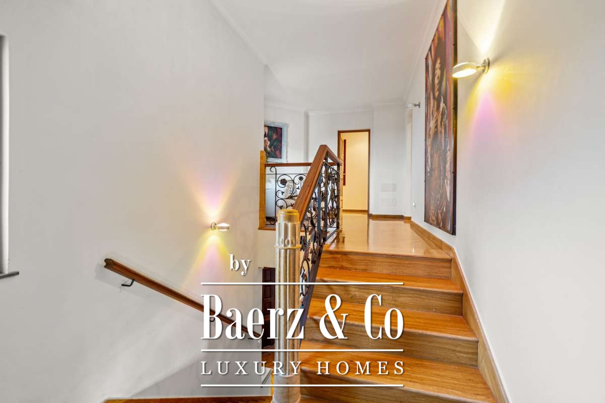 Interiors revolve around generosity of scale and light, with voluminous ceilings, expansive windows and thoughtfully arranged open-plan living spaces. The fitted kitchen provides a social hub for dinners with a view, while the master suite has its own terrace, spacious walk-in closet and a bathroom featuring a walk-in shower and freestanding bath. Additional amenities include a dedicated gym, playroom and separate laundry space.