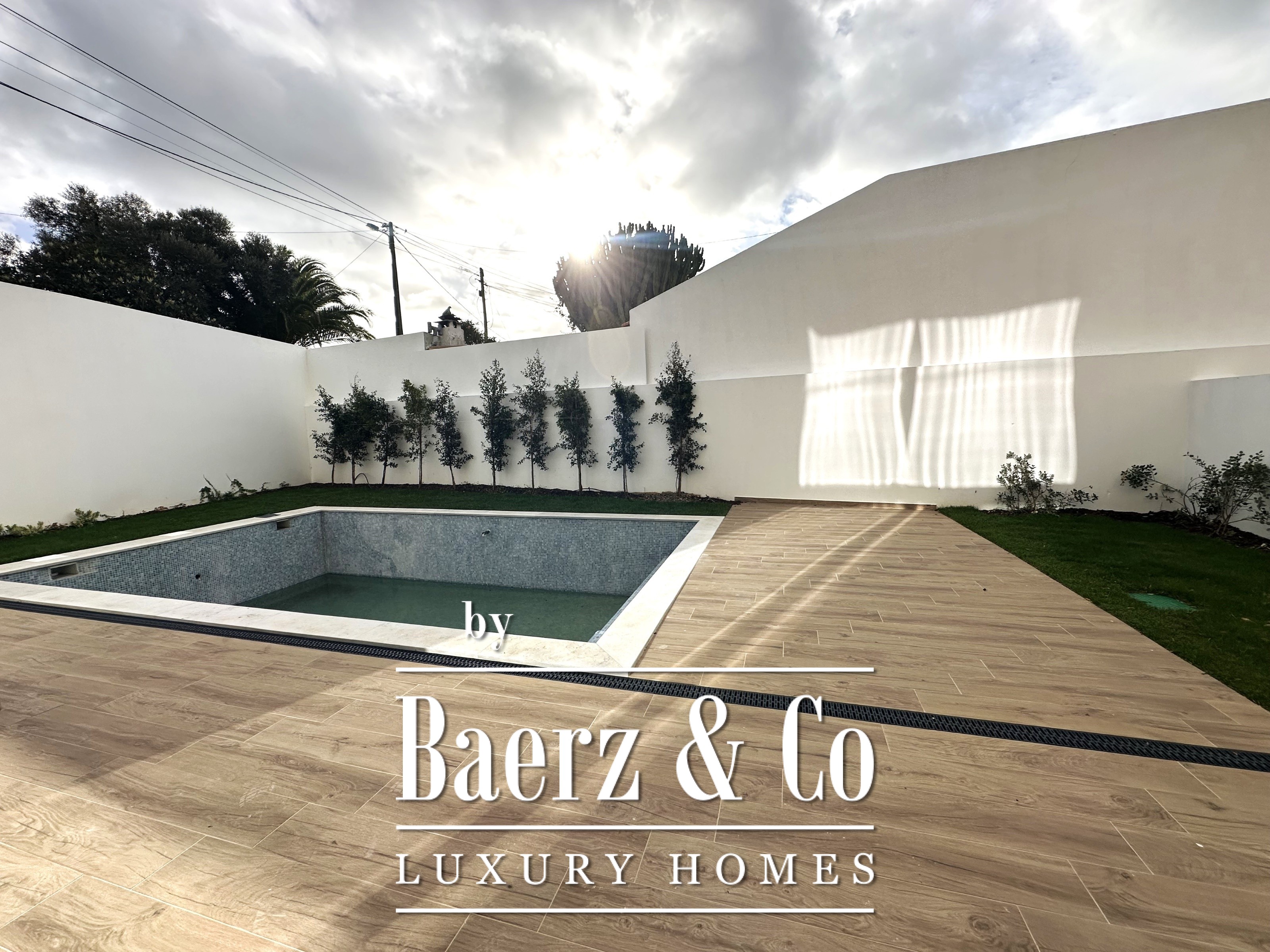 Villa Cascais stands as a discreet statement of modern architecture within an exclusive closed condominium of only four units. The residence offers 570 m² of living space and a plot measuring 2,743 m², creating a rare sense of privacy close to the rhythms of Cascais. This villa features four bedrooms and six bathrooms, its design anchored by a 62 m² living room seamlessly connected to a contemporary kitchen, ideal for gatherings where light is the central element. The ground floor includes a tranquil suite of 12 m², while three additional suites on the lower level—measuring 27 m², 13.43 m², and 12 m²—offer generous space, high-standard finishes, and remarkable potential for personalisation.