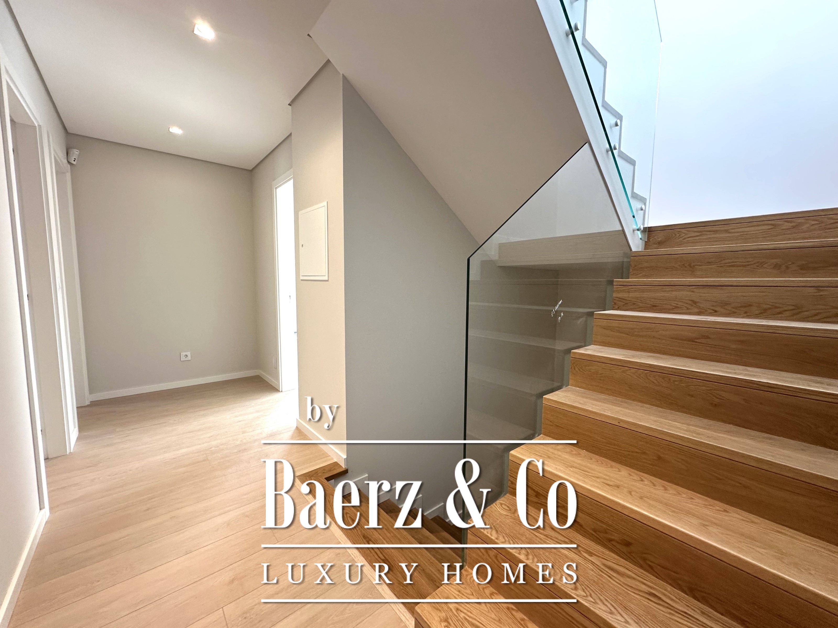 Villa Cascais captures the essence of contemporary architecture, situated within an intimate gated community of just four residences in Murchas. This villa, with its 570 m² of total living area and 212 m² of private gross space, draws light into every room, creating an atmosphere that feels both private and open. The main living room flows seamlessly into the kitchen, offering 62 m² of unobstructed space for gathering and daily life. On the same floor, a dedicated suite of 12 m² ensures privacy and comfort, complemented by an additional guest toilet.