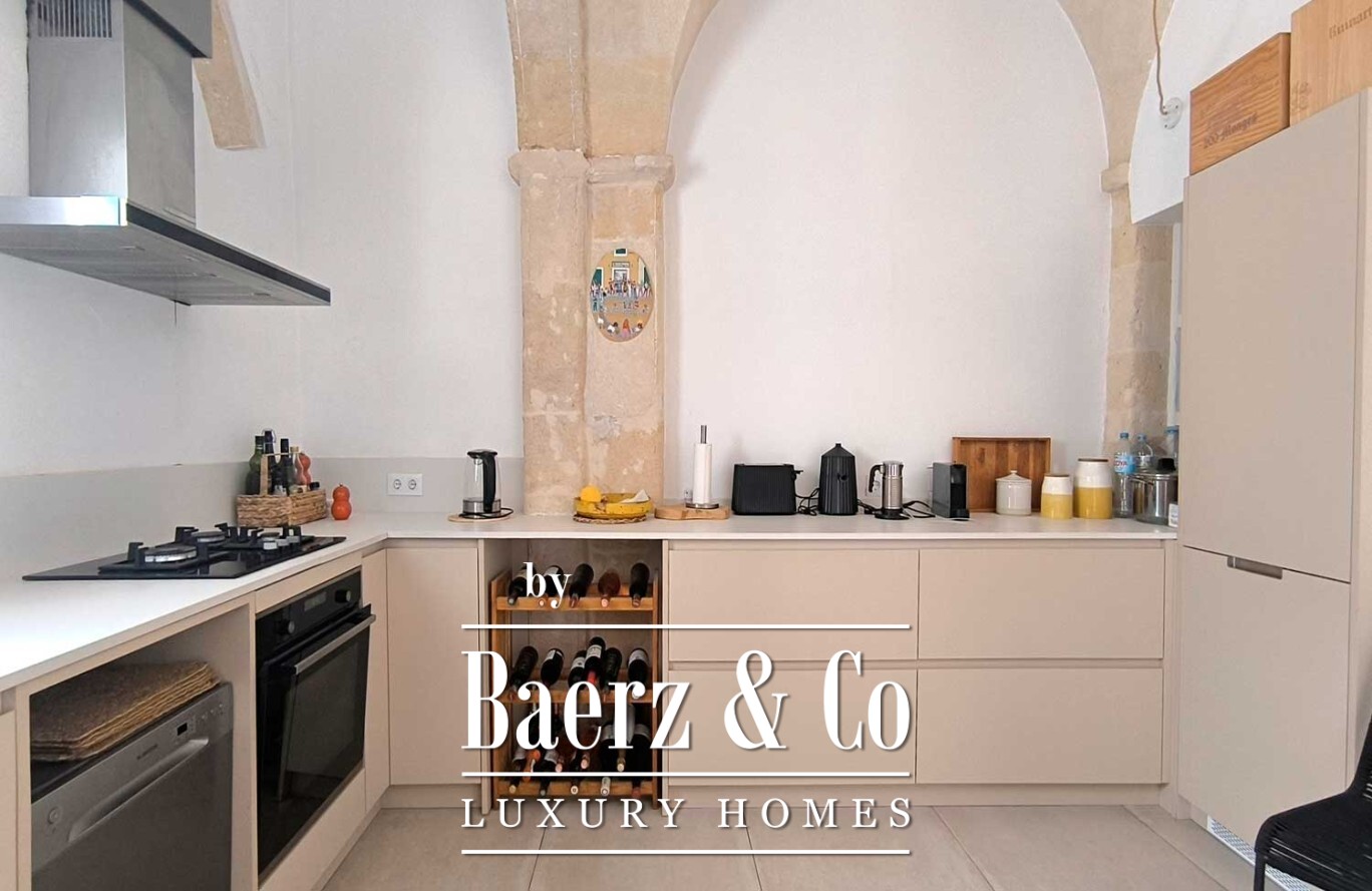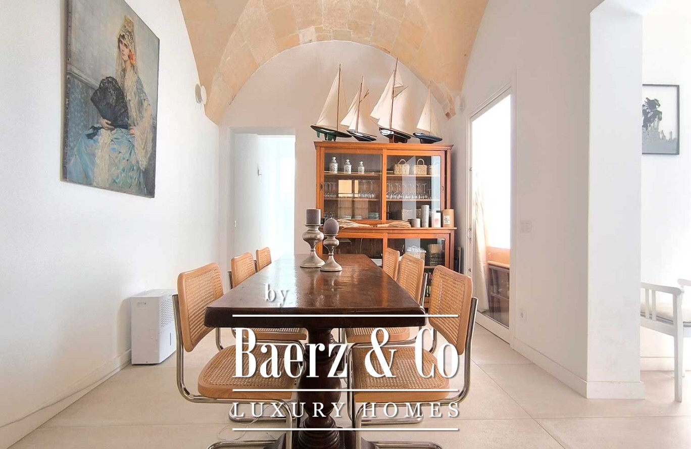 Townhouse Ciutadella de Menorca embodies a rare combination of authenticity and discreet luxury within 160 m² of meticulously reimagined living space. Upon entry, original architectural elements are paired with refined materials, offering a balance of character and contemporary comfort. The kitchen, nestled beneath an elegant marés vault, fuses historic charm with day-to-day functionality. Vaulted living and dining rooms set the rhythm for relaxed gatherings and considered living.