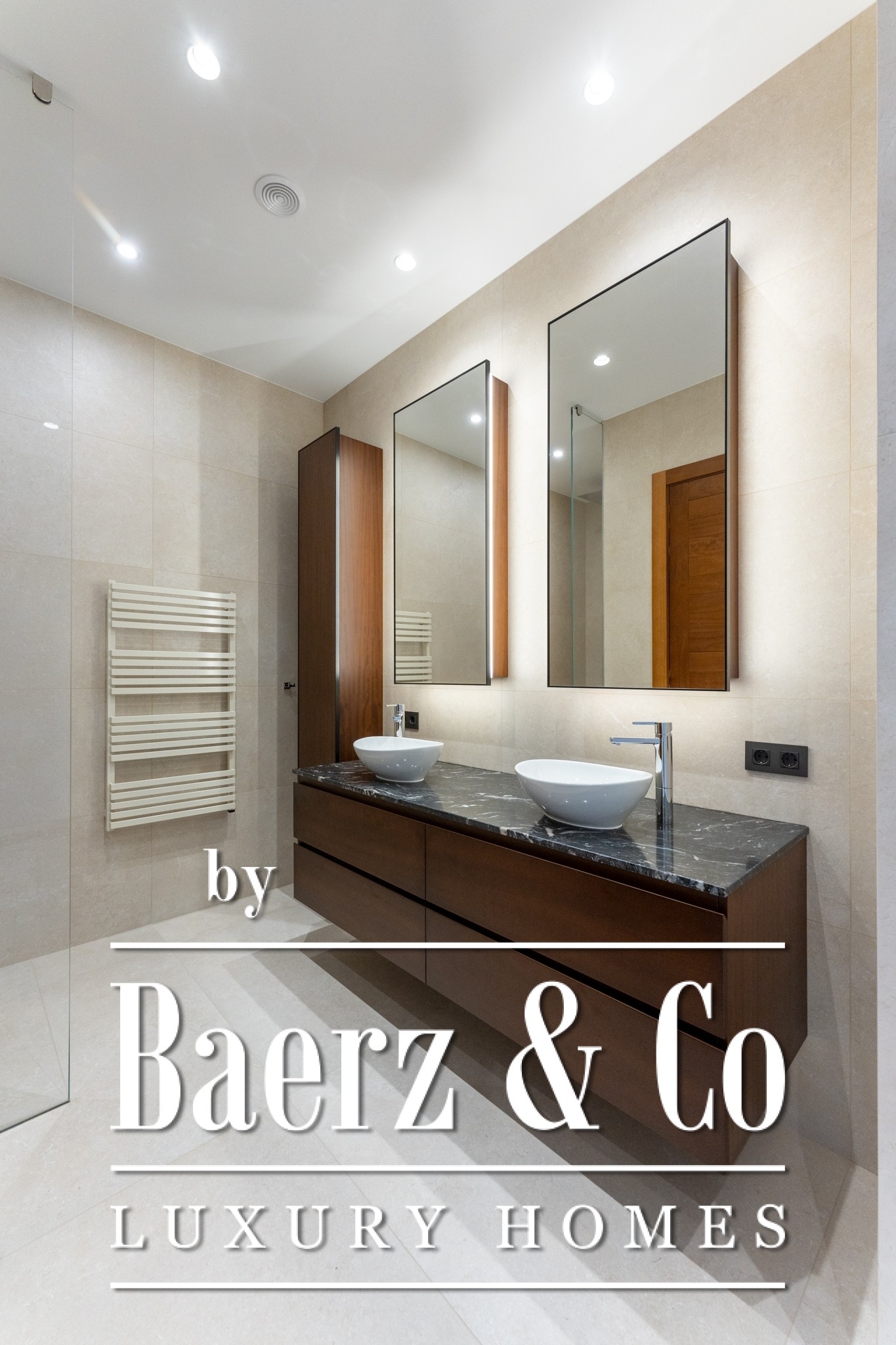There is a closed garage for 2 cars and a large multifunctional room, currently furnished as a gym. There is also a place for the BBQ with a chill-out zone and several terraces for effortless outdoor living.
