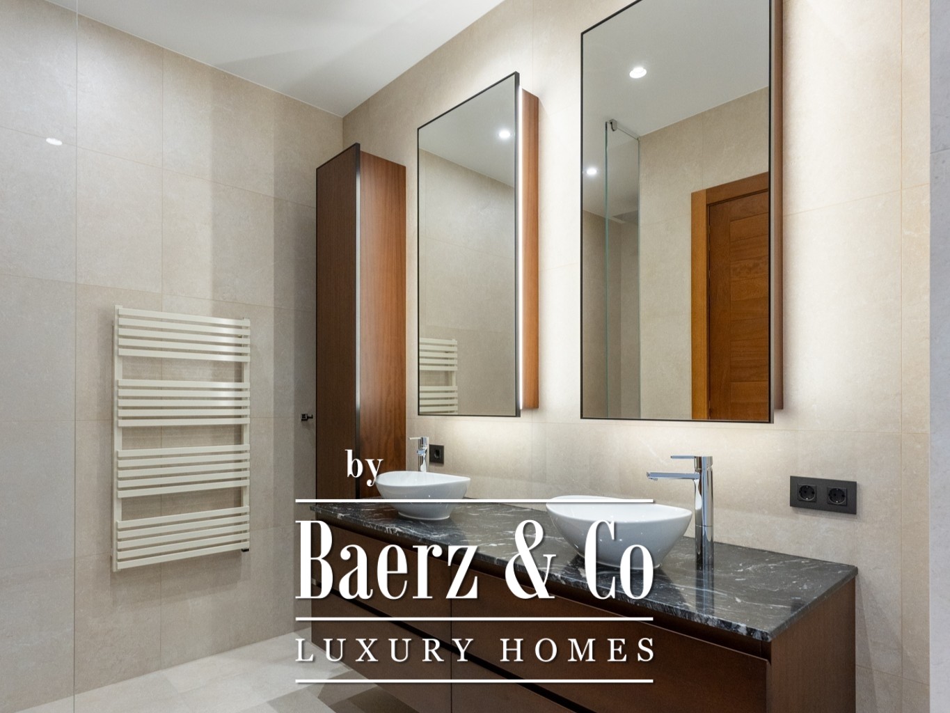 On the upper floor, you will find one of the bedrooms with an en-suite bathroom and private terrace and a jacuzzi with outdoor shower. Next to this is the spacious living room and a sleek designer kitchen, all finished to an impeccable standard, with a terrace. The villa has a total of 3 spacious en-suite bedrooms and a total of 6 beautiful bathrooms and 2 kitchens.