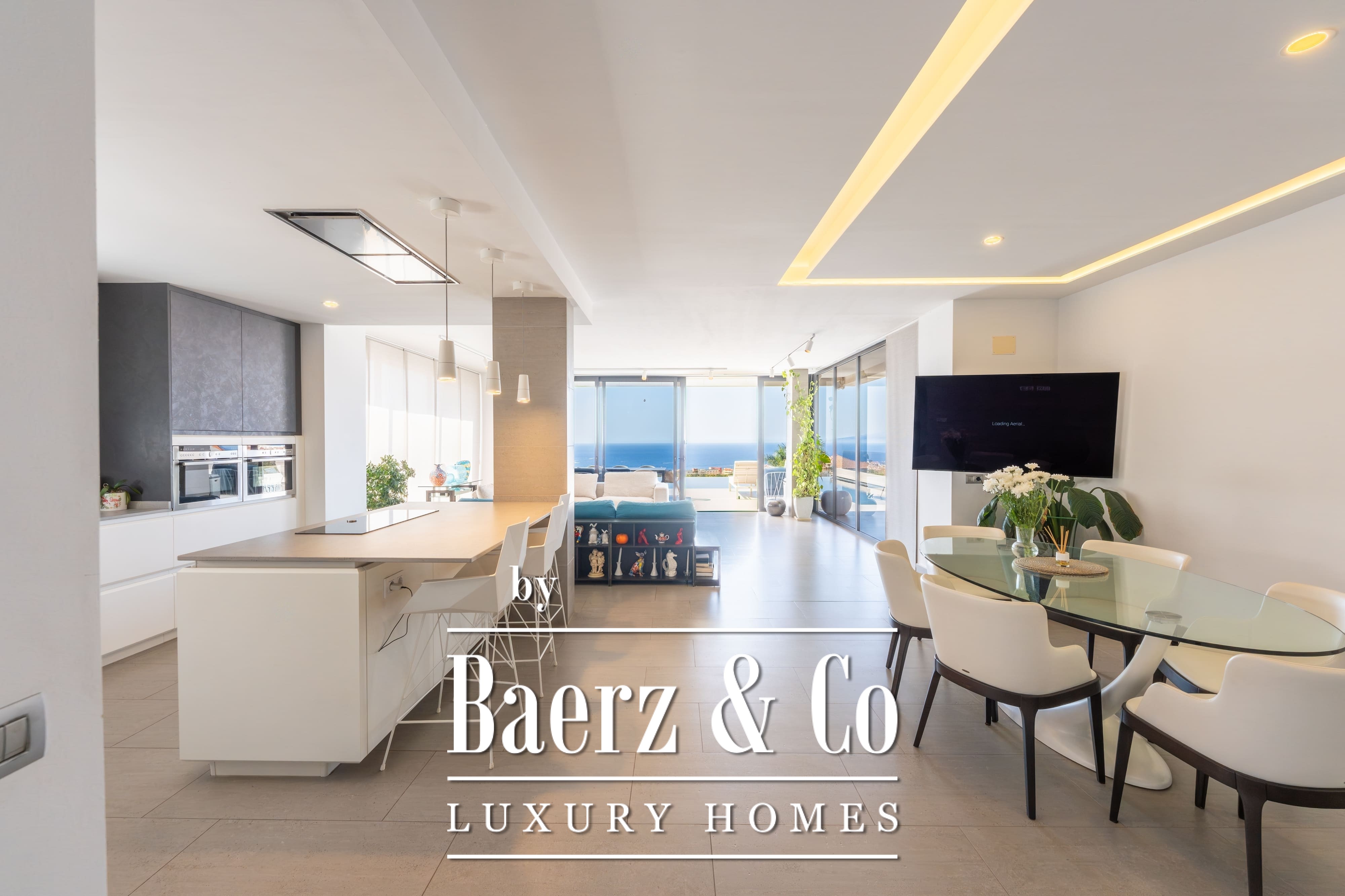Multiple terraces unite the levels, establishing a rhythm of indoor and outdoor life complemented by a private heated swimming pool, sunbathing spaces, and chill-out zones. The villa features two kitchens, fitted wardrobes, air-conditioning, and a closed garage for several vehicles. El Madroñal is known for its discretion and tranquility, yet is moments from international schools, upscale shops, and gourmet dining. This modern villa for sale in Costa Adeje is presented furnished, reflecting a blend of luxury, functional design, and privilege in southern Tenerife.