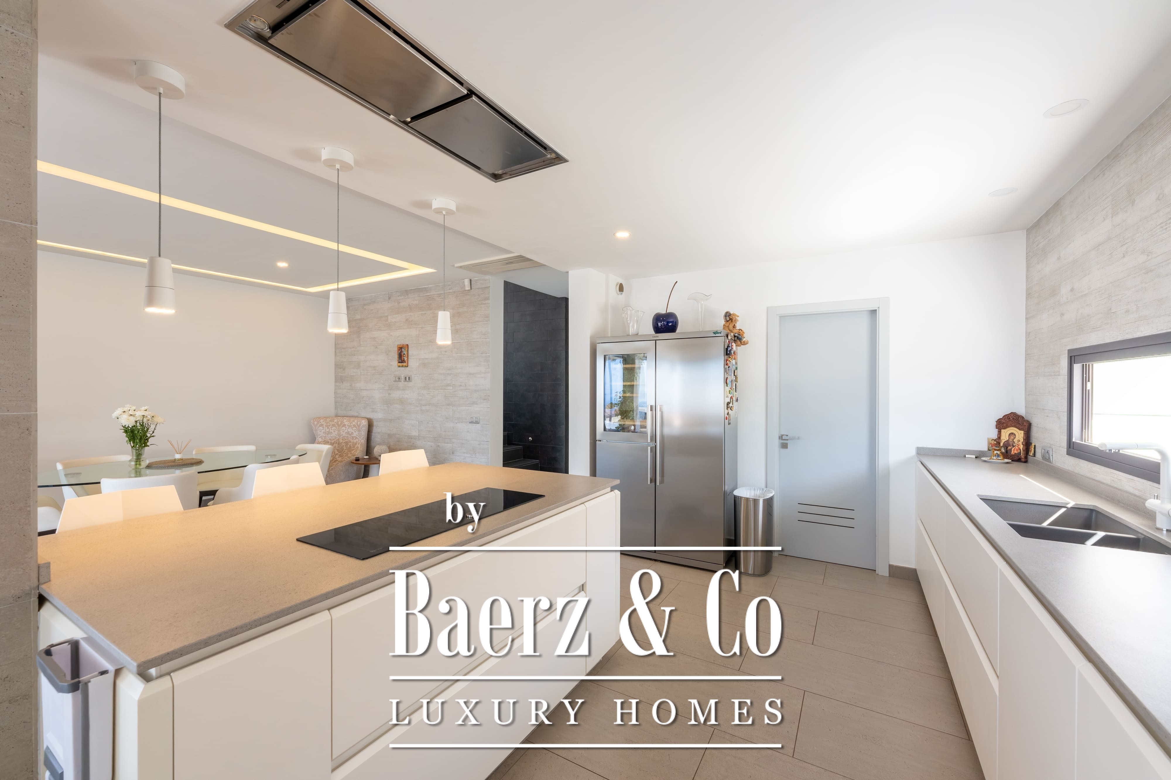 Modern villa Costa Adeje is set within the prestigious enclave of El Madroñal, offering an architectural composition where light and horizon are ever-present. The residence spans 528.51 m² and is introduced by broad terraces framing panoramic views across the Atlantic Ocean and toward La Gomera Island. Five bedrooms are arranged over three levels, each space suffused with daylight and a sense of calm. On the upper floor, three bedrooms access a large terrace that draws the landscape inward; the main floor adds another rear-facing bedroom with seamless access to open-air leisure areas. The lower level offers a self-contained apartment with bedroom, bathroom, a dedicated kitchen, and games room, well-suited for guest privacy or generational living.