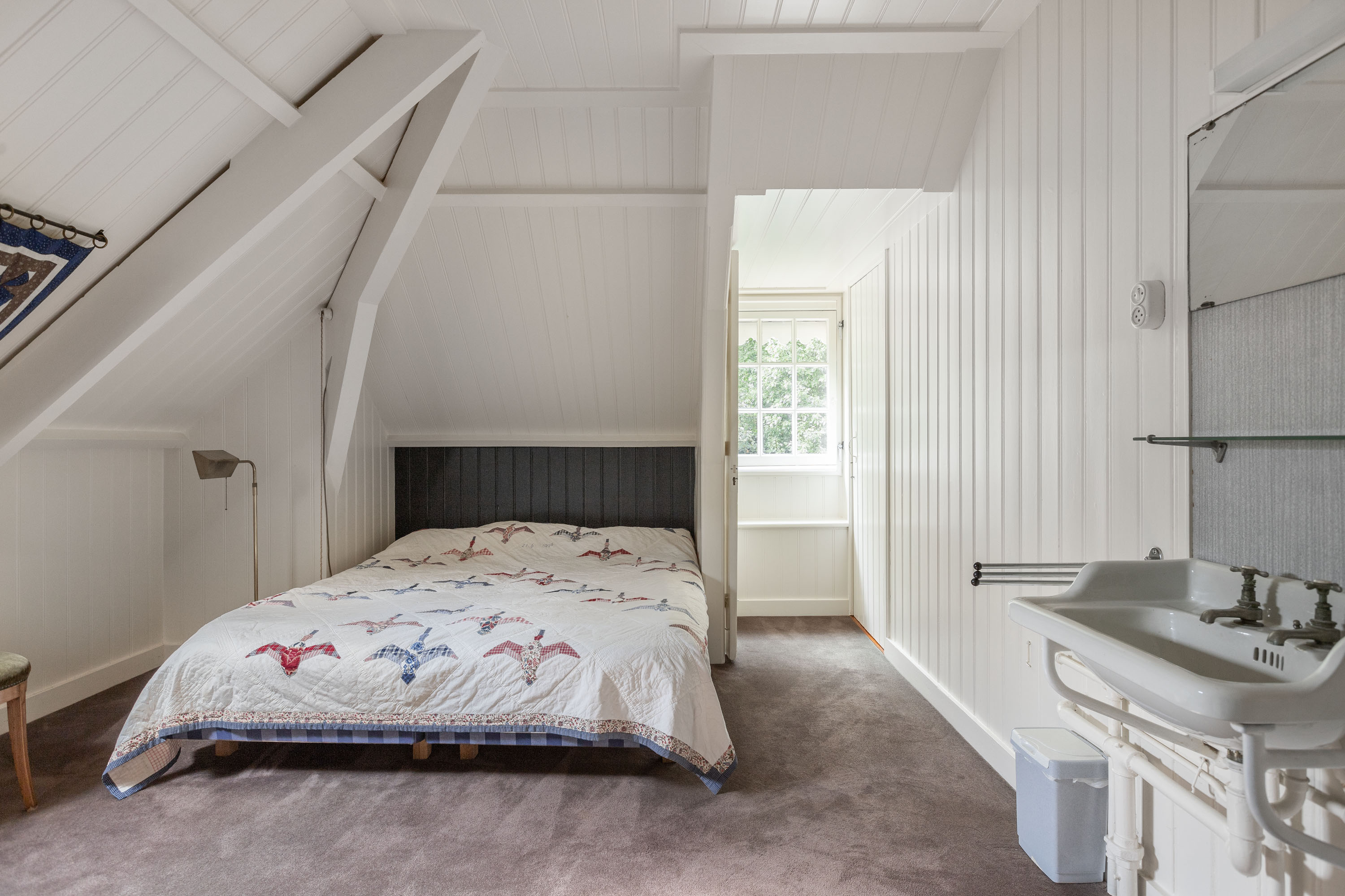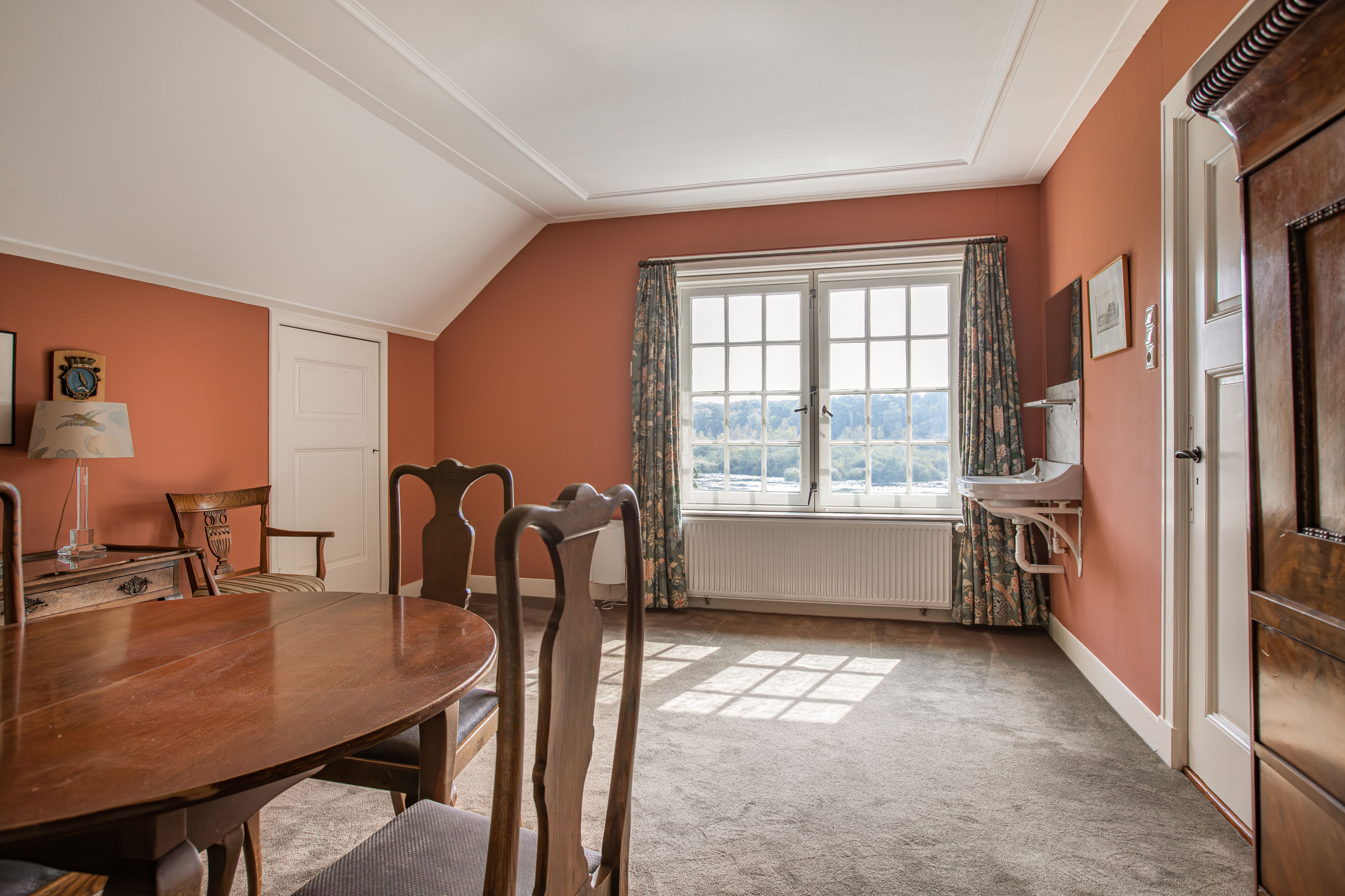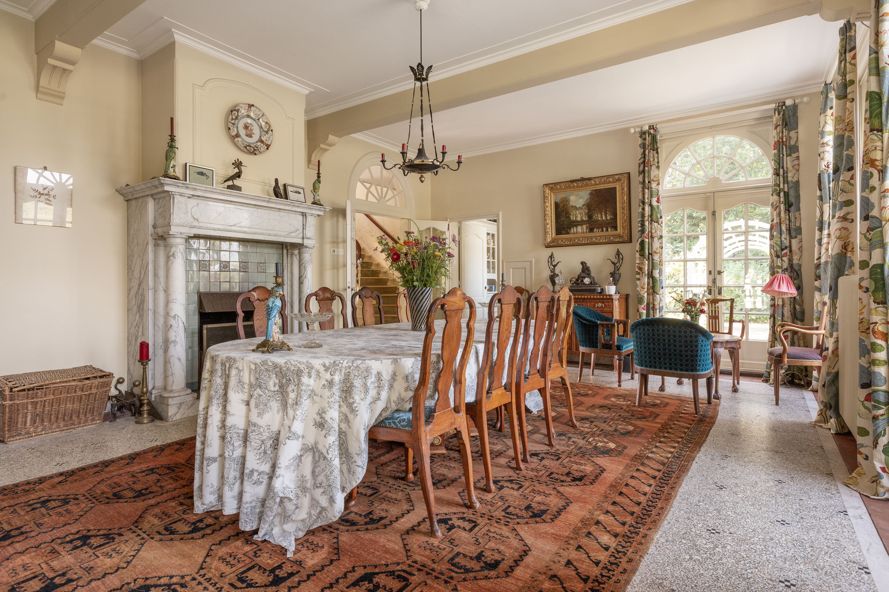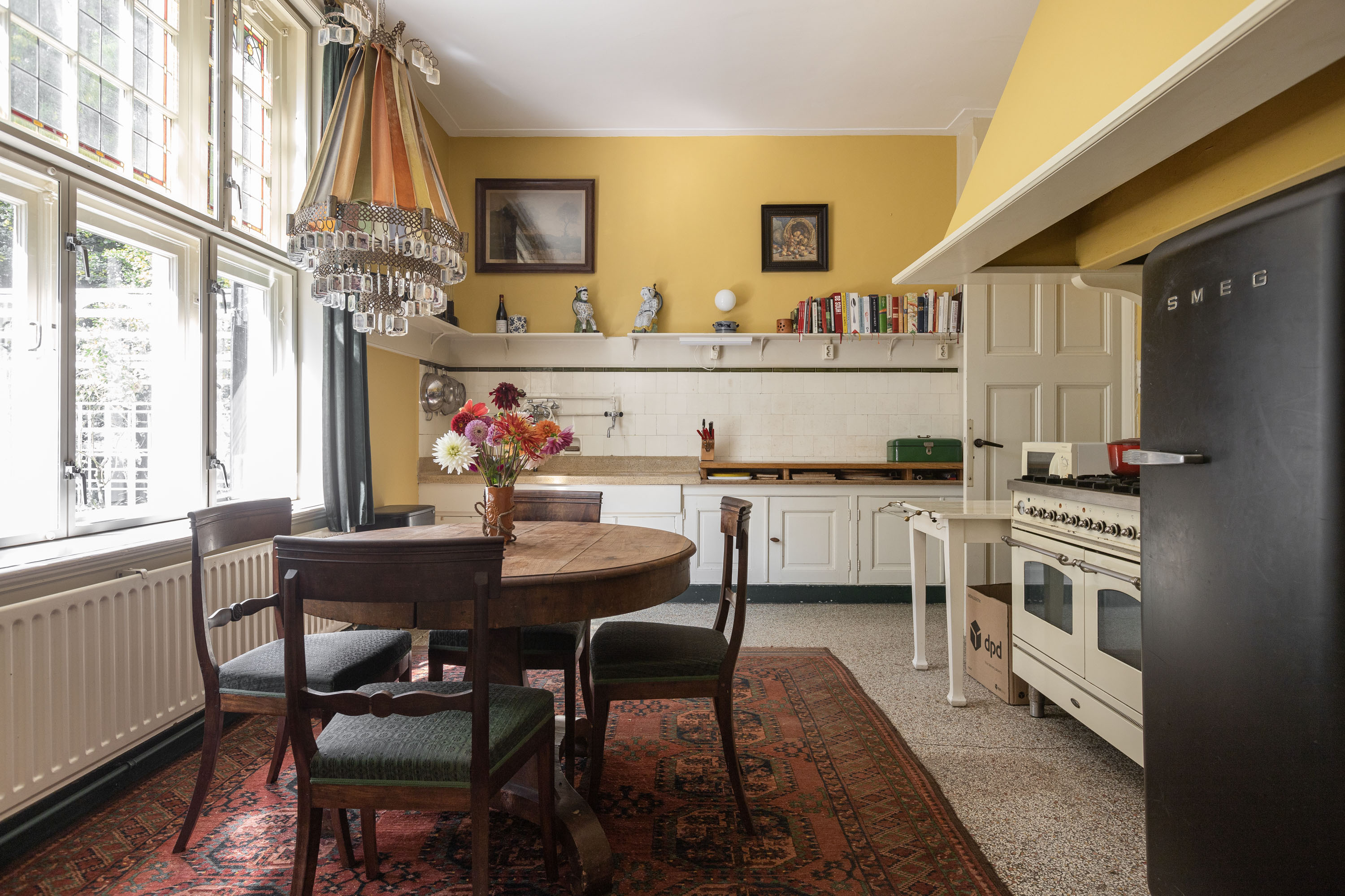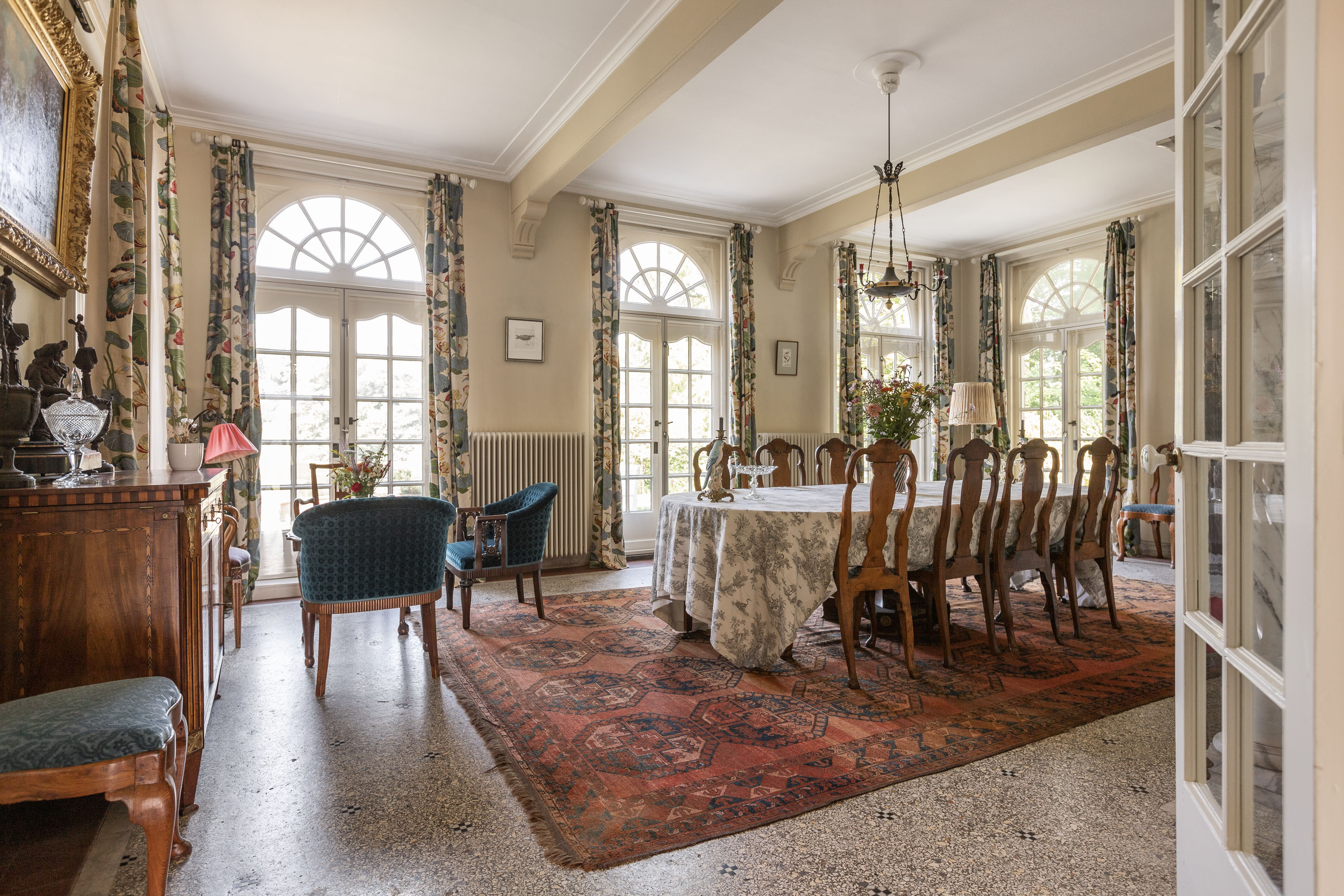 This villa, built in 1901 and designed by architect Karel J. Muller in chalet style, is a national monument. Architect Muller is known for projects such as the Rijksmuseum in Enschede, Tuindorp 't Lansink in Hengelo and several prestigious country houses in Twente. The villa was originally commissioned by Otto Stork, a member of a well-known industrial family. After nearly a century of family ownership the Overijssels Landschap Foundation purchased the Lonnekermeer estate in the early 2000’s including this villa, which was later sold to the current residents with the land leased on a hereditary basis. At the time the house was in a poor state of repair and was subsequently restored to its former glory, preserving its original character and many authentic details. Features such as the terrazzo floors and the original parquet flooring remain intact. The numerous built-in cabinets and service cabinets in the kitchen and pantry are still present. The three fireplaces, two bathrooms and five toilets, most of them with unique facilitary facilities, are also still part of the property. Some original light fixtures have been preserved, as well as the apple drying cabinets in the basement. The many windows provide a very pleasant natural light and offer phenomenal views on all sides. Nearly all transom windows contain stained glass. Despite its age and the focus on preserving details, the villa offers modern comfort. The entire villa has secondary glazing, cavity walls and an insulated roof. In 2023 a pellet stove system, a wood stove and a heat pump boiler were installed. Thanks to careful and systematic annual maintenance supervised by the Monumentenwacht, the house is currently in excellent condition. A structural report is available.