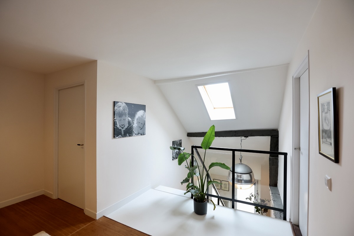 As you move further into the home, the back opens up to a surprisingly large and bright living room, where a fireplace sets the tone for cozy winter evenings. This space flows seamlessly into the dining area and modern open-plan kitchen, fitted with high-quality Miele built-in appliances – together forming the heart of the home with a view of the deep garden and vast landscape beyond. No painting can match the beauty of this view. A nearby utility room offers extra storage and convenience.