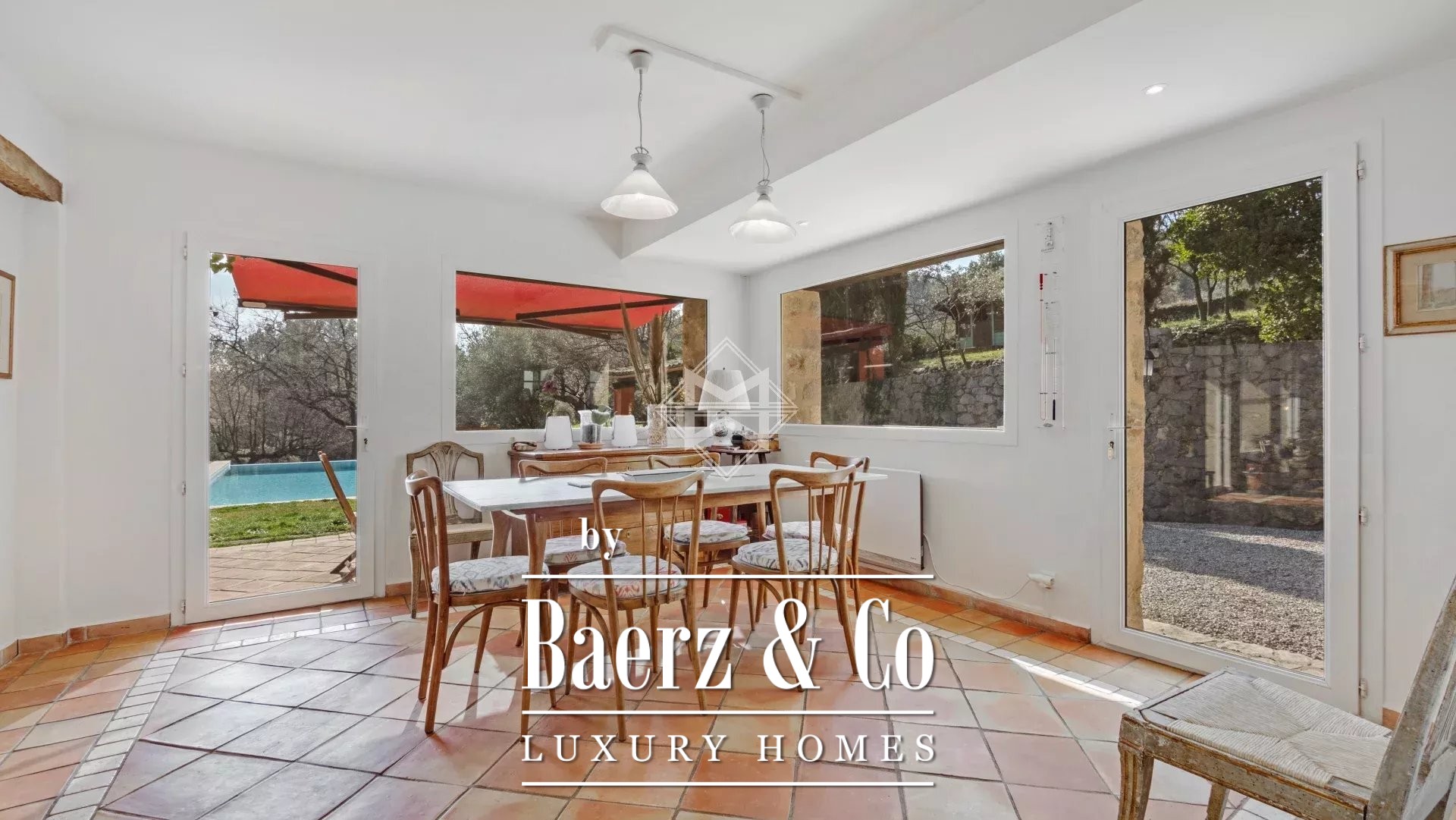 The property includes a 41 m² guest house, a sauna, and an additional independent guest room with a private shower. Amenities such as air-conditioning, double and single glazing, internet, intercom, electric gate, bowling green, and a heated swimming pool add to the sense of ease and year-round enjoyment. Two garages and a dedicated laundry room complete the offering, ensuring both practicality and discretion for elegant village living. This luxury house for sale in Fayence invites moments of calm and connection, just minutes from the heart of Provence.