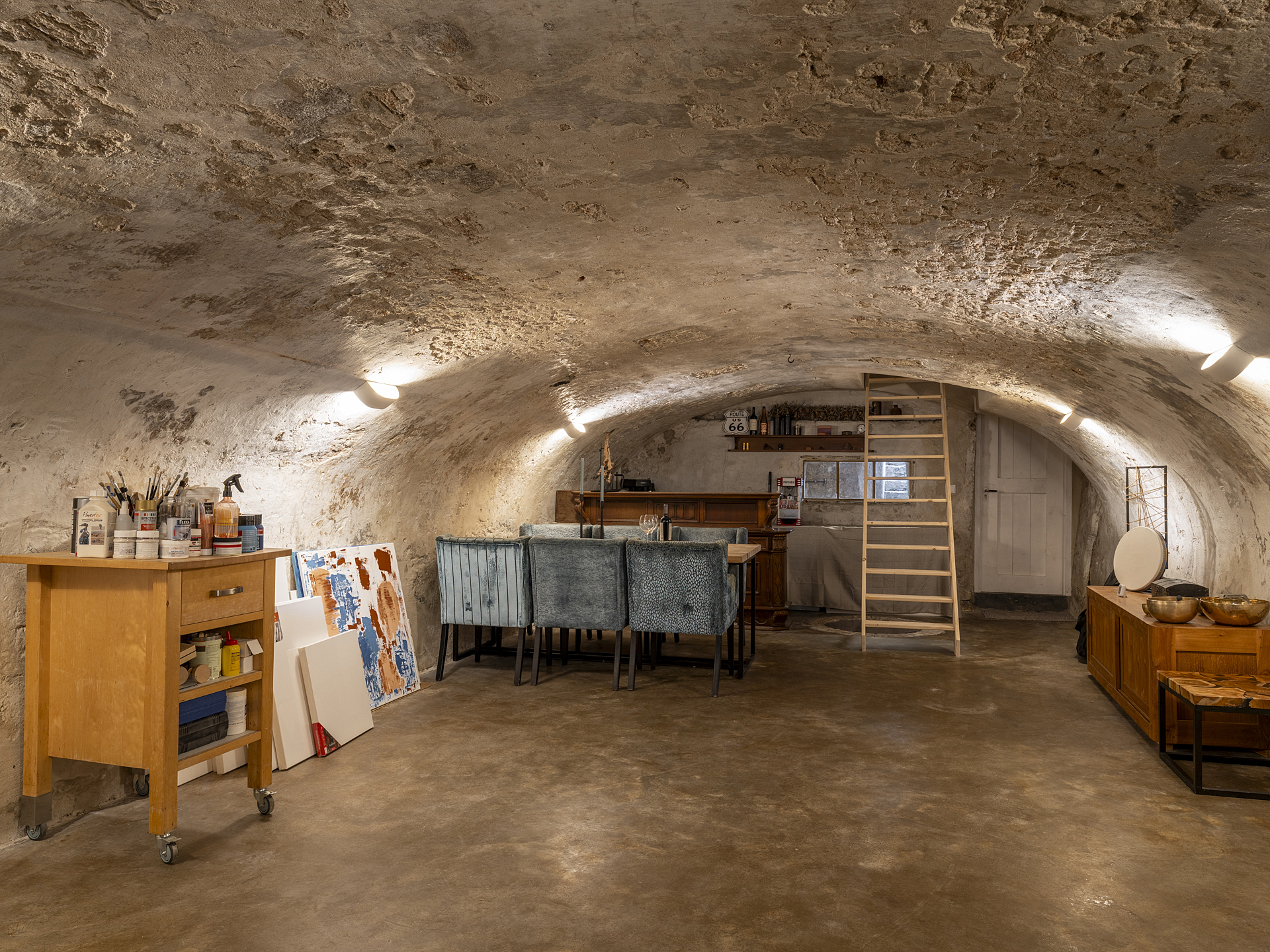 The cellar features an insulated polished concrete floor with underfloor heating. The vaulted ceiling and authentic water well add to the atmospheric, nostalgic ambiance.