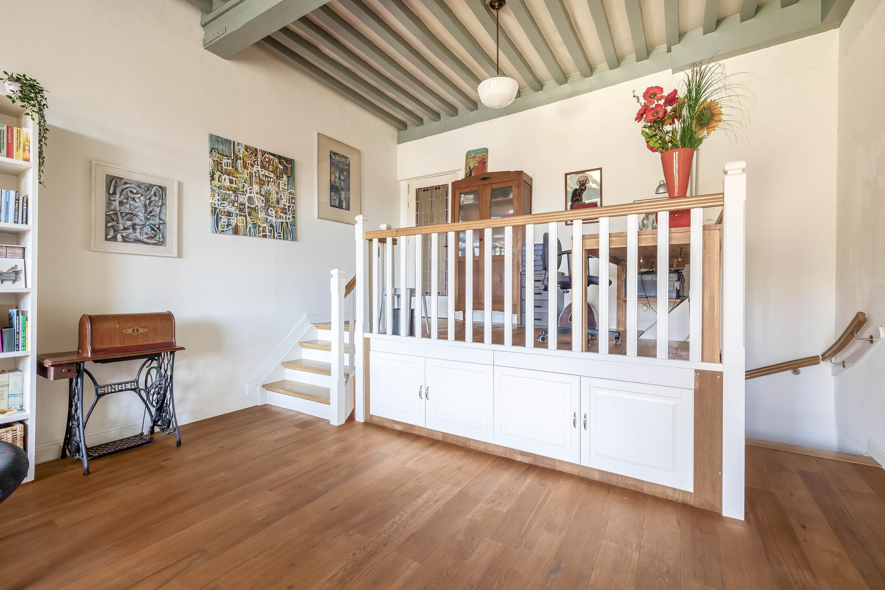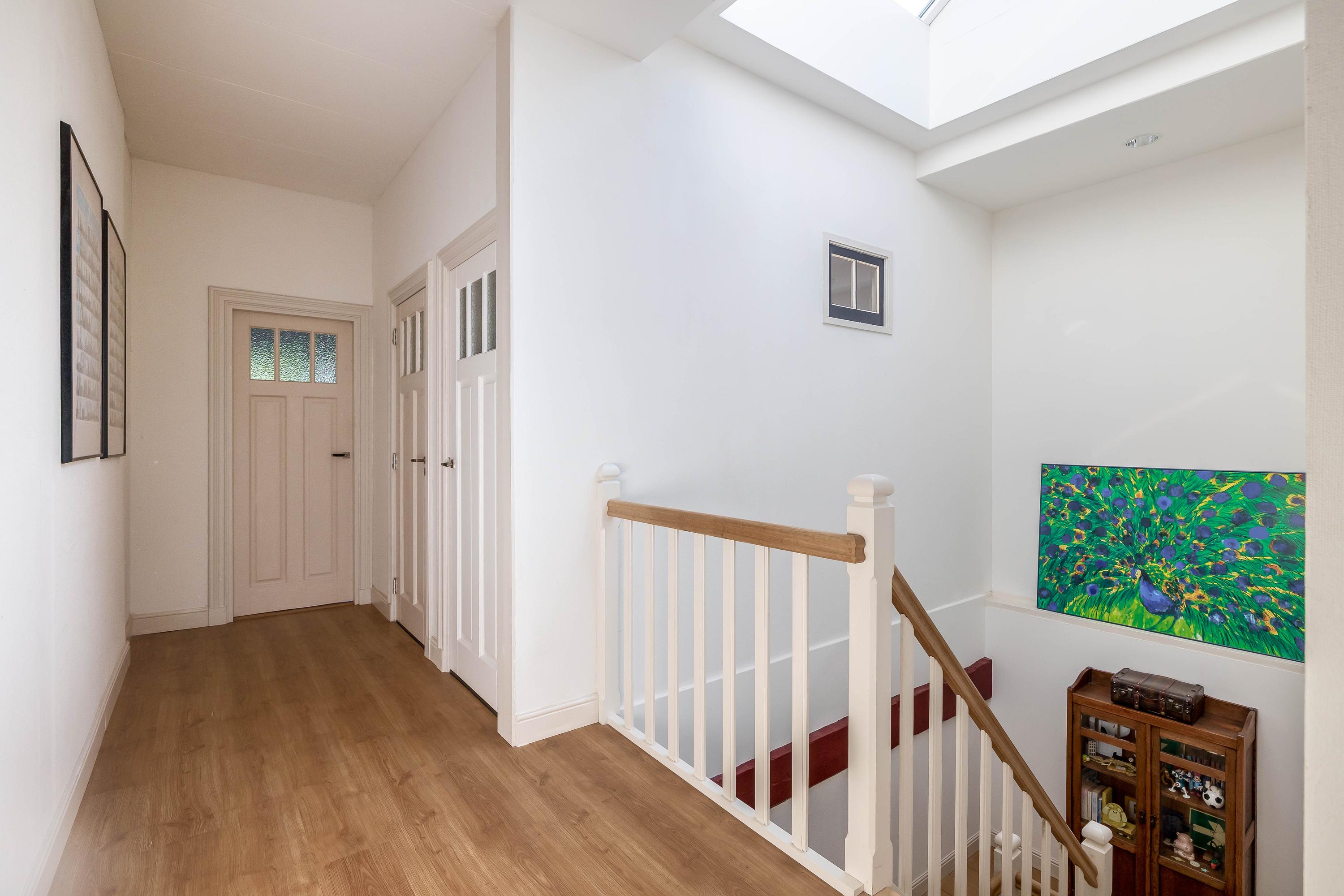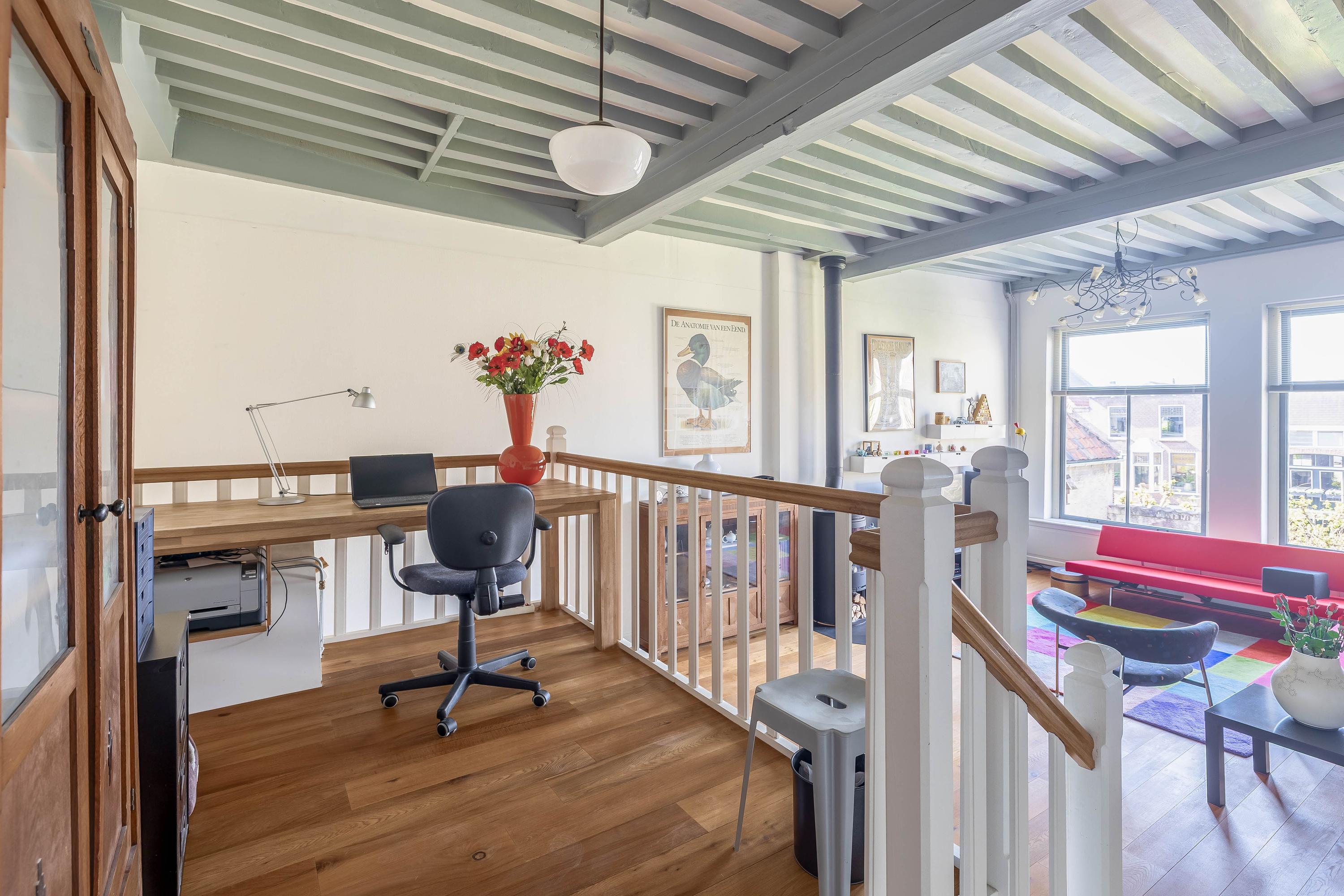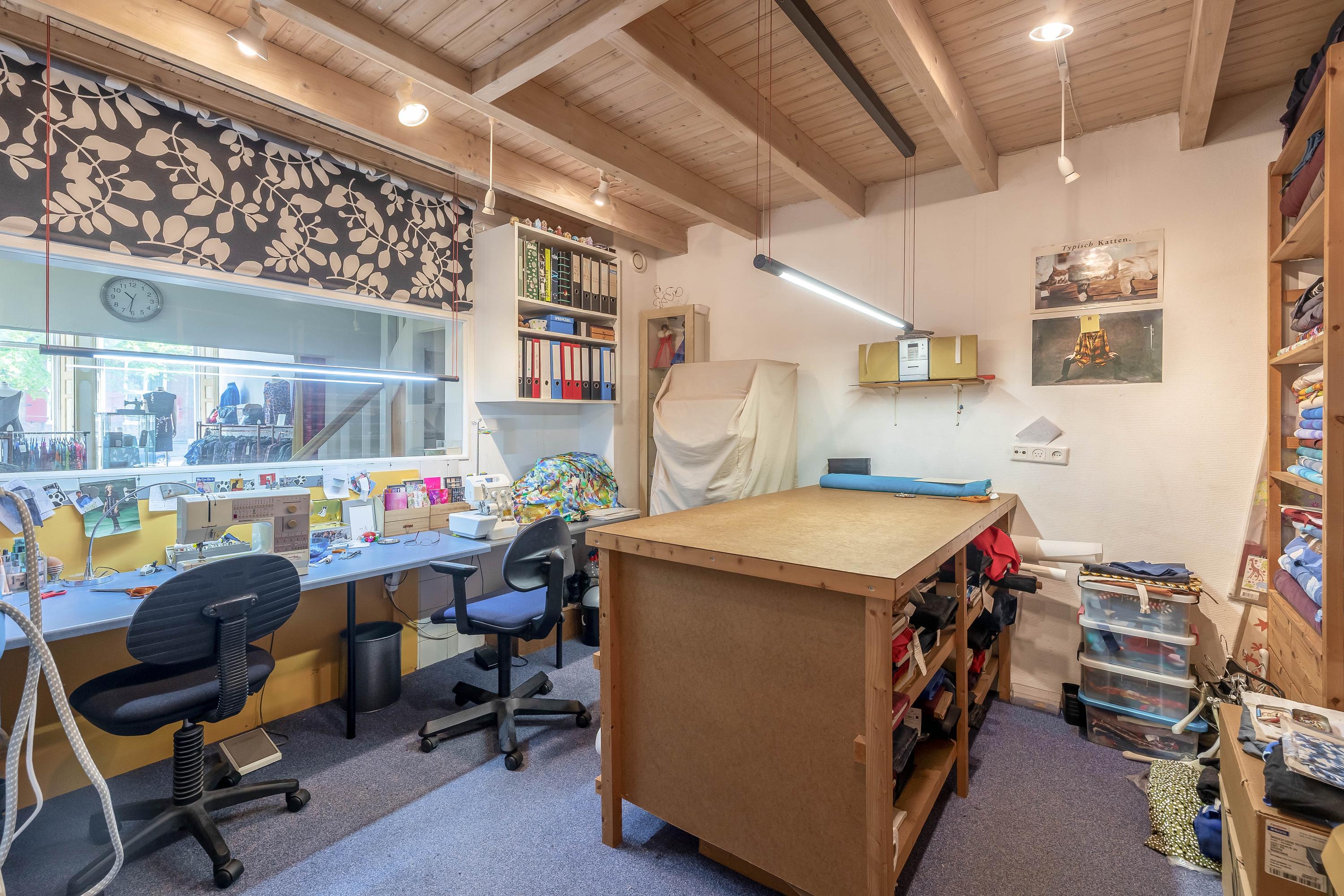 Four bedrooms and one bathroom are complemented by multiple living and work spaces, providing flexibility for residential, office, or shop use. Renovated since 2008, the house now includes new rear windows with HR++ glass, insulated roofing, a new oak staircase, underfloor heating, and a redesigned kitchen and garden.