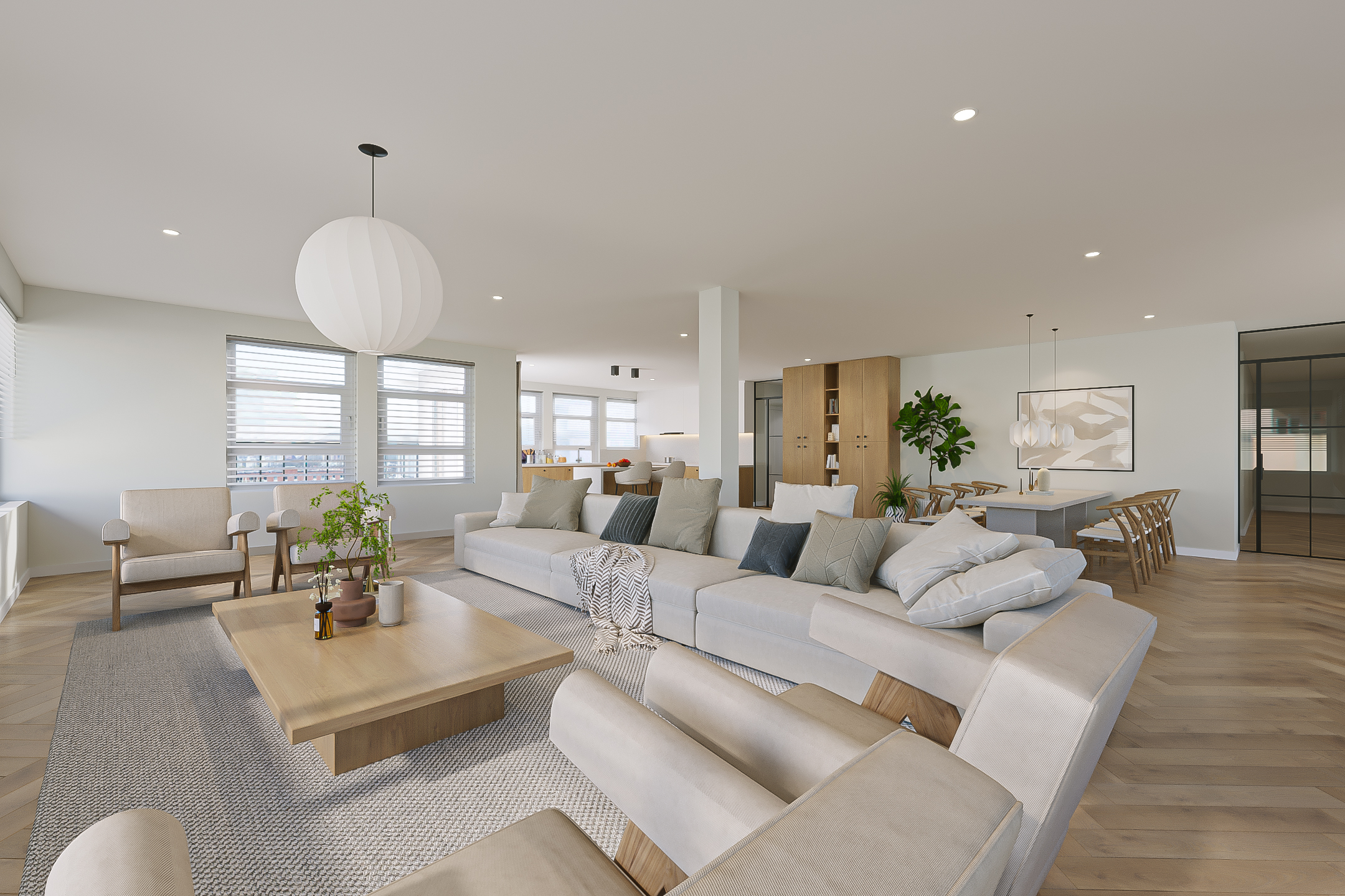 Penthouse Groningen is a rare residence offering refined urban living at the edge of the city’s historic heart. This exclusive penthouse provides 263 m² of living space, where floor-to-ceiling views extend over the Verbindingskanaal, the Zuiderhaven, and the tree-lined Praediniussingel. The property’s distinctive design, achieved by uniting two penthouses, creates a spacious layout with four bedrooms and two bathrooms, including features such as a whirlpool, sauna, and steam cabin.