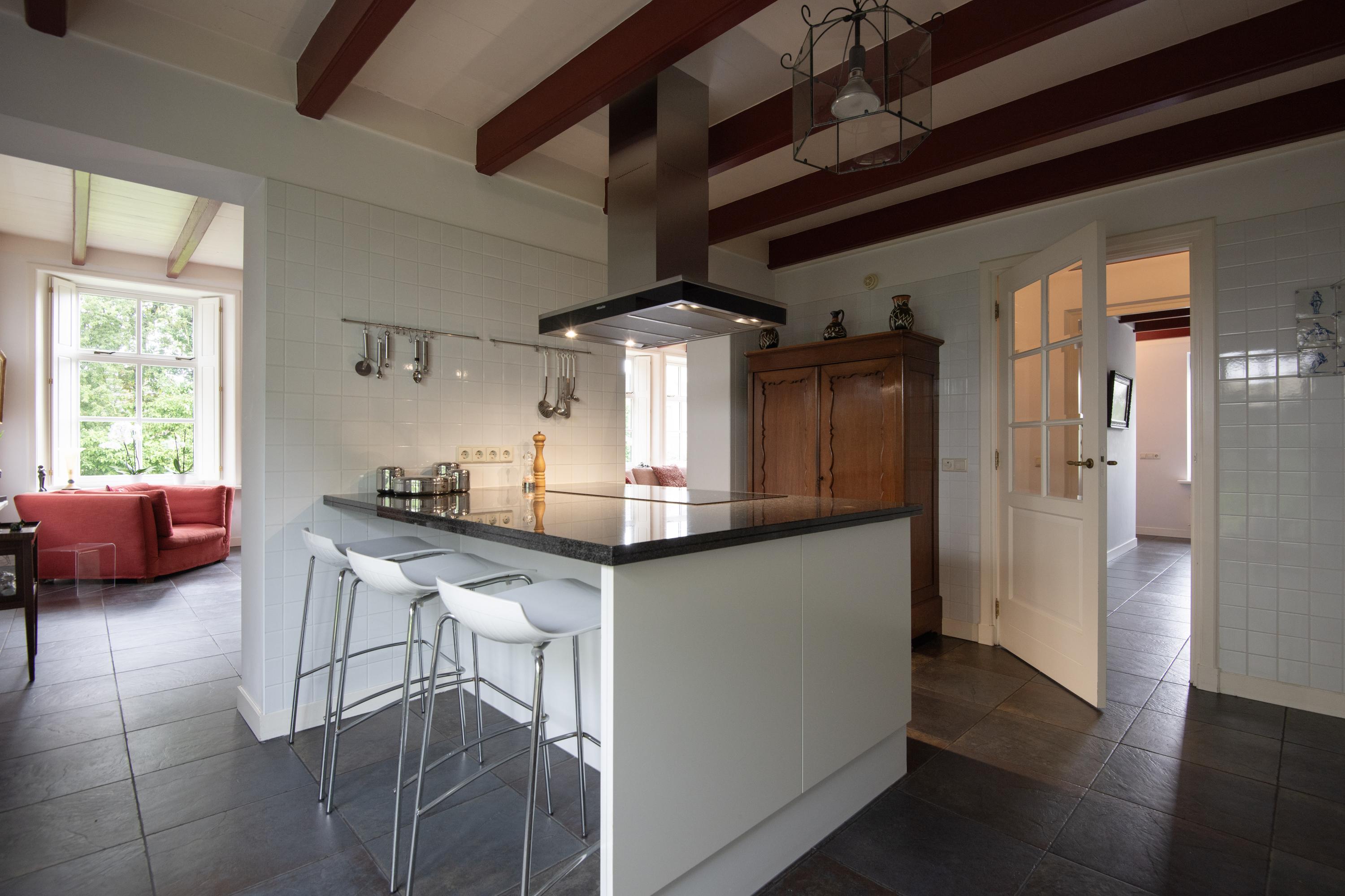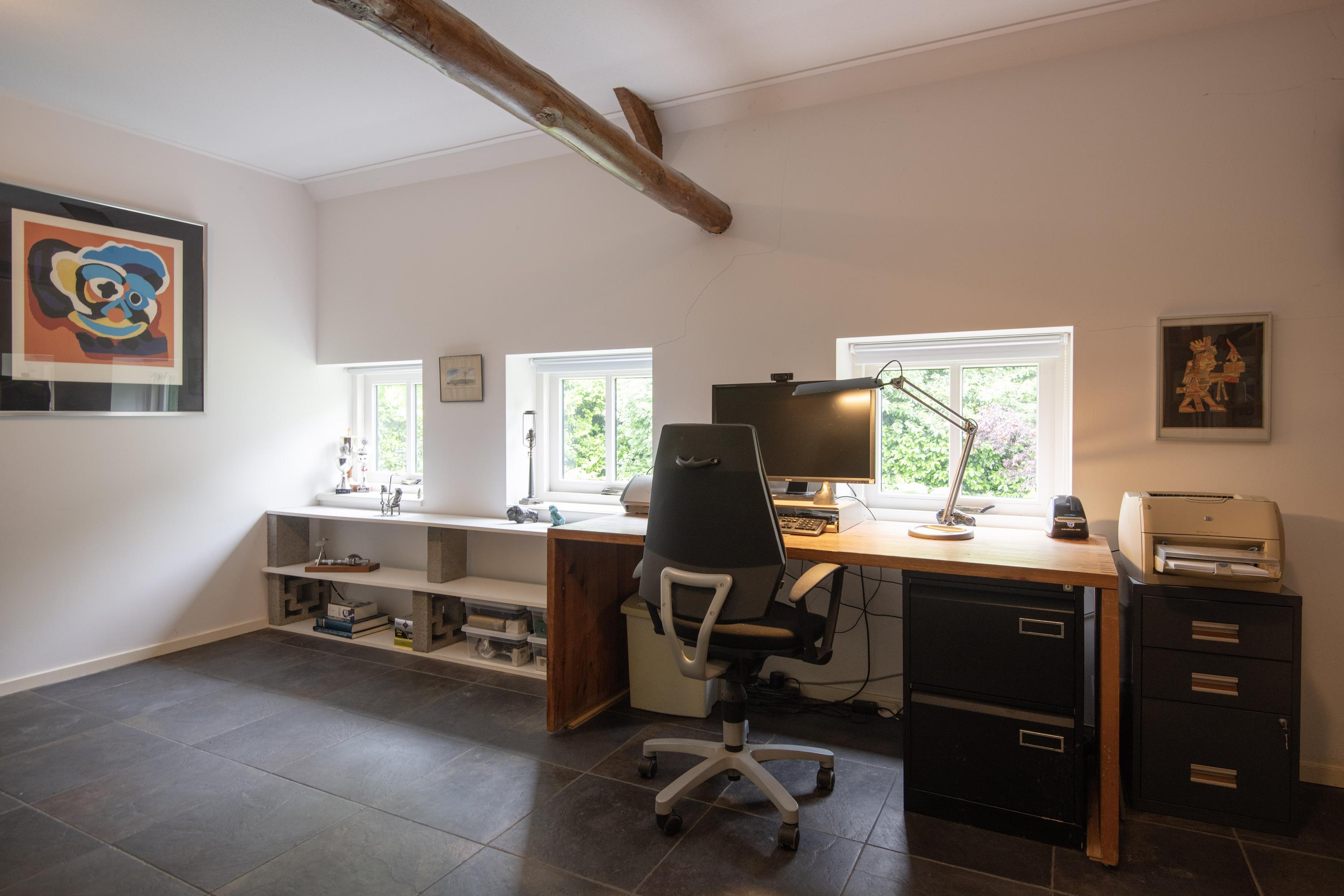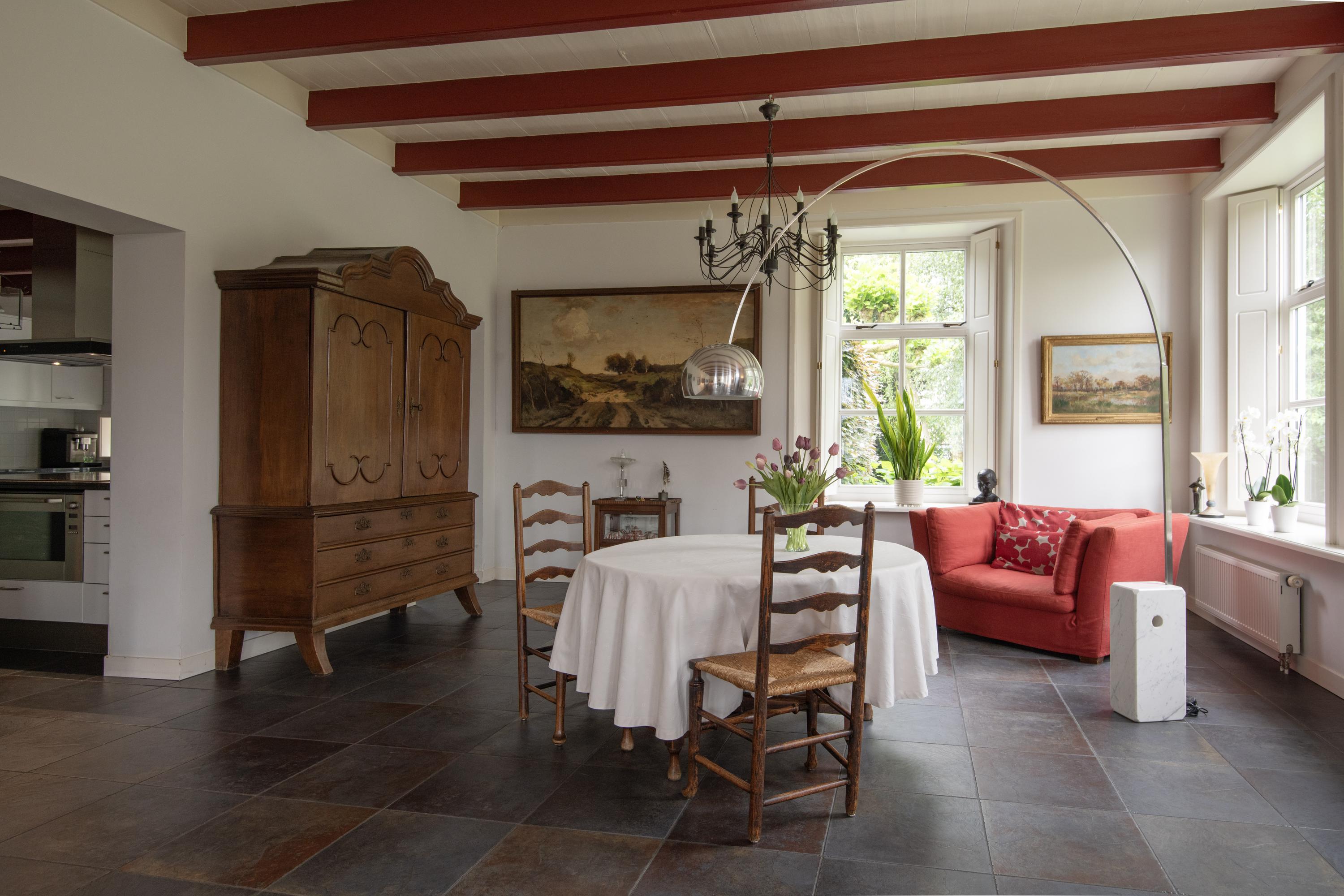 Woonboerderij Haaften offers a harmonious fusion of tranquility, space and sustainability. This architecturally converted T-farmhouse with A++ label features a living area of 437 m² across six bedrooms and three bathrooms, all set within a 1,930 m² plot. The property’s spatial flexibility supports both multi-generational living and the integration of workspace, underscored by its dual living rooms, library and multiple work areas.