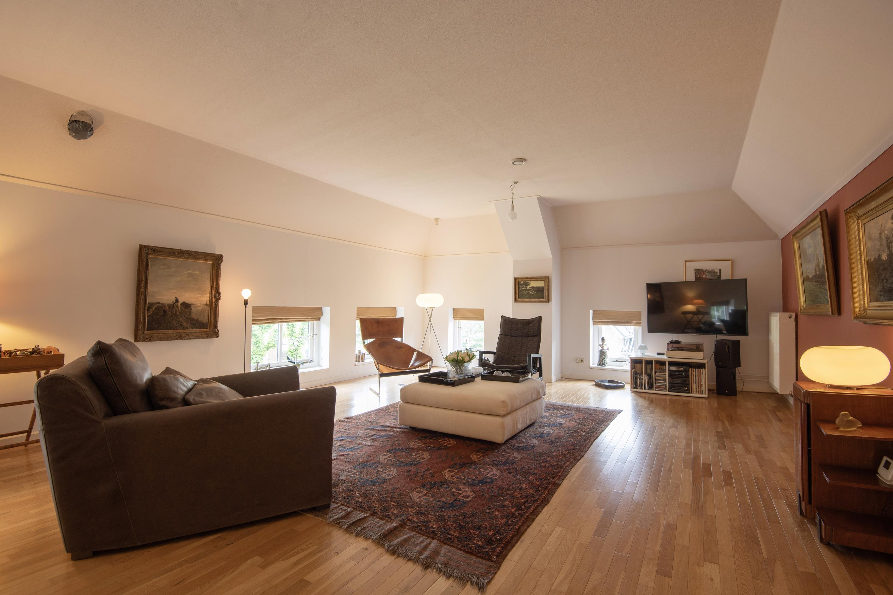 The skylights provide a sea of light. Adjacent to the library is a second living room, studio, TV room; just a few functions you could assign to that 60m2. On the other side of the library is another bedroom with adjacent 3rd bathroom. This is equipped with a large shower, sink and the