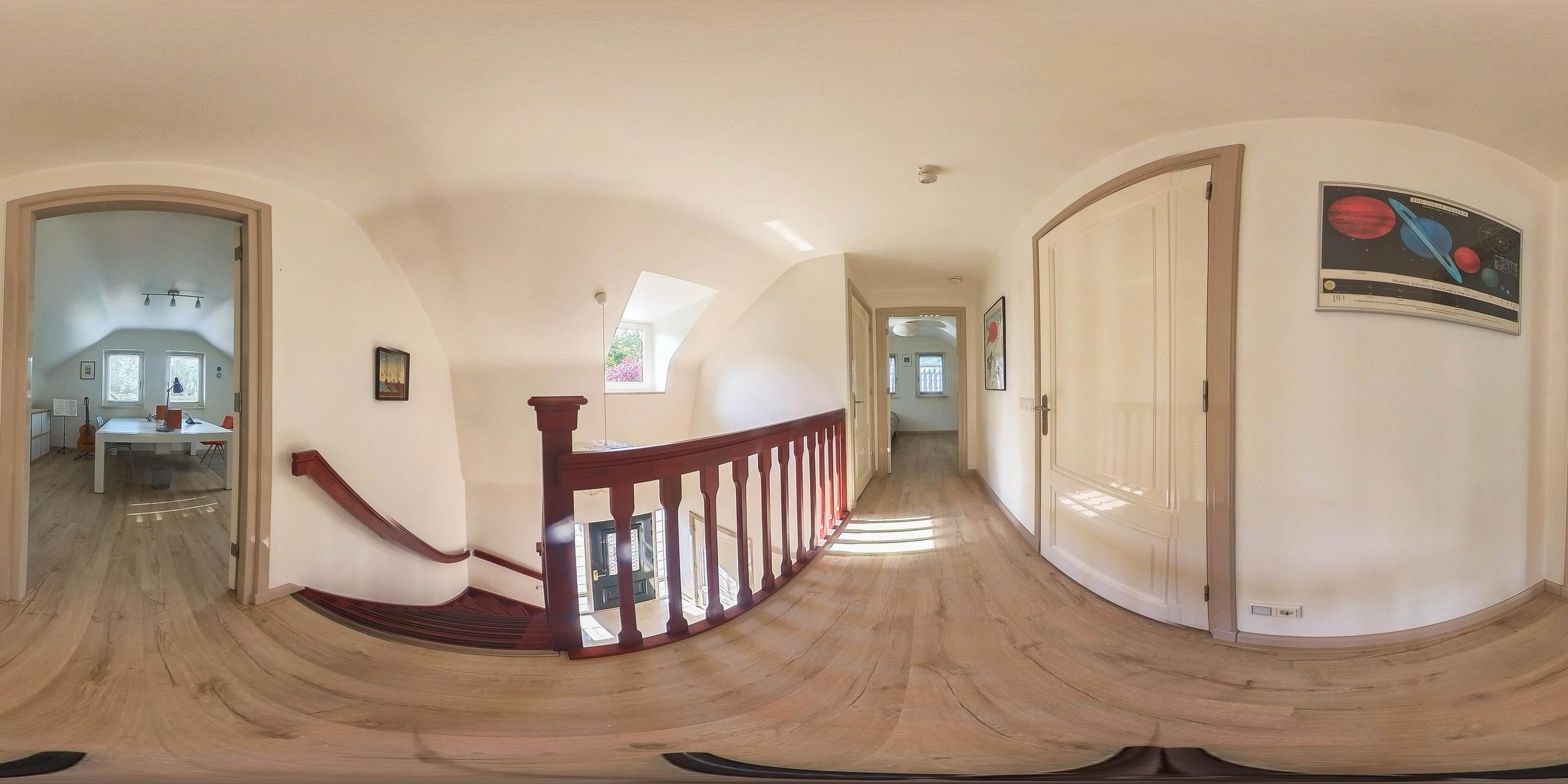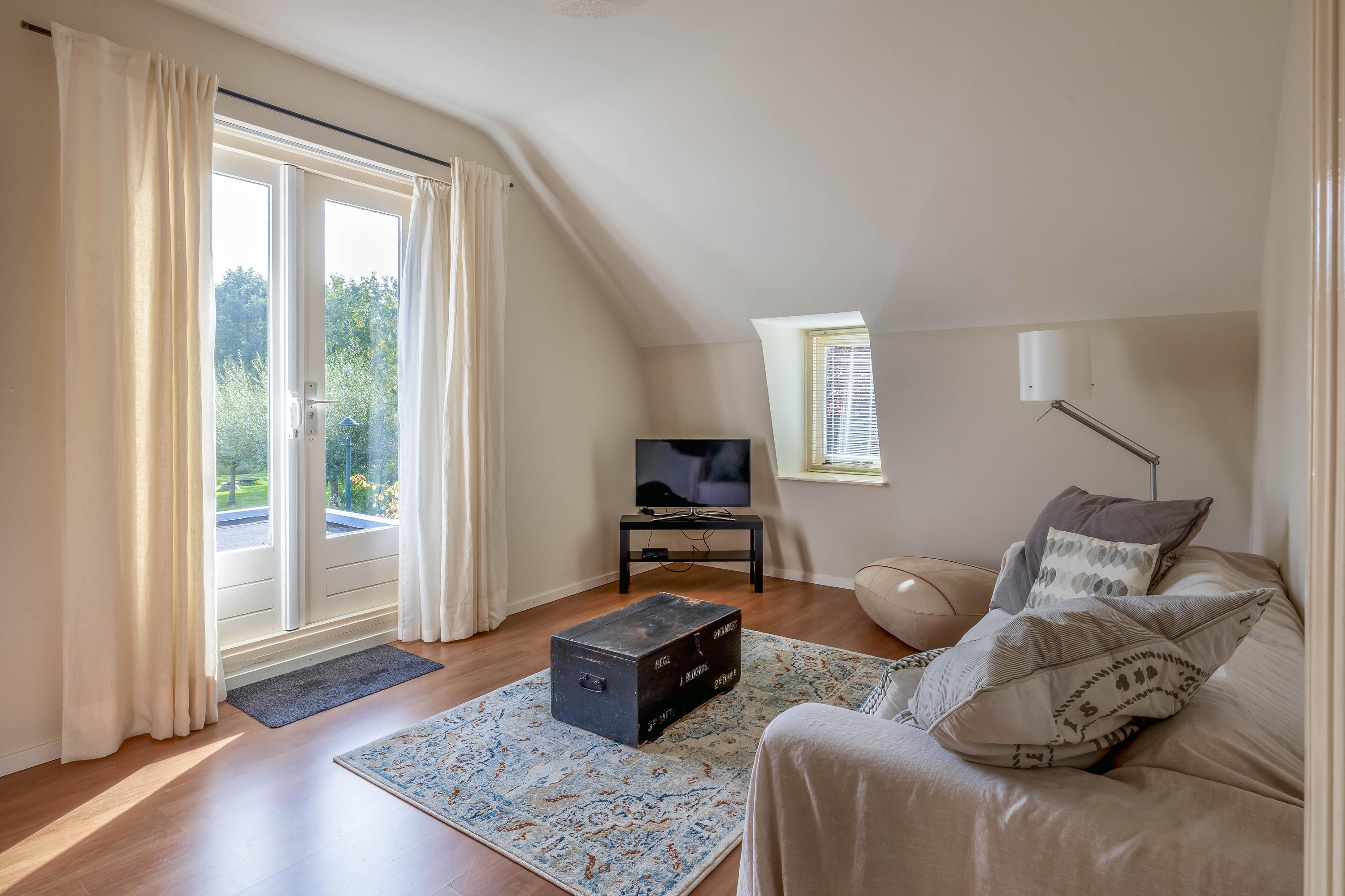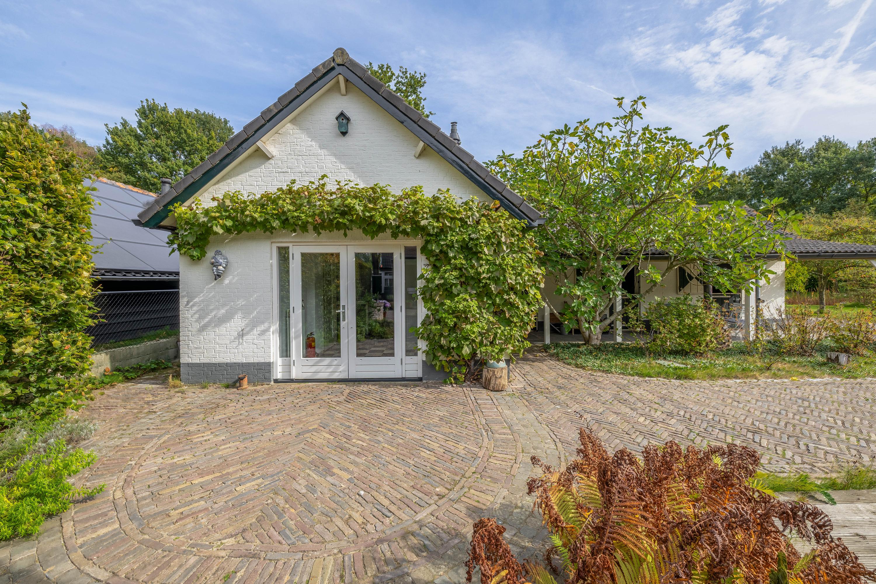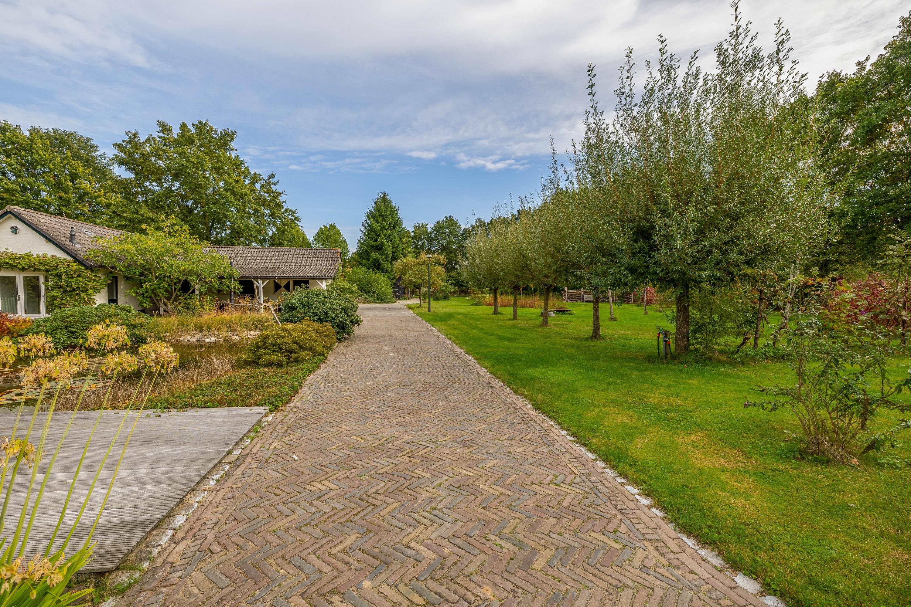 A very spacious, beautifully landscaped garden with a covered terrace at the rear and a charming terrace at the front; perfect for enjoying both the sun and the shade. The park-like grounds are further decorated with baked clinker paths, an elegant beech hedge and an impressive, sloping lawn. The large water feature with a beautiful decking terrace and a natural wadi further down the plot create a special harmony between water, nature and architecture. The garden also offers a variety of fruit and nut trees and raspberry bushes, which attract a rich variety of wildlife and birds. The “writer's cottage” is located at the front of the garden. This unique cottage is constructed of wood with a tiled roof and vinyl flooring. A decking terrace has been laid around the cottage. This charming cottage is suitable for various purposes: a playhouse for children, a workspace or a hobby room. The practical layout, with its own back entrance on both sides of the house, guarantees optimal accessibility and privacy.