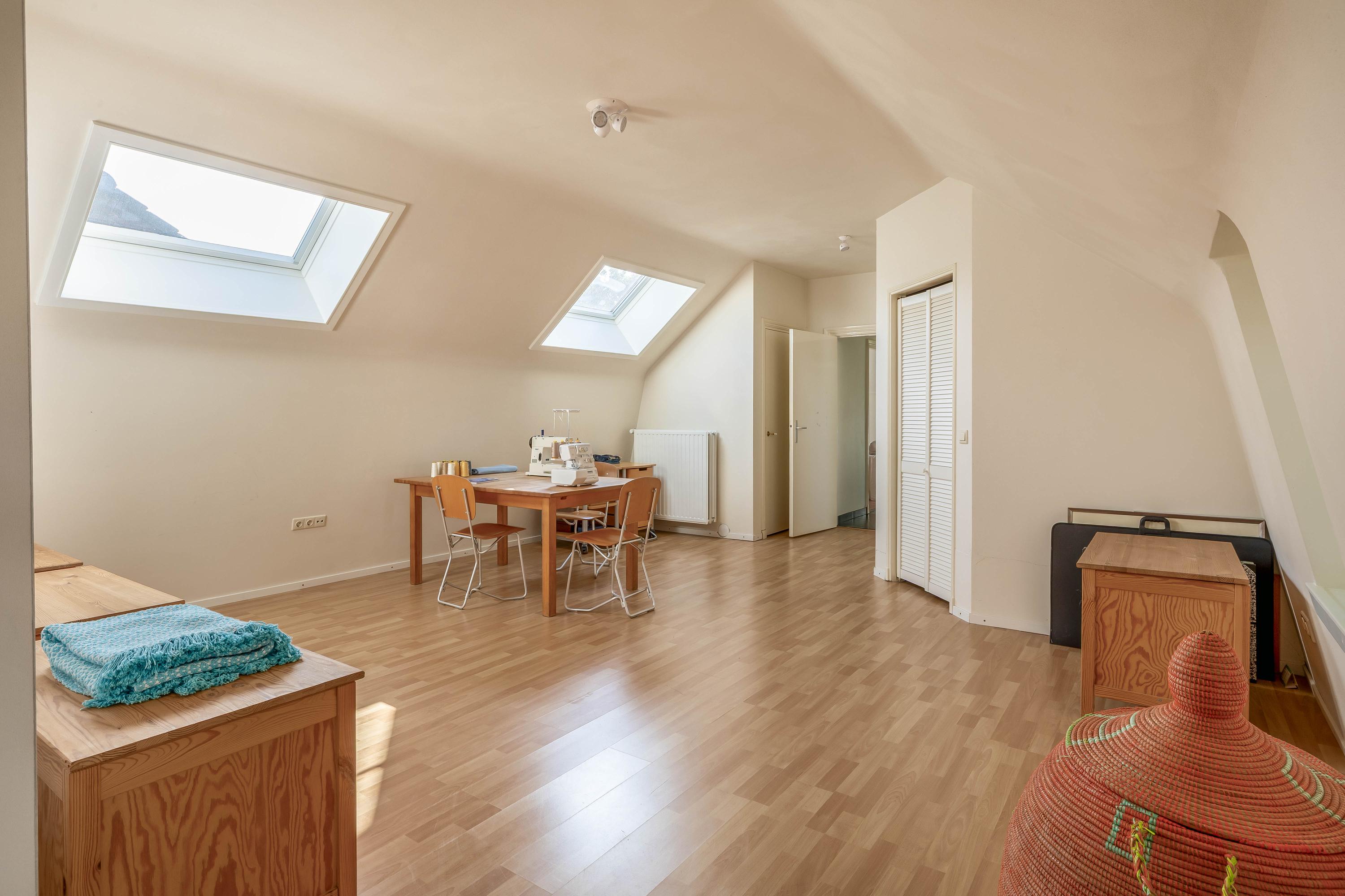 From the landing, you have access to two comfortable bedrooms, which are finished with laminate flooring and stucco walls and ceilings. A dormer window and two sets of windows provide natural light and ventilation. The second bathroom is also fully tiled and equipped with a walk-in shower, a washbasin and a floating toilet. A skylight provides sufficient natural light and fresh air. The practical central heating room/storage room has the central heating boiler (Nefit, Topline).