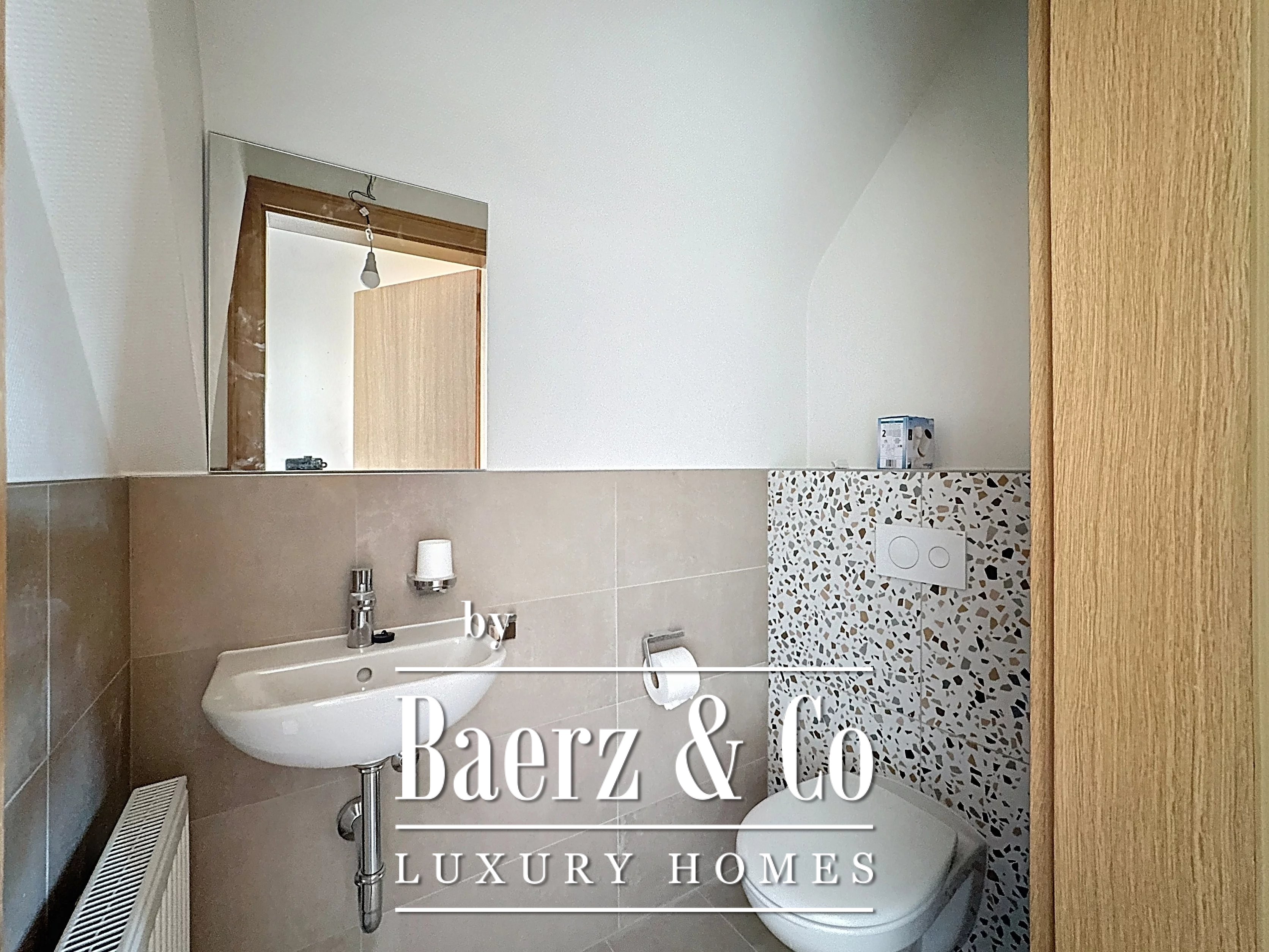 Practical amenities include a 22.23 m² garage, multiple cellars, and a well-conceived basement. Views over the village lend a calming perspective. The house holds an energy class B rating, reflecting investment in comfort and efficiency, and stands as a refined rental choice for those seeking privacy and considered living in Holler Luxembourg.