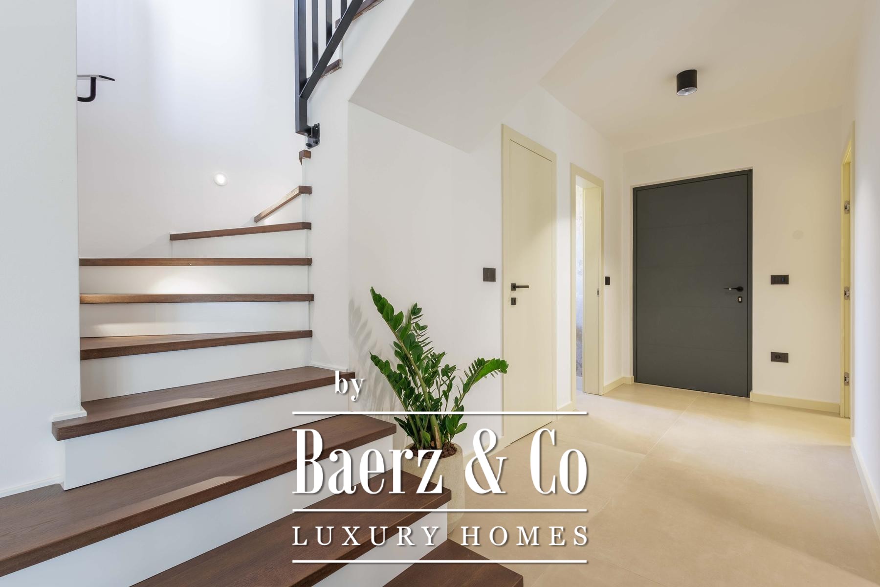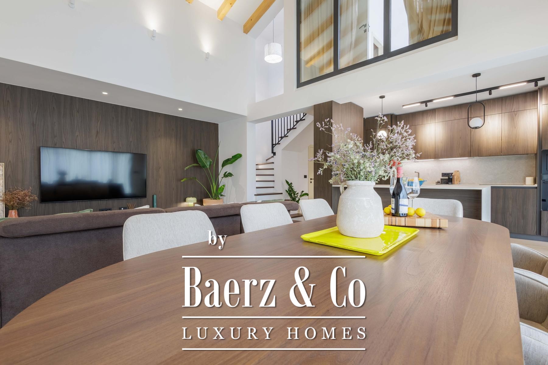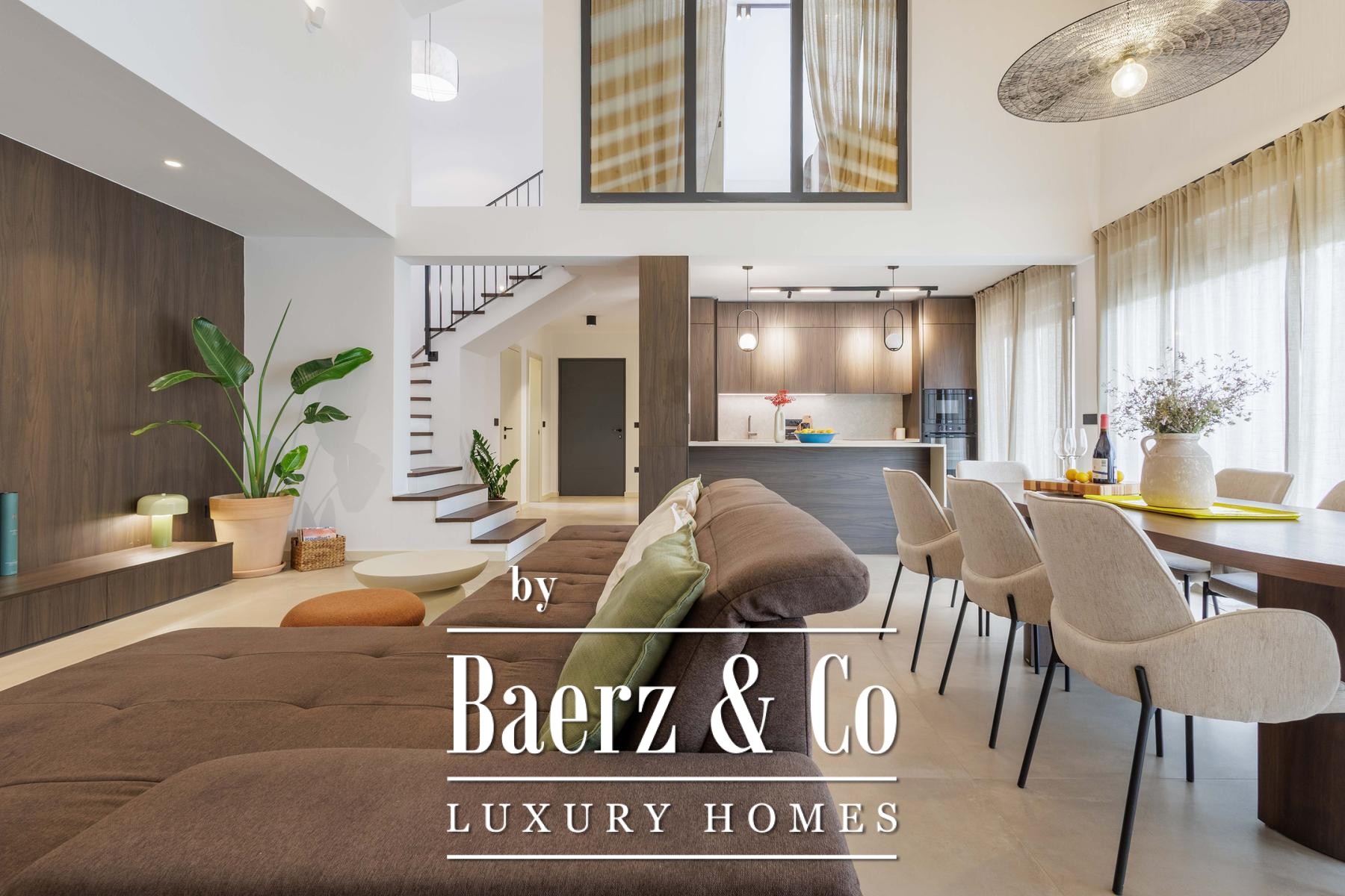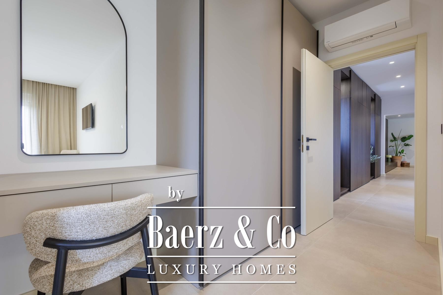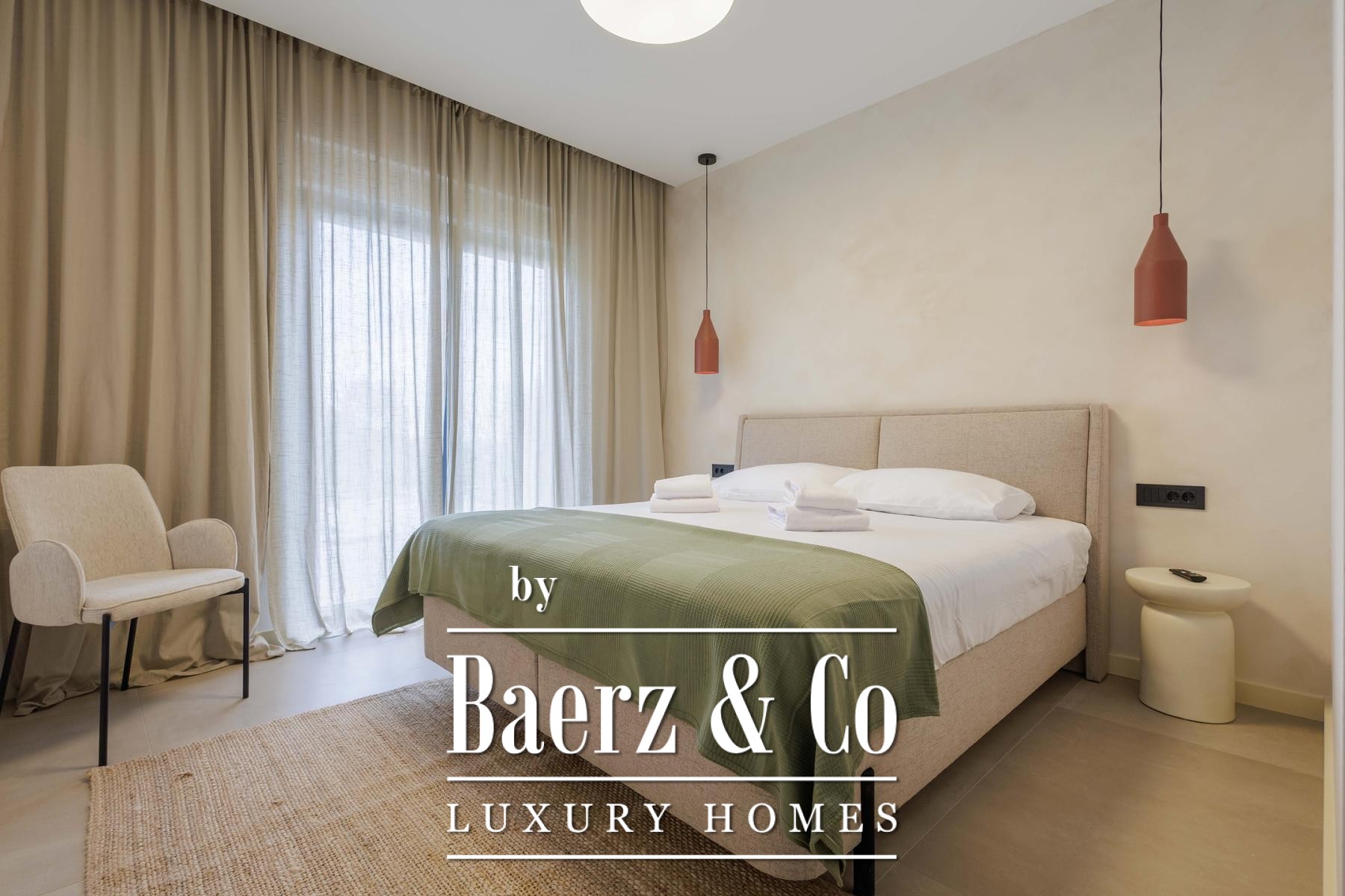 This high-standard, low-energy villa is equipped with underfloor heating powered by a heat pump and seamless air conditioning throughout. Practical design extends to the exterior, where underfloor heating continues into the summer kitchen. The layout includes two separate guest toilets for added convenience. The 1,000 m² plot offers cultivated privacy, with a lush lawn, six olive trees, and an automated irrigation system easing maintenance.