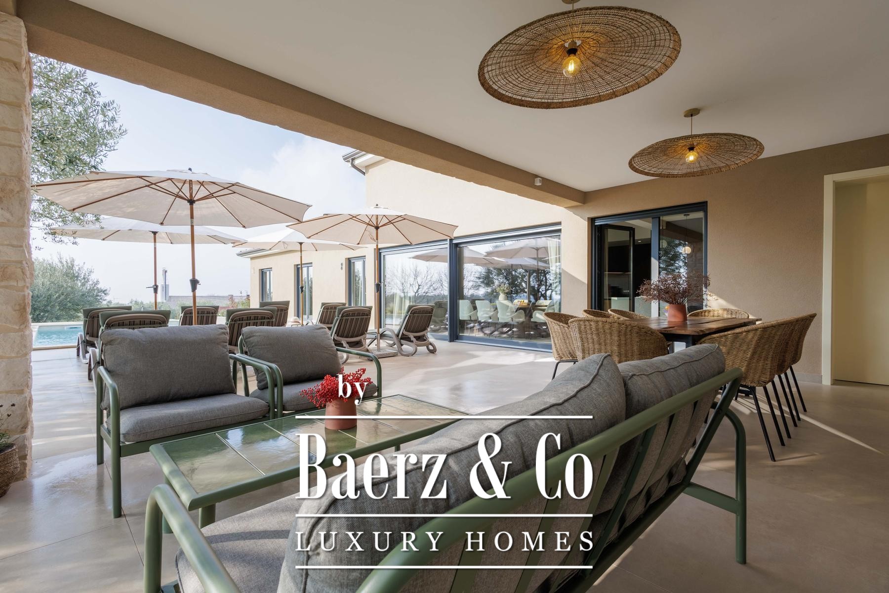 Outdoor living is central to the experience, featuring a fully equipped summer kitchen, swimming pool, sunbathing deck, fire pit, and prepared space for a jacuzzi. The property presents a tranquil base for year-round living or a prime investment in Istria’s luxury tourism market. Villa Kaštelir-Labinci stands as a rare synthesis of comfort, authenticity, and refined outlook.