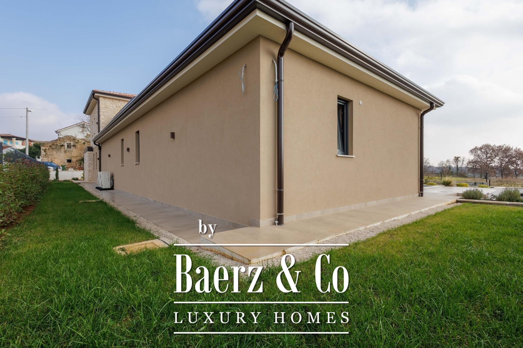 Villa Kaštelir-Labinci anchors contemporary design firmly within authentic Istrian tradition. This villa in Kaštelir-Labinci offers an understated fusion of regional character and modern ease, set in one of western Istria’s most sought-after locales. Occupying a generous 221 m² of interior space across two levels, the home comprises four bedrooms, each with an en-suite bathroom. Three are arranged on the ground floor, creating effortless internal flow, while the master bedroom claims the upper level, complete with private bathroom, a walk-in wardrobe, and wide terrace revealing panoramic views of the sea and green landscape.
