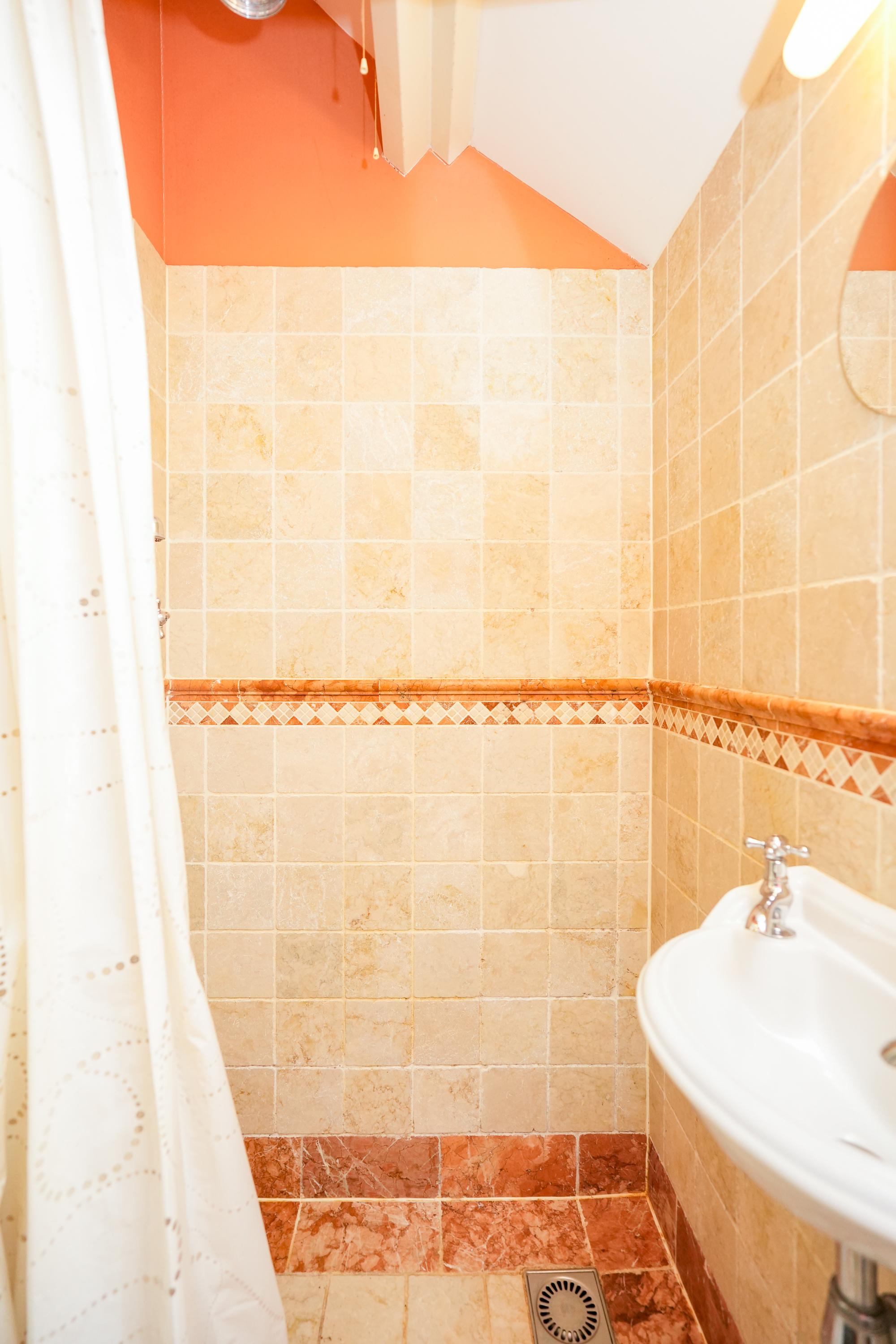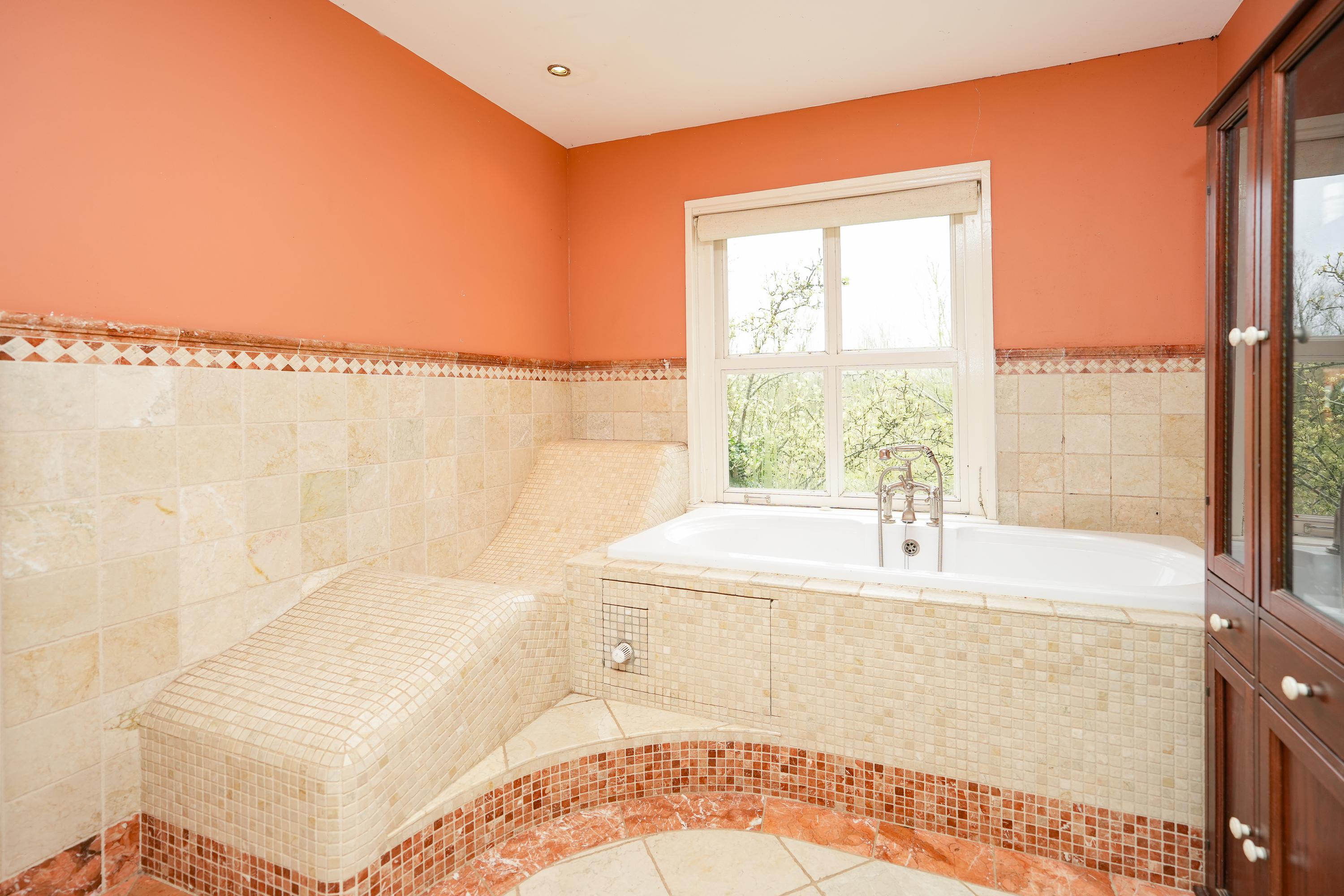 On the ground floor, two refined living rooms open to light and garden through original sliding doors, accentuated by natural stone flooring and underfloor heating. The kitchen, fitted with a classic AGA, integrates seamlessly with outdoor terraces, while the adjacent utility spaces and bedroom suite add versatility—ideal for guests or home office needs. Upstairs, five generous bedrooms provide ample room for living or working, supported by a renovated bathroom suite with underfloor heating. Additional spaces include a cellar, outbuildings such as a former stable, and a separate barn in the orchard. The original composition is complemented by technical updates: monument glass, ecohome-controlled floor heating, and updated heating systems, delivering discreet comfort for modern living.