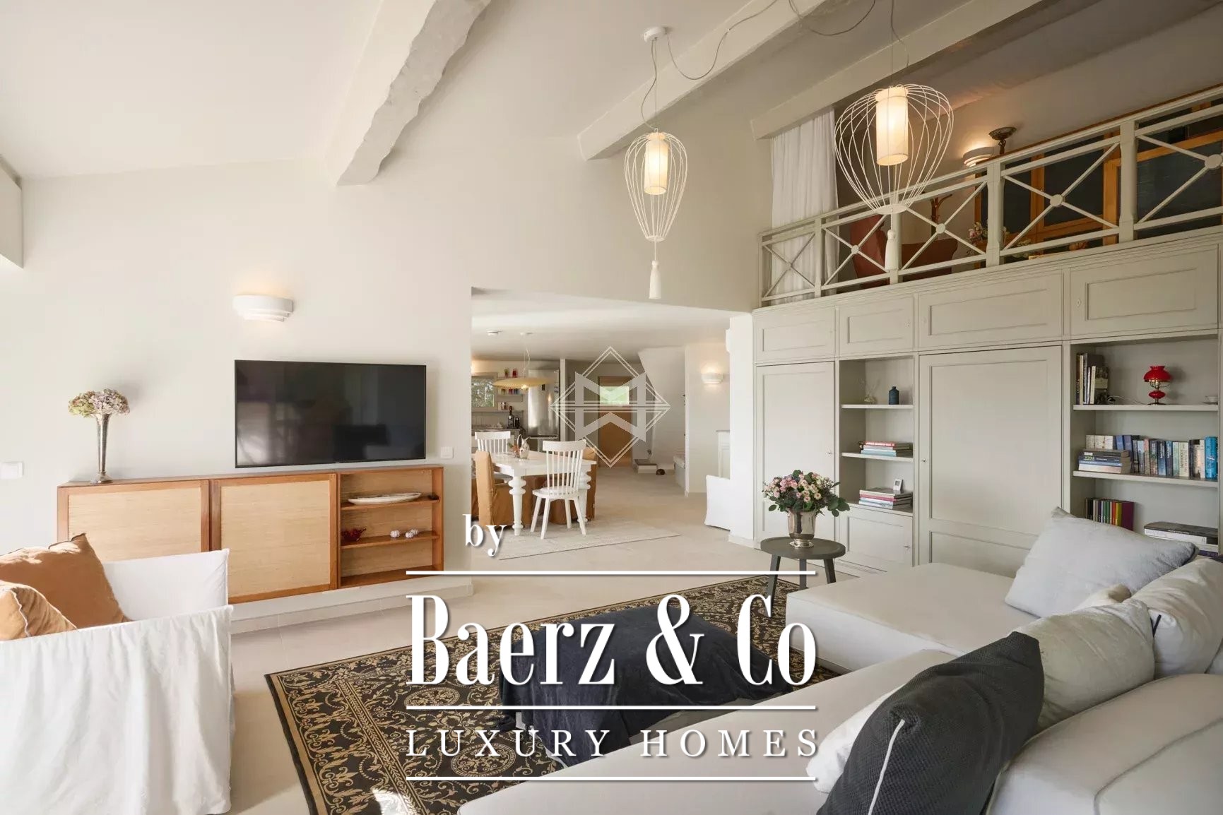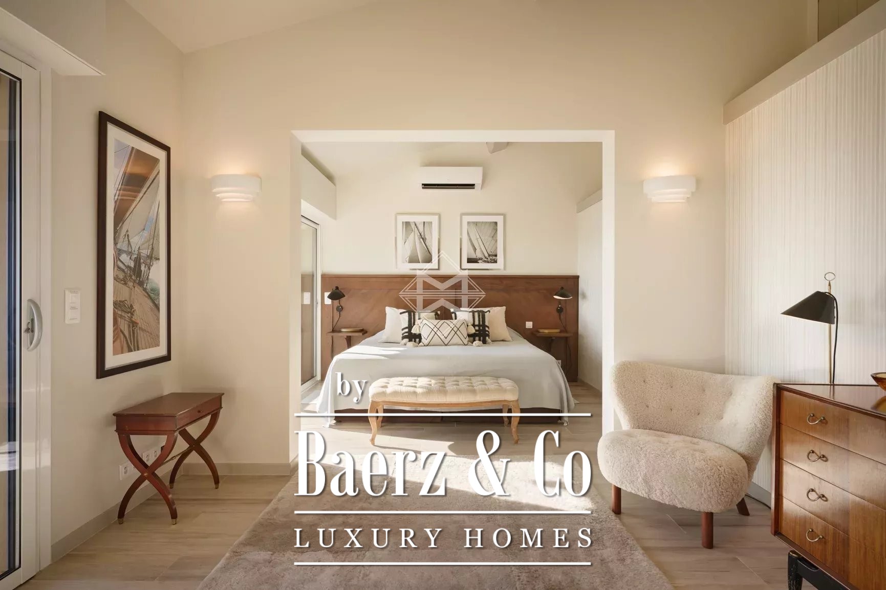 Villa La Croix-Valmer rests in one of the region's most coveted enclaves, presenting panoramic views across the sea, hills, vineyards, and the Golden Islands. This fully renovated property, measuring approximately 280 m², is crafted with high-end materials and an attention to light and flow. The southwest orientation ensures generous natural light, infusing each space with a calm rhythm and warmth.