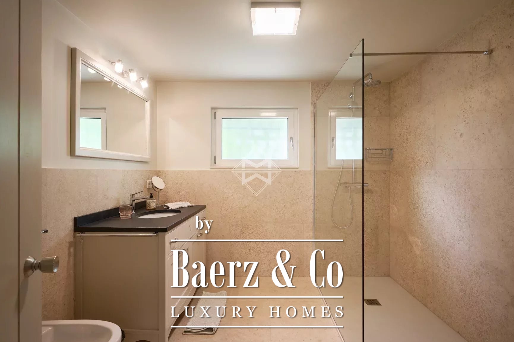 Outside, the 1,700 m² plot is enveloped by Mediterranean vegetation and designed for privacy. An 11 by 4 metre pool sits at the centre, complemented by wooden terraces, both sunlit and shaded, encouraging outdoor living in seclusion. Security and convenience are in every detail, from the closed garage, carport, and surveillance system, to reversible air conditioning, double glazing, fiber optic internet, and an automated pool and irrigation system.