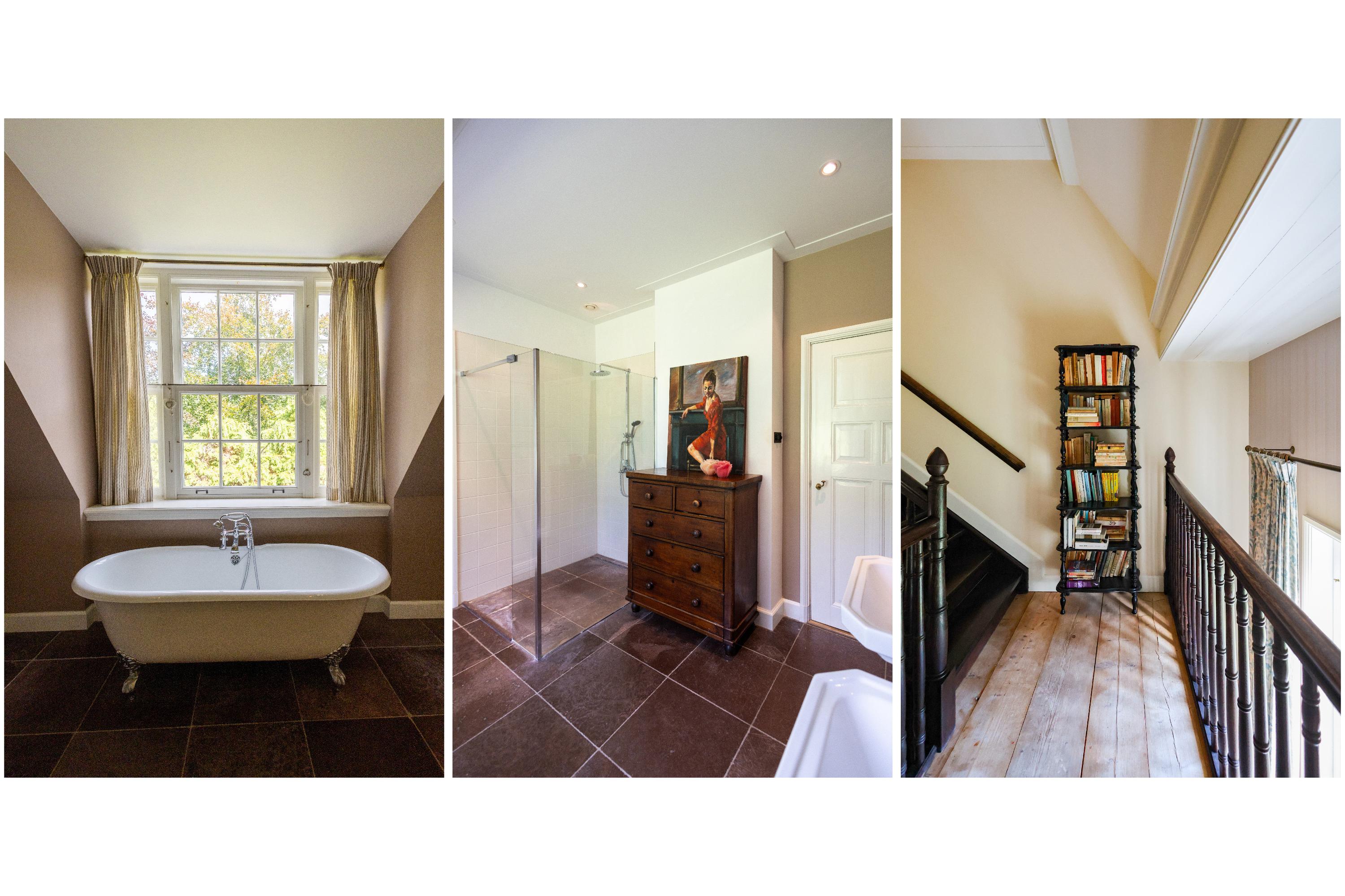 Continuing up the staircase, the second floor reveals a charming attic room, also with a private bathroom.