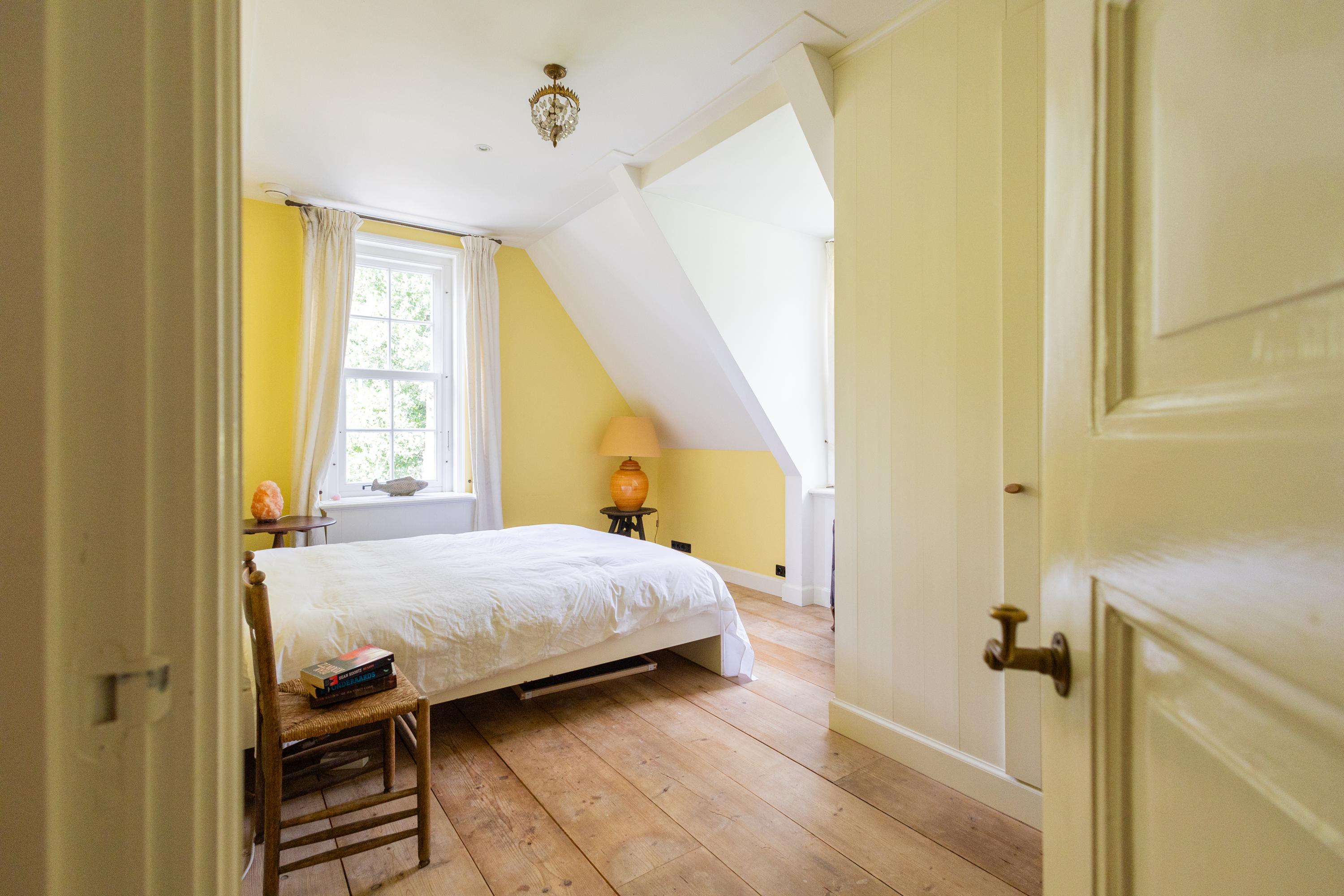 What truly sets this home apart is the soul with which it was built. Designed in 2012 by architect Van Asbeck, the villa owes its unique character to the carefully sourced, reclaimed materials. Parquet floors that once graced historic buildings, centuries-old children’s play tiles incorporated into the skirting and kitchen, doors with a story, roof tiles from a former Utrecht barracks, and even old cheese boards that have found a new purpose. In the kitchen stands a cabinet from an Amsterdam canal house — fitting seamlessly into the home’s atmosphere. Every detail breathes history and authenticity, together giving the house a rare sense of spirit and depth.