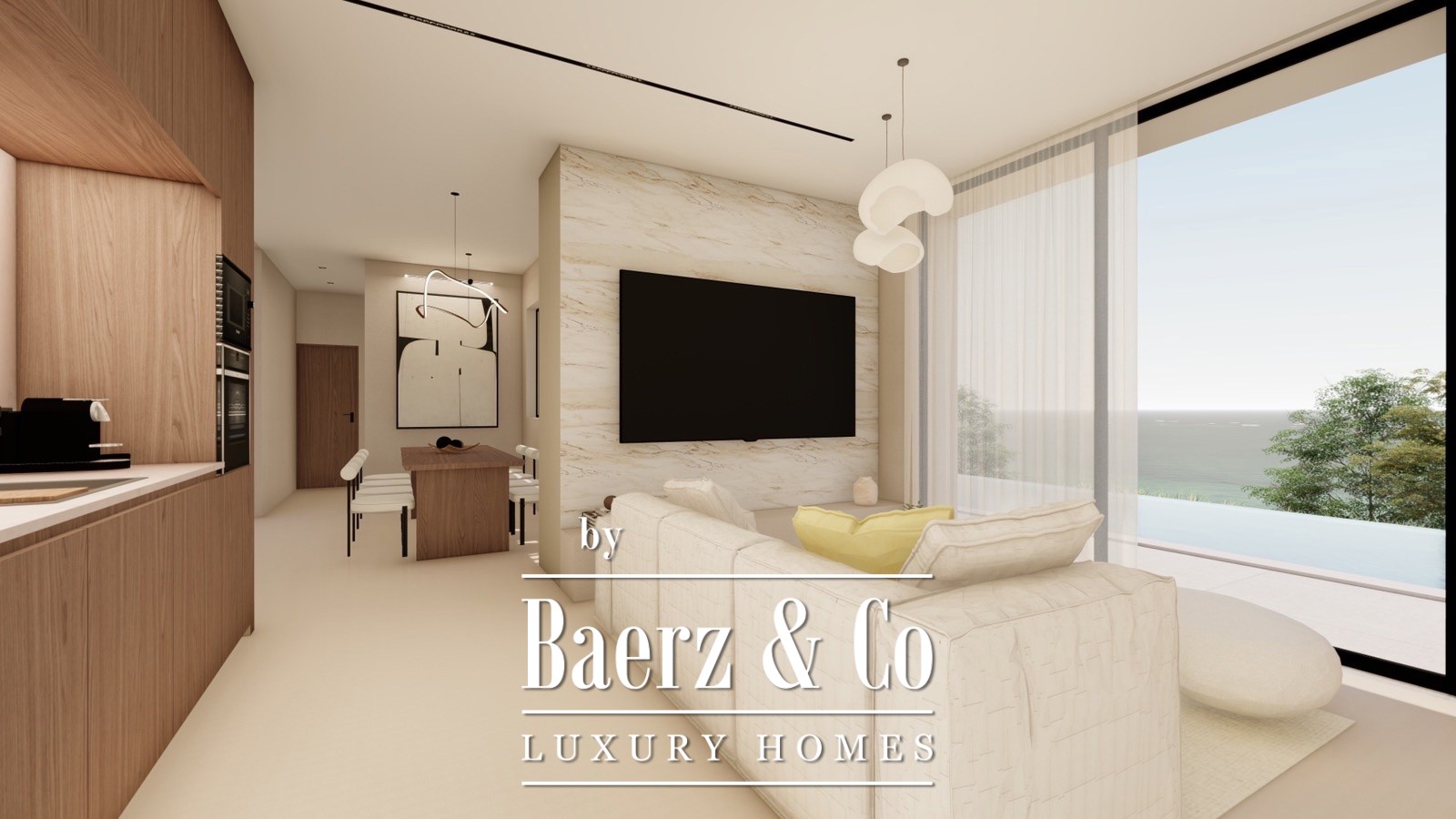 Built with reinforced concrete and featuring advanced insulation and an underground ventilation system, the villa ensures long-term durability and energy efficiency. Interior spaces include an open-plan living and dining area, expansive glass openings capturing natural light and panoramic views, and a modern kitchen with high-end appliances, wine cooler, and smart home technology. Four bathrooms complement the residence's thoughtful layout, providing functional elegance.