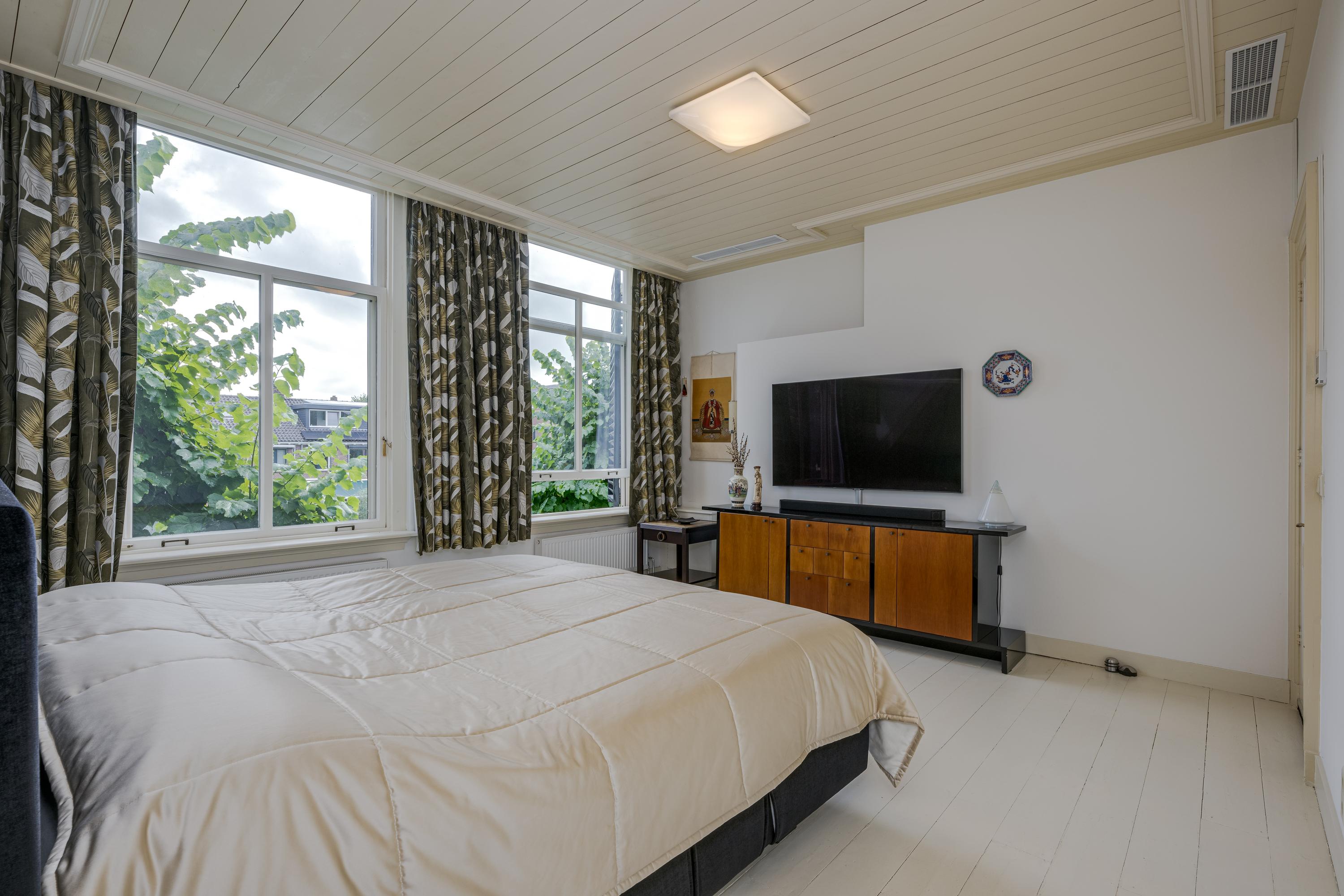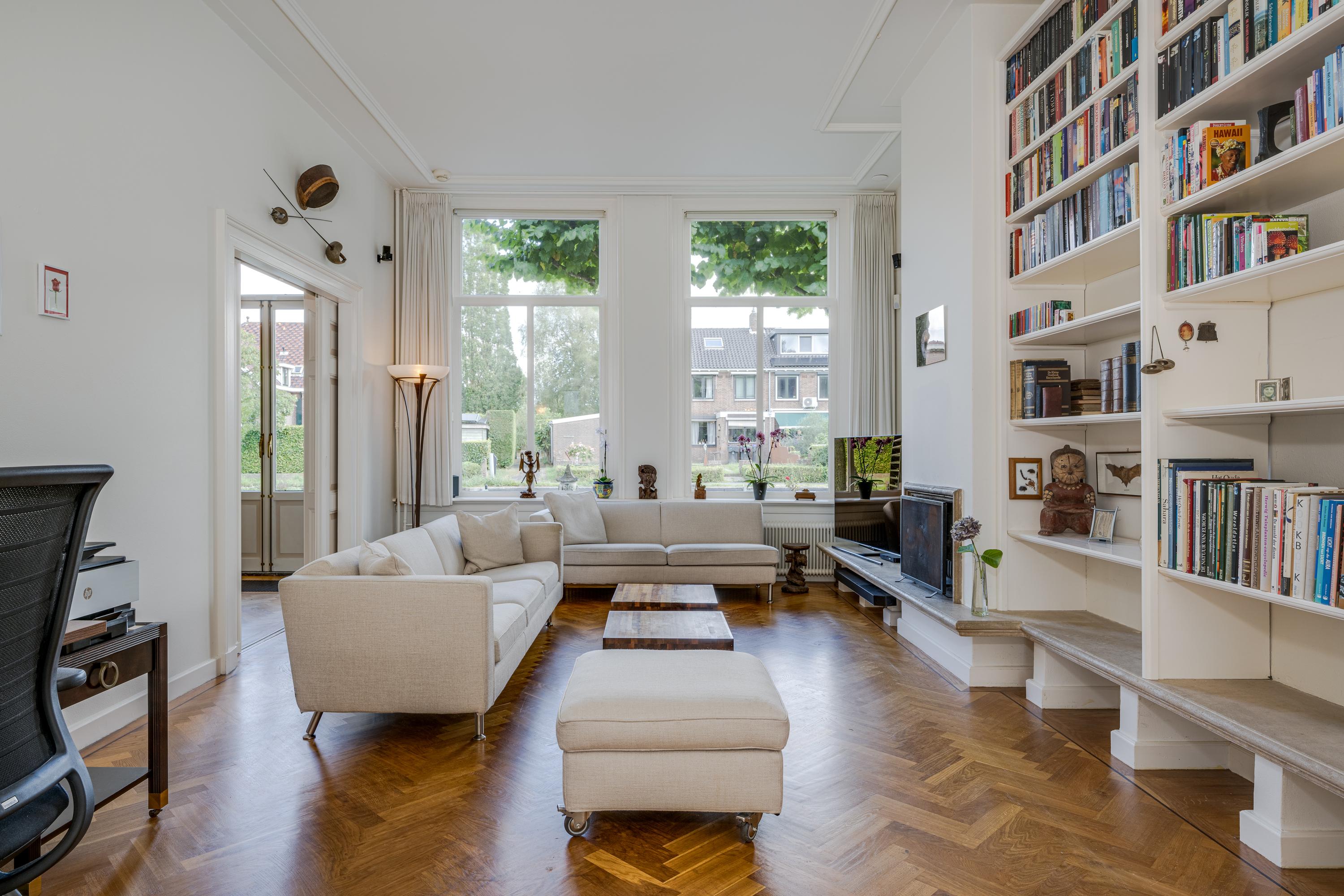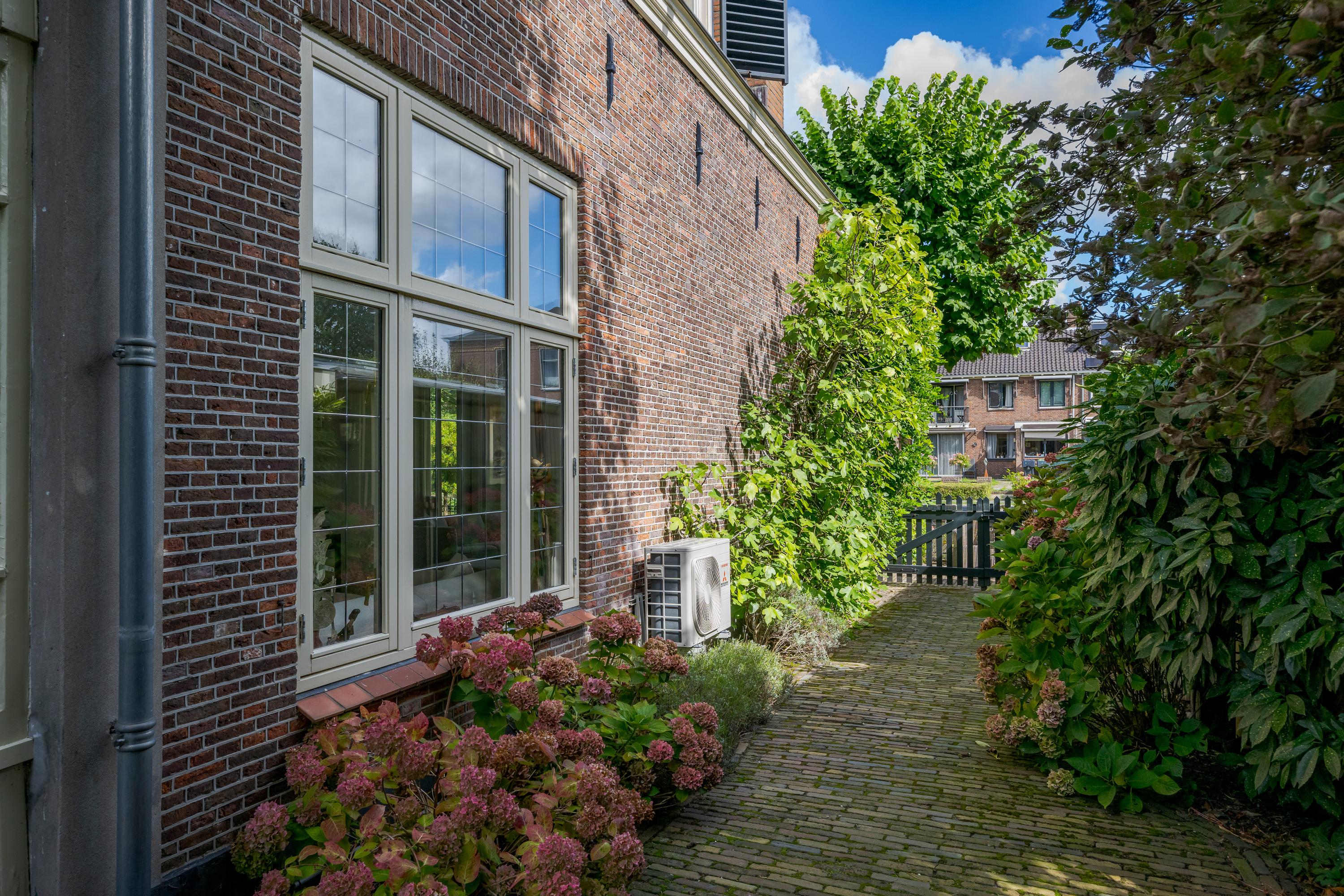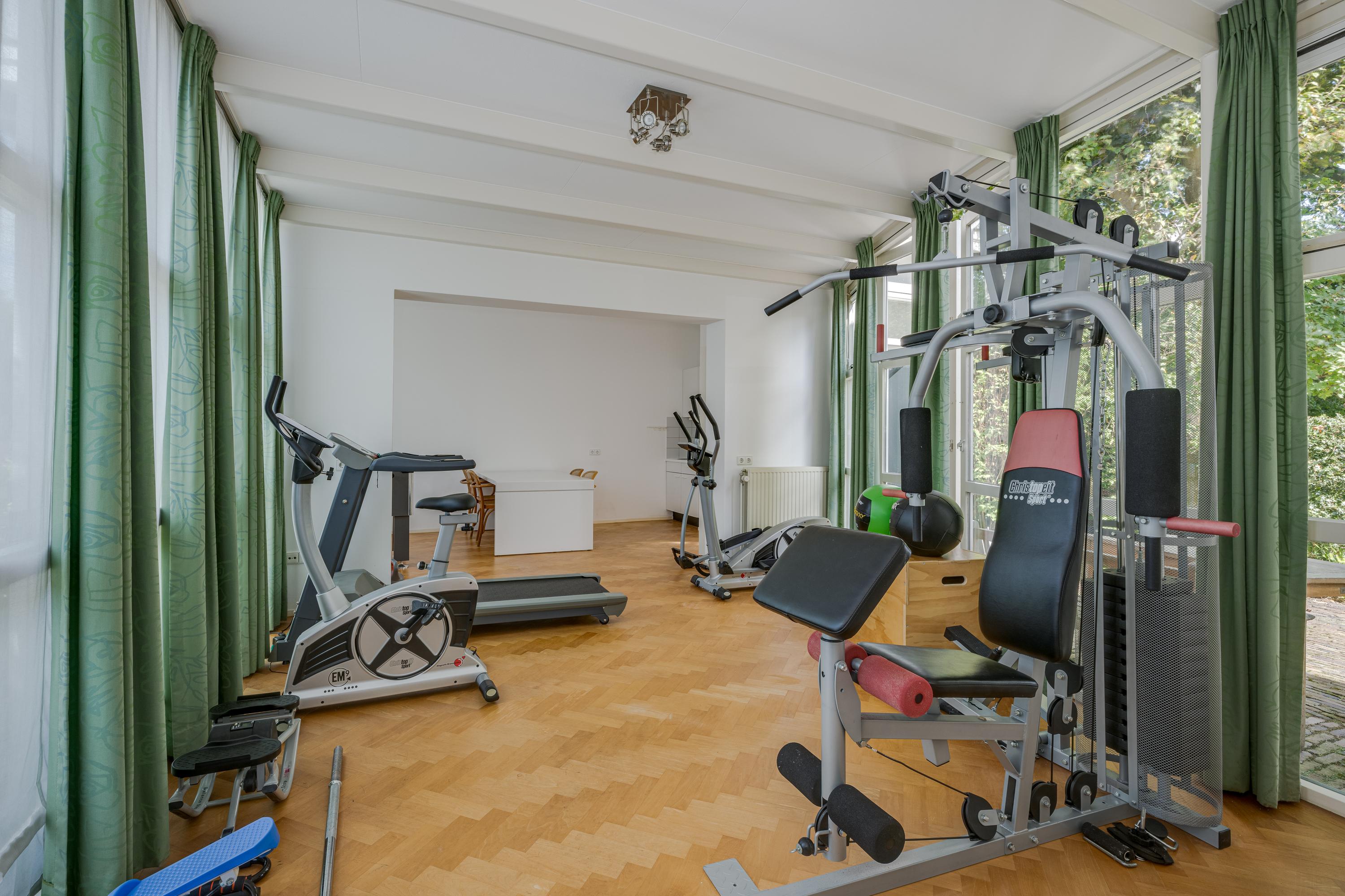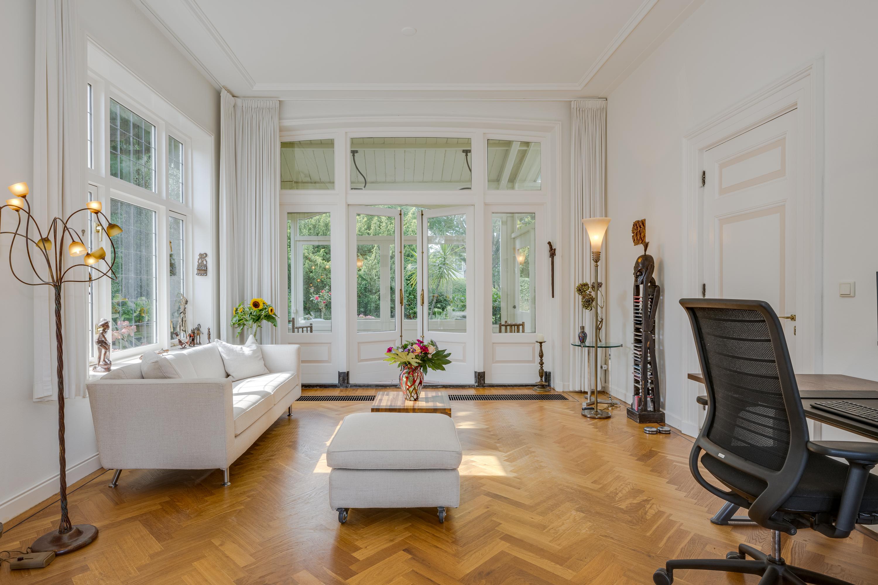 The 1995 gatehouse, designed symmetrically with glass façades and French doors, balances office and fitness space on the ground floor, with a luminous guest room above. Security, modern insulation, sustainable solar technologies, and linked alarm systems ensure discretion and peace of mind. Local amenities, shops, international schools, and the historic heart of Leiden are all within walking or cycling distance, while the A4’s swift connections link city, coast, and airport.