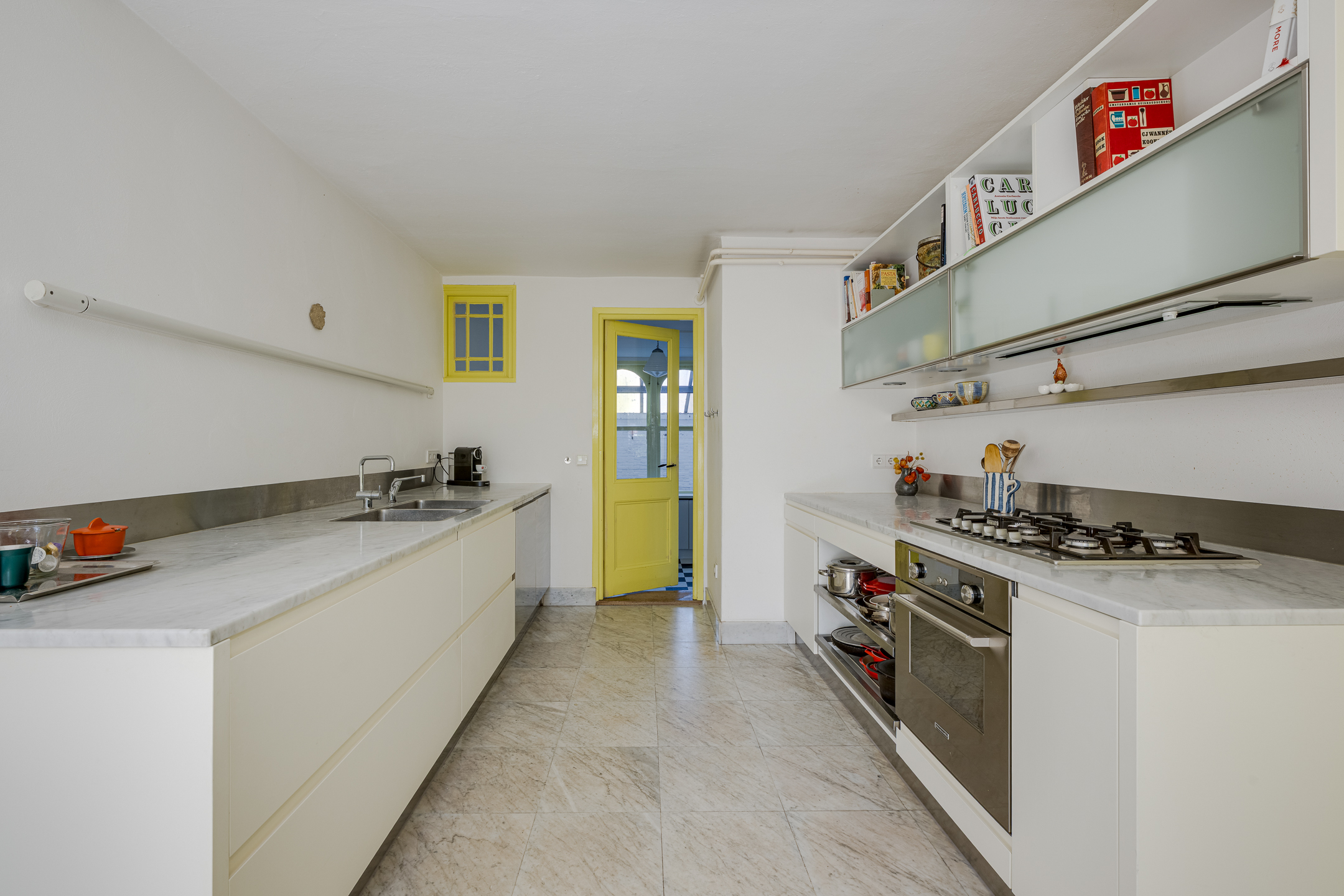 Entrance with double doors to the hall. Central hall, continuing to the rear, with stairs to the 1st floor, toilet and pantries. Modern kitchen with classic look and view of the front garden. At the rear is the utility room with washing machine setup and a covered patio with rear exit.