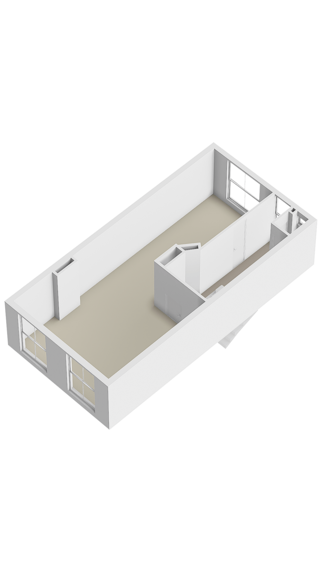 Landing with a bedroom at the front over the entire width with a storage space / walk-in closet in the middle. At the rear are a second bedroom and the second bathroom with shower, bath and toilet.