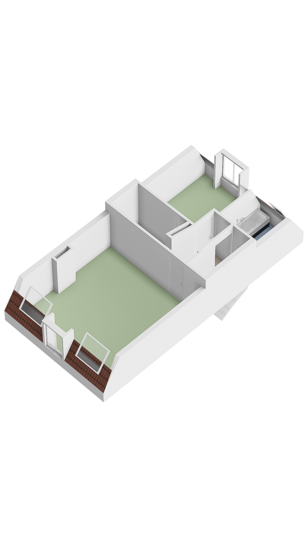 Landing with stairs to the 3rd floor. Bedroom at the front over the entire width with a view of the park and ensuite closet. At the rear are a second bedroom and bathroom with shower, bath and toilet.