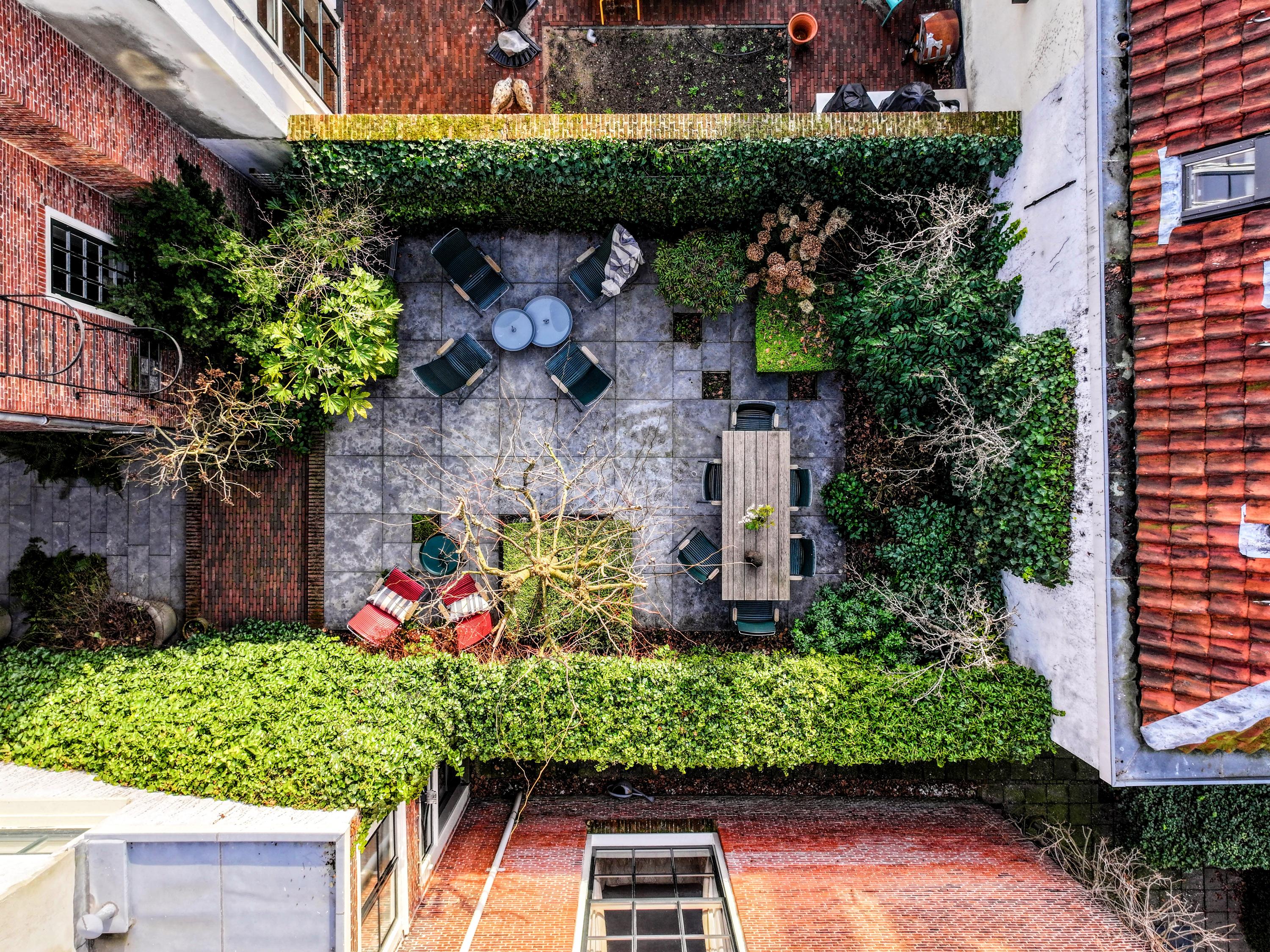 Several seating areas have been created for both sun and shade. The absolute tranquility at the rear of the building is striking: an oasis of peace in the heart of the city,