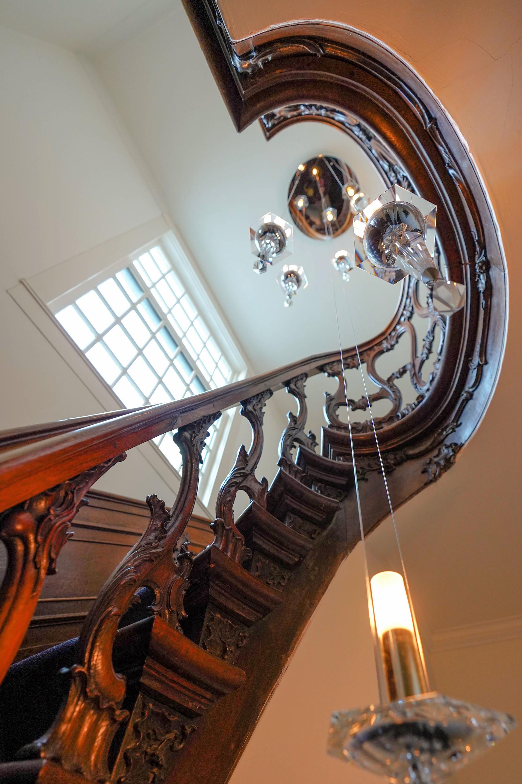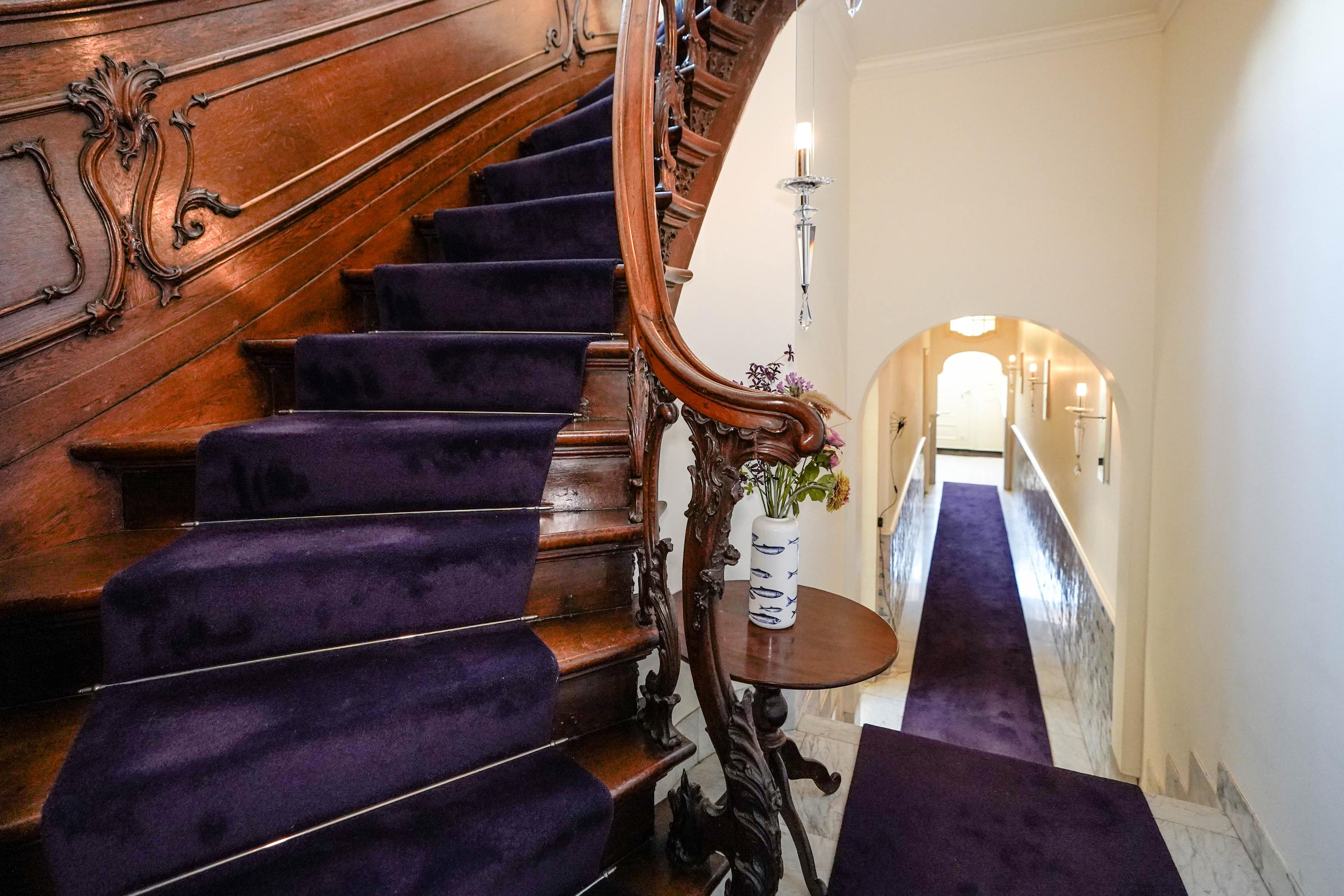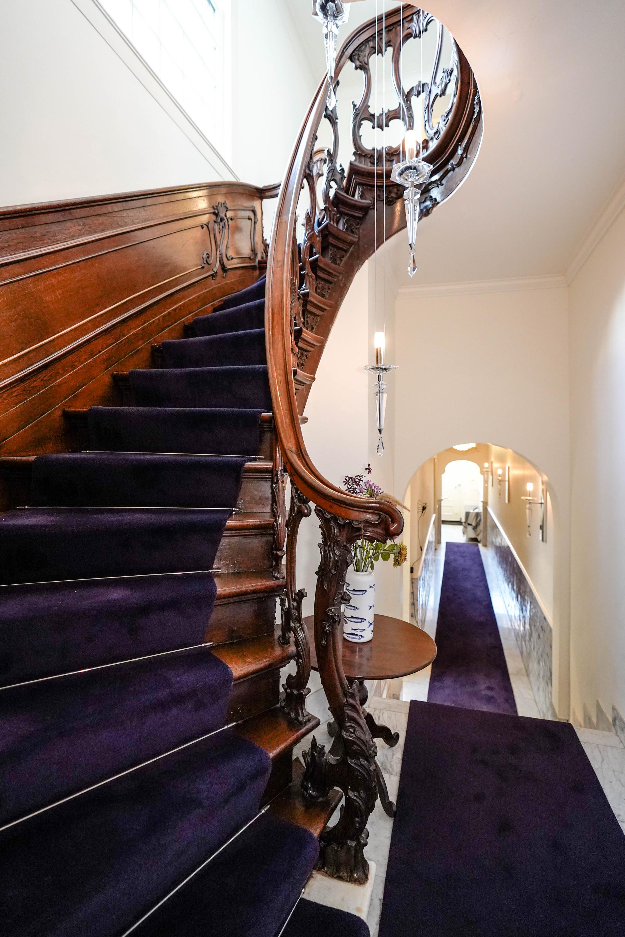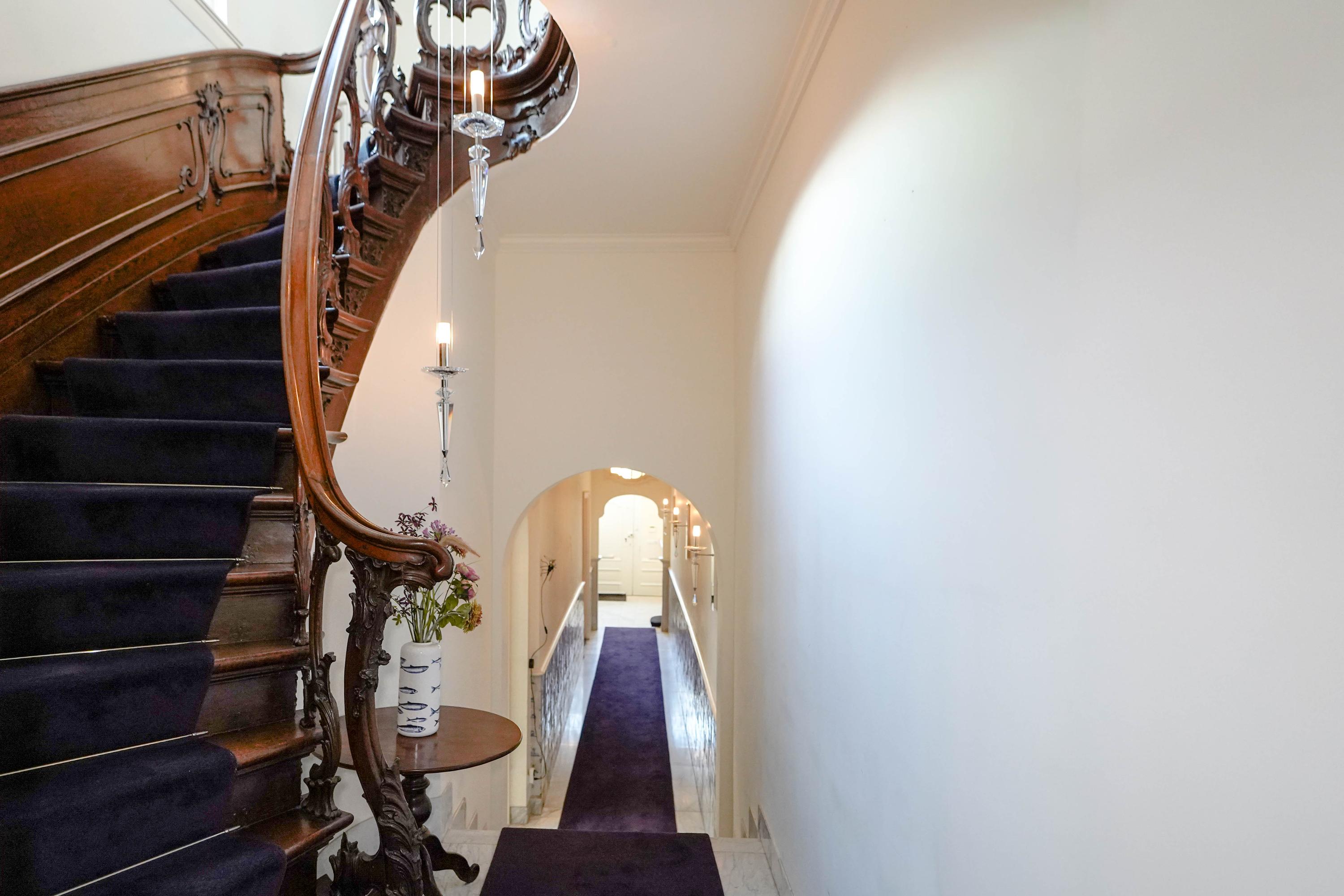 staircase leading to the upper floors. A special historical detail: this building has had several notable residents throughout the