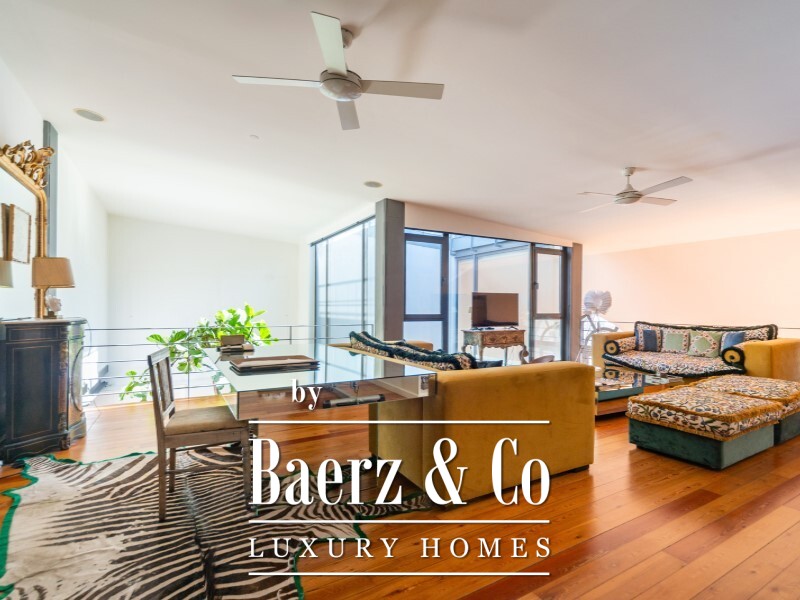 Included are two parking spaces and a storage room. Located in central Lisbon, on a discreet street near Avenida 24 de Julho, life here moves at the tempo of the river, with the creative pulse of ateliers and converted warehouses close by. A setting where tradition endures and urban energy inspires, this duplex loft Lisbon offers a unique vantage on the city’s evolving landscape.