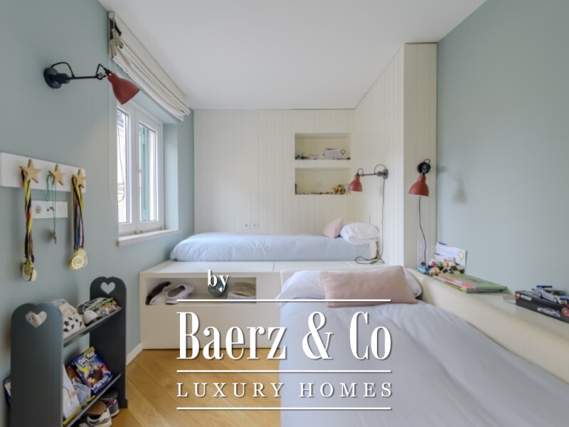 The bedroom floor provides a master suite of 22.1 m² with its own 6.1 m² bathroom, alongside two additional bedrooms of 11.5 m² and 14.9 m², a second bathroom, and a walk-in closet. On the semi-basement level, discover a bright 18 m² TV room or study, two more bedrooms, and another full bathroom. Air conditioning throughout and refined Bosch appliances quietly elevate daily rituals.