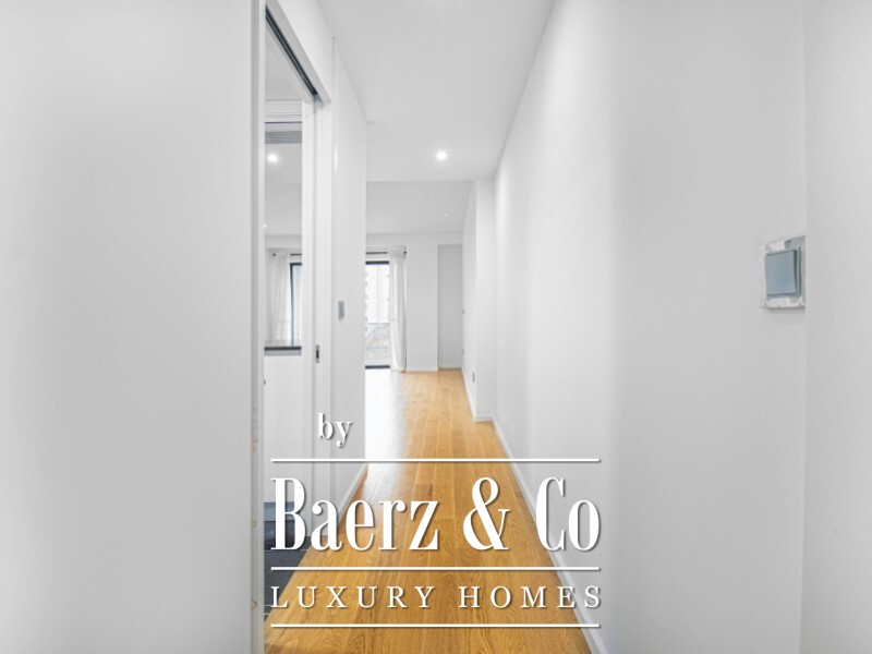 The main living space unfolds into a large reception area, seamlessly connected to a private balcony. Every detail, from the SIEMENS-equipped kitchen—semi-open to the living room—to the solid wood flooring and double-glazed, thermally broken PVC frames, reflects attentive design for daily comfort and lasting value. There are three bedrooms, two with en-suite bathrooms and built-in wardrobes, each illuminated by steady daylight without harsh western sun. The flexible third room can serve as a bedroom or as a home office, with a full bathroom nearby for convenience.