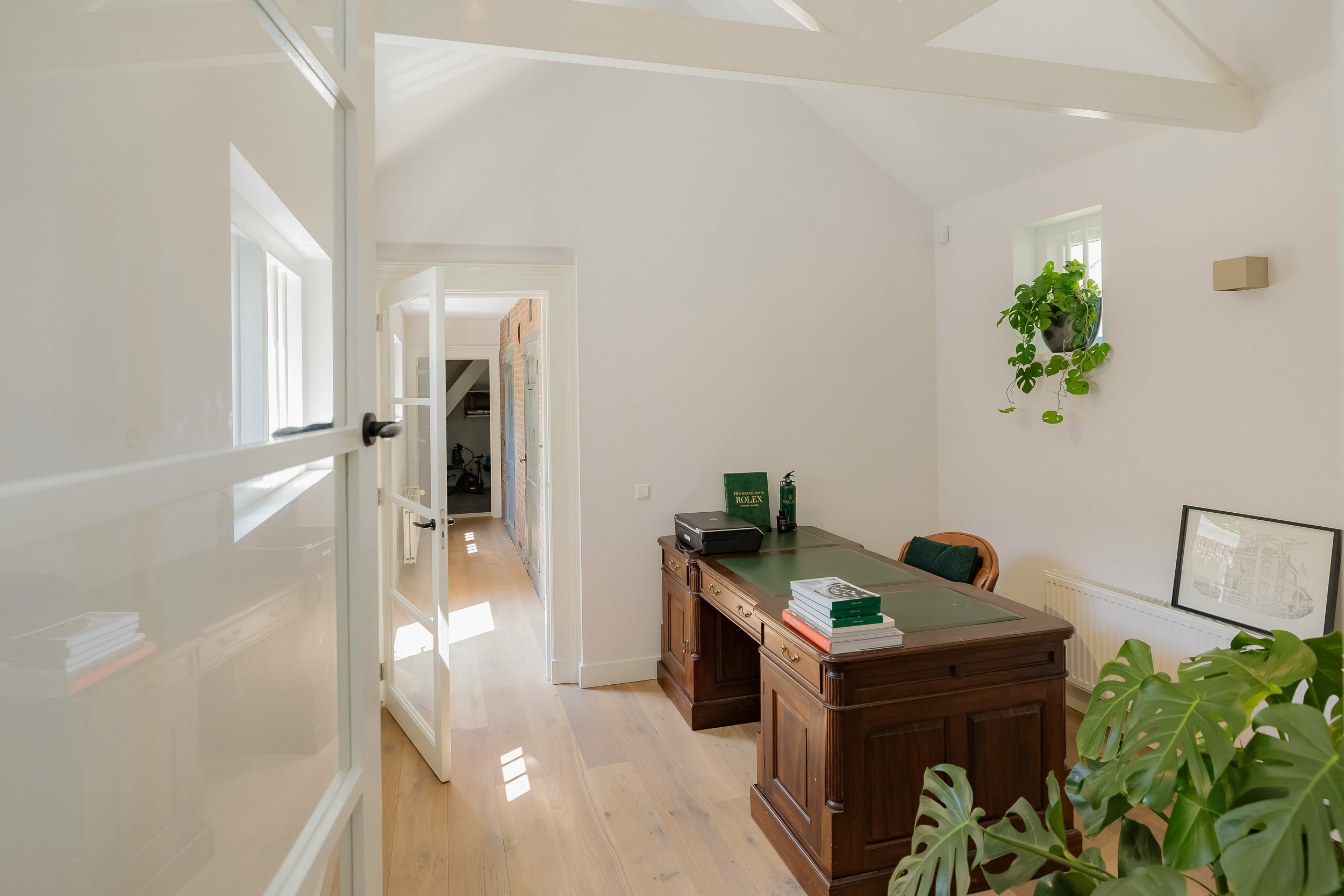 This very stately detached townhouse (municipal monument) with indoor large garage and driveway for 2 cars has been completely renovated while maintaining character. It is located on the most popular part of the Heereweg, in the center of the village and has been very luxuriously renovated in 2018. The monumental beech trees complete the whole picture. The attractive Square with its many terraces, elementary school and stores are within walking distance.