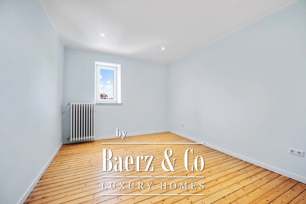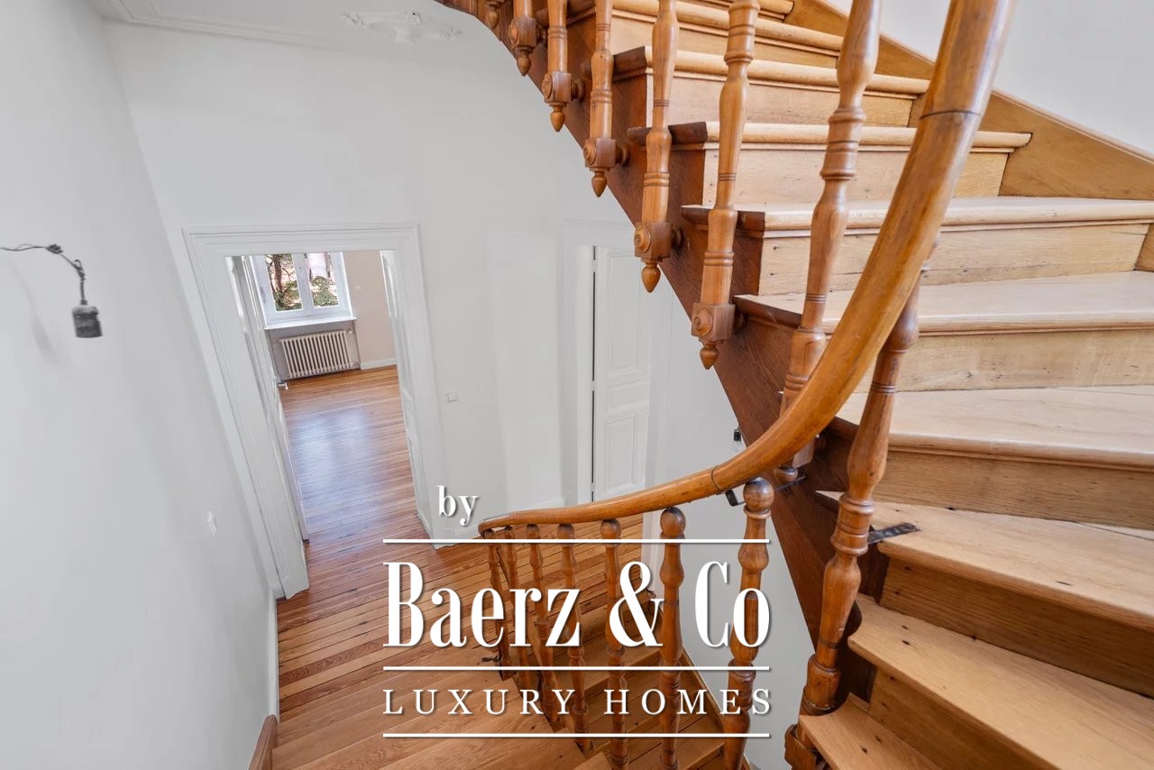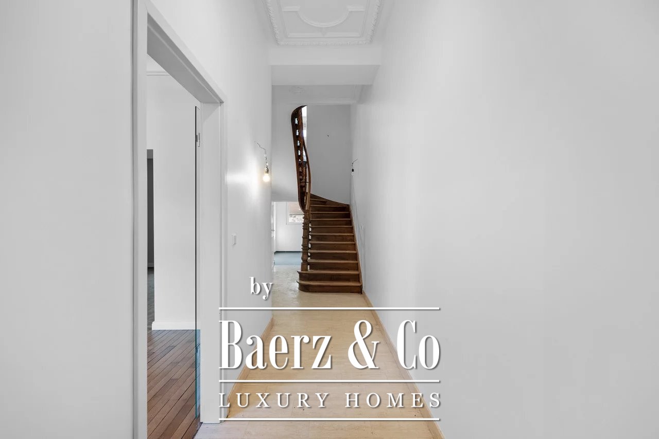 Townhouse Luxembourg forms the focus of this rare opportunity, set at 22 Boulevard de la Pétrusse in the capital’s heart. This 1920s residence presents 160 m² of gracefully updated living space, harmonizing original detail with discreet contemporary finishes. The recent renovation in 2025 elevates ceiling heights to 3.30 meters in the double living room, complemented by double glazing and convector heating for year-round comfort.