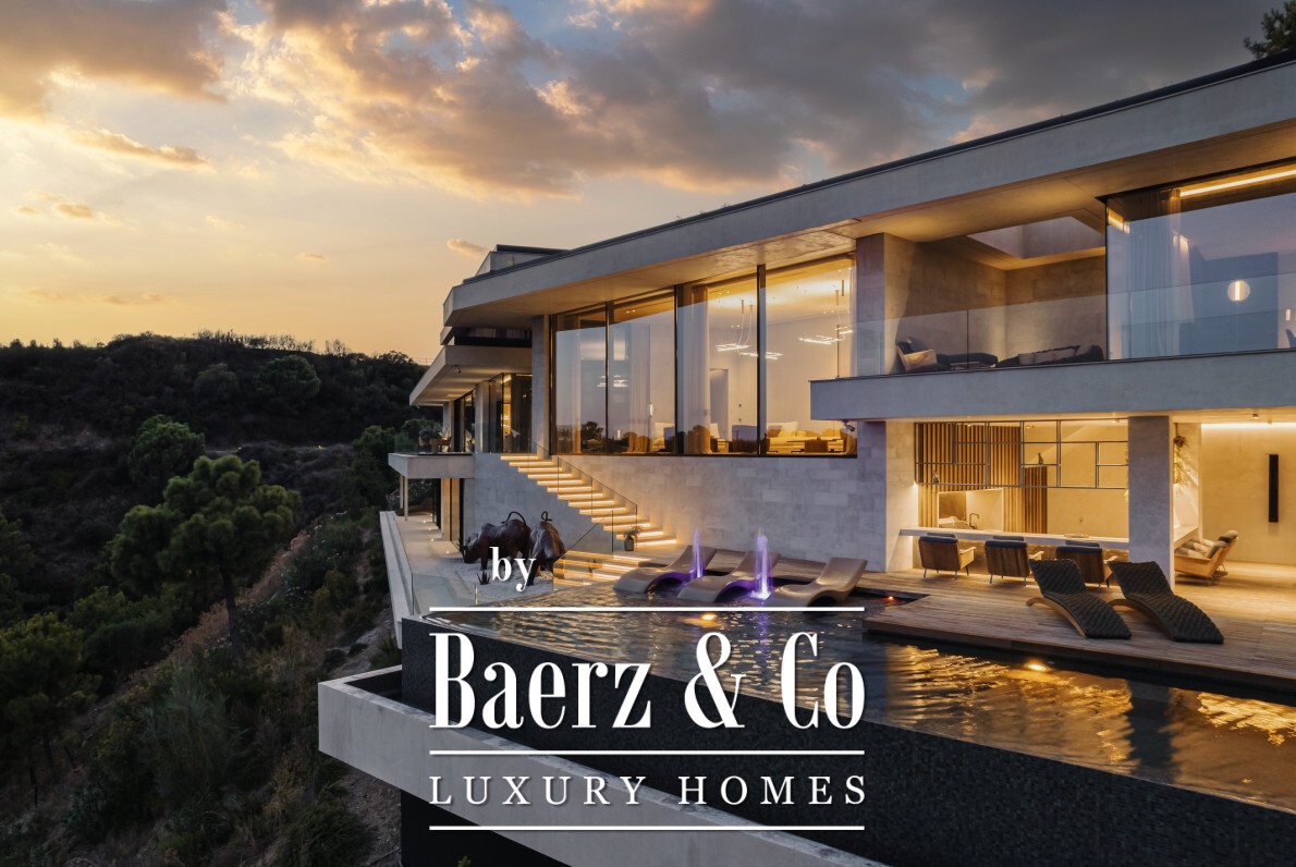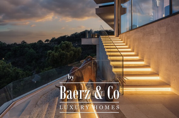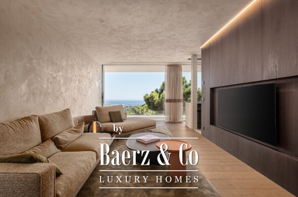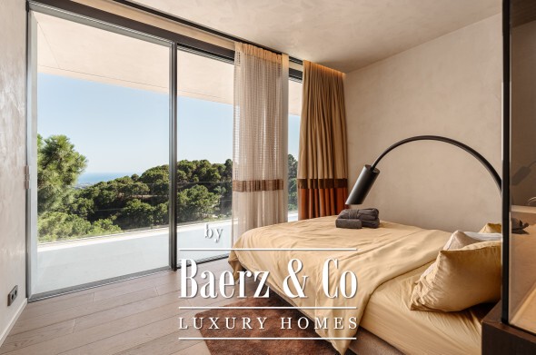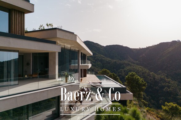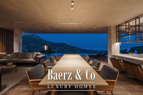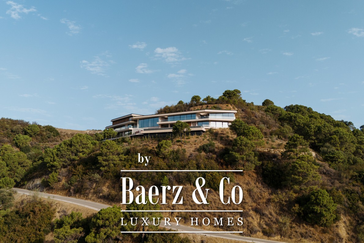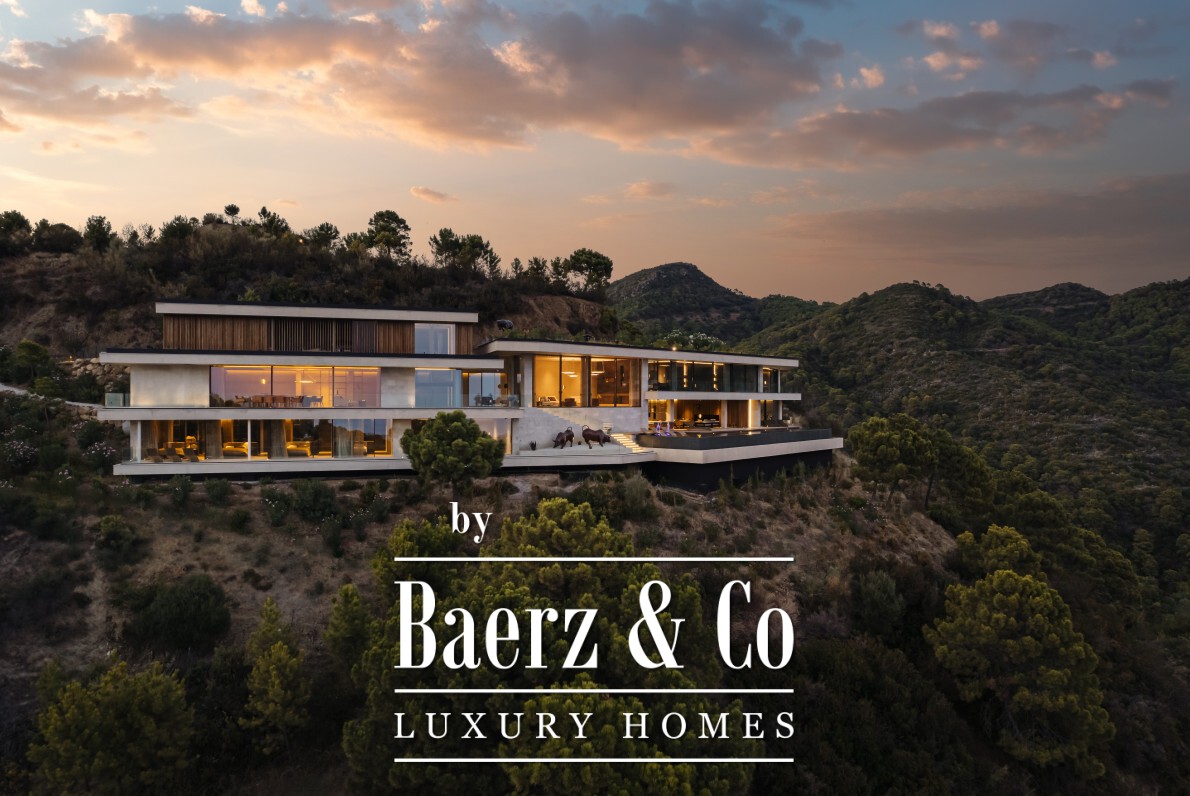 The spectacular house of 1100 m² with 500-m² terraces sits on a large plot of 5.127 m² with an indigenous garden that tolerates drought. It is unique, designed and built for comfort, enjoyment and well-being. The building is fully integrated with the mountains and personalized to the plot, orientation and views. The nature provides an idyllic setting for this luxury property that has a limited footprint on the natural environment and meets an absolute standard of excellence, guided by the principles of sustainable design. It boasts a green roof, solar panels (50 m²) and energy-efficient LED lights. The over-sized picture windows at full ceiling height with Schüco window frames let in the unforgettable, 180 degree panoramic views to the sea and mountains.