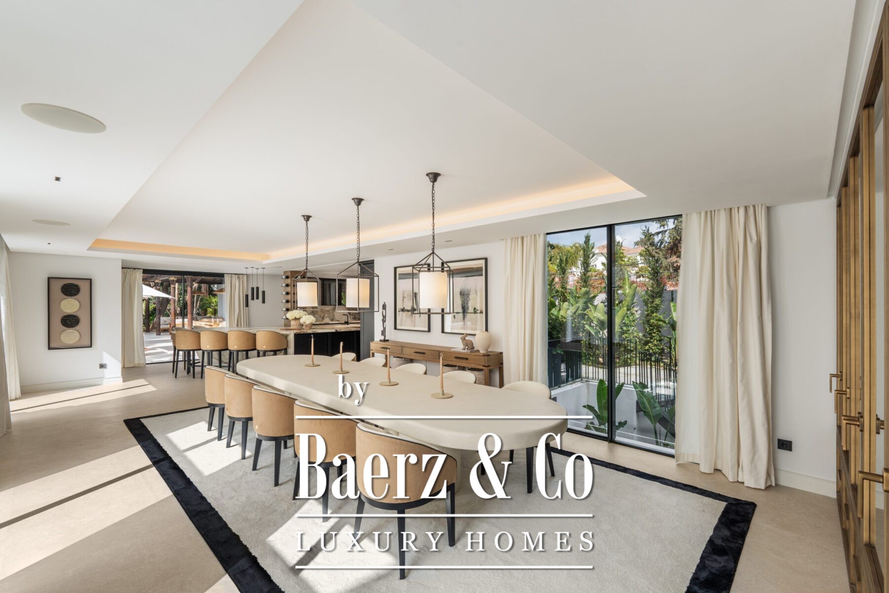 Three discrete TV rooms offer flexibility for gatherings or solitude. Outdoors, lush landscaping forms a private retreat for alfresco dining, sunbathing, or serene pauses beneath Mediterranean skies. Proximity to renowned golf courses, local amenities, the beach, and sweeping golf and mountain views ensures this villa is crafted for those who seek timeless comfort, privacy, and a cultivated pace of life in Marbella.