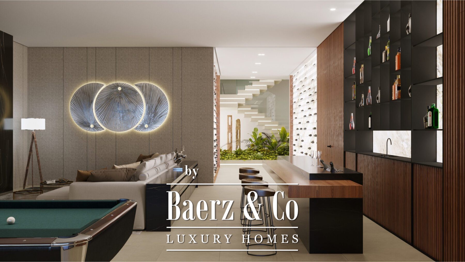 The heart of the home will be its outdoor spaces. An infinity pool will sit at the center of the design, perfectly positioned to make the most of the incredible views. Adjacent to the pool, you'll find a sunken seating area—ideal for gathering with family or friends—alongside an open-air kitchen, perfect for outdoor dining in the warm Mediterranean climate. Water features throughout the outdoor spaces will add a special touch, making every corner feel connected to nature.