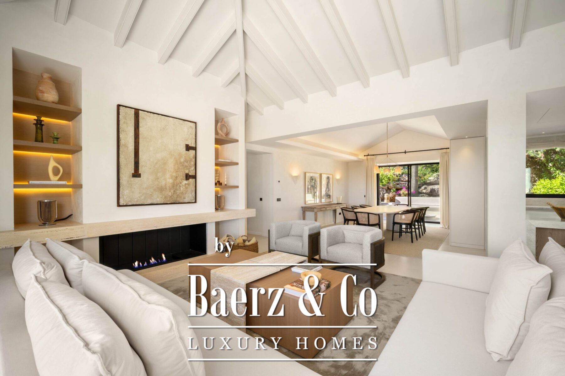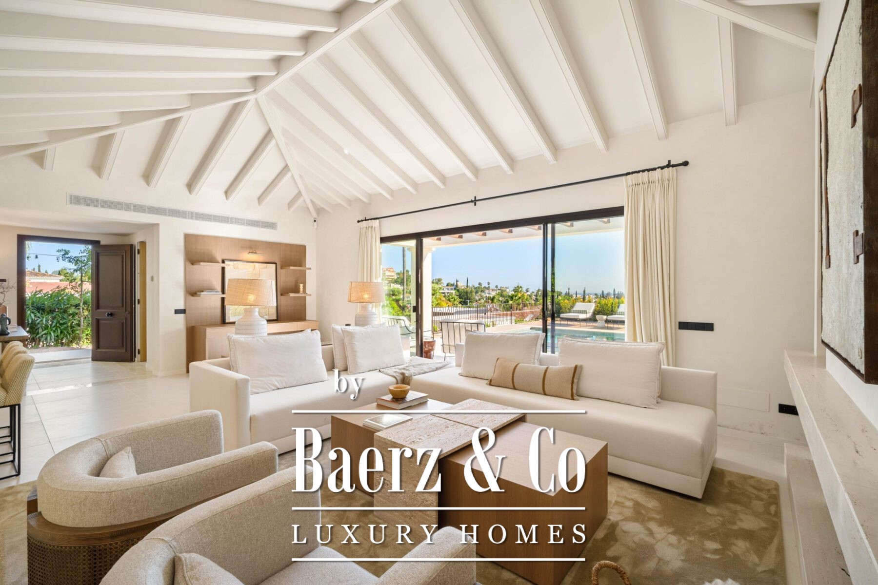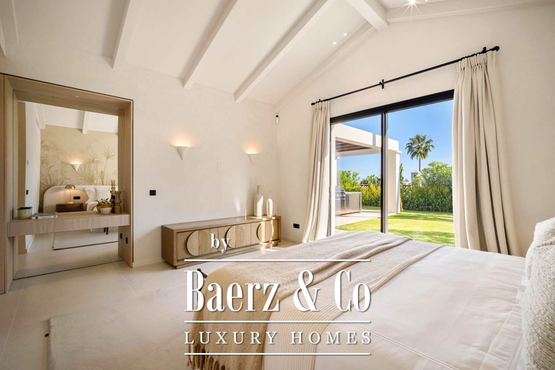 Outside, manicured gardens surround multiple alfresco living zones, ideal for entertaining or unwinding in complete seclusion. A rooftop terrace captures stunning views, while a peaceful courtyard with a water feature offers an intimate retreat. With four spacious bedrooms, including a serene master suite with garden access, and luxurious amenities throughout, this villa is a rare fusion of sophisticated living and relaxed coastal charm in one of Marbella’s most desirable locations.