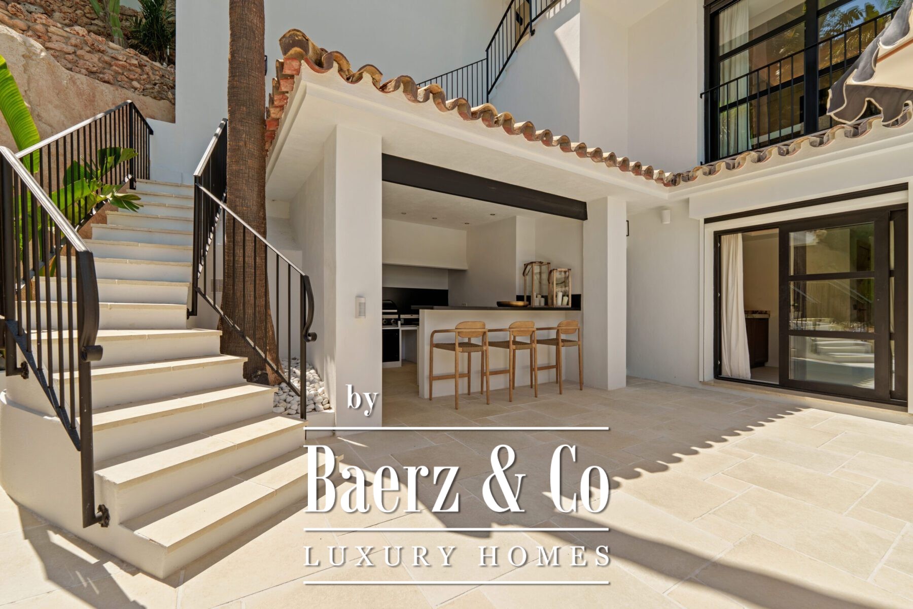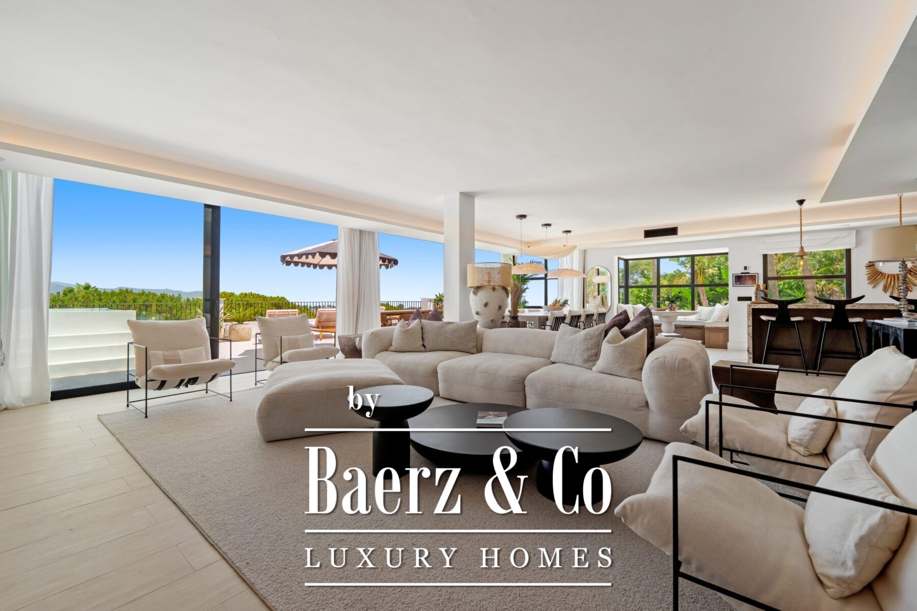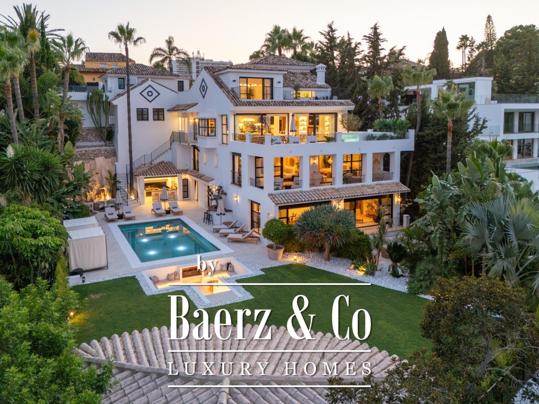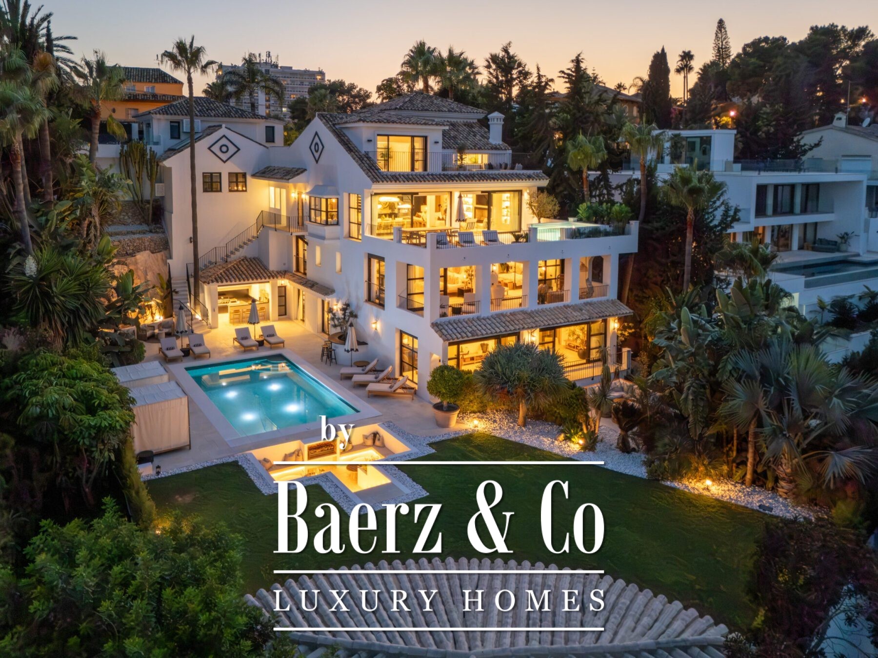 Villa Marbella with panoramic sea and mountain views epitomises the interplay of refined Mediterranean tradition and contemporary architecture in one of the most coveted enclaves of Nueva Andalucía. This expansive villa is arranged over five levels and offers 965 m² of living space on a 1,474 m² plot, blending Andalusian charm with considered, modern elegance.