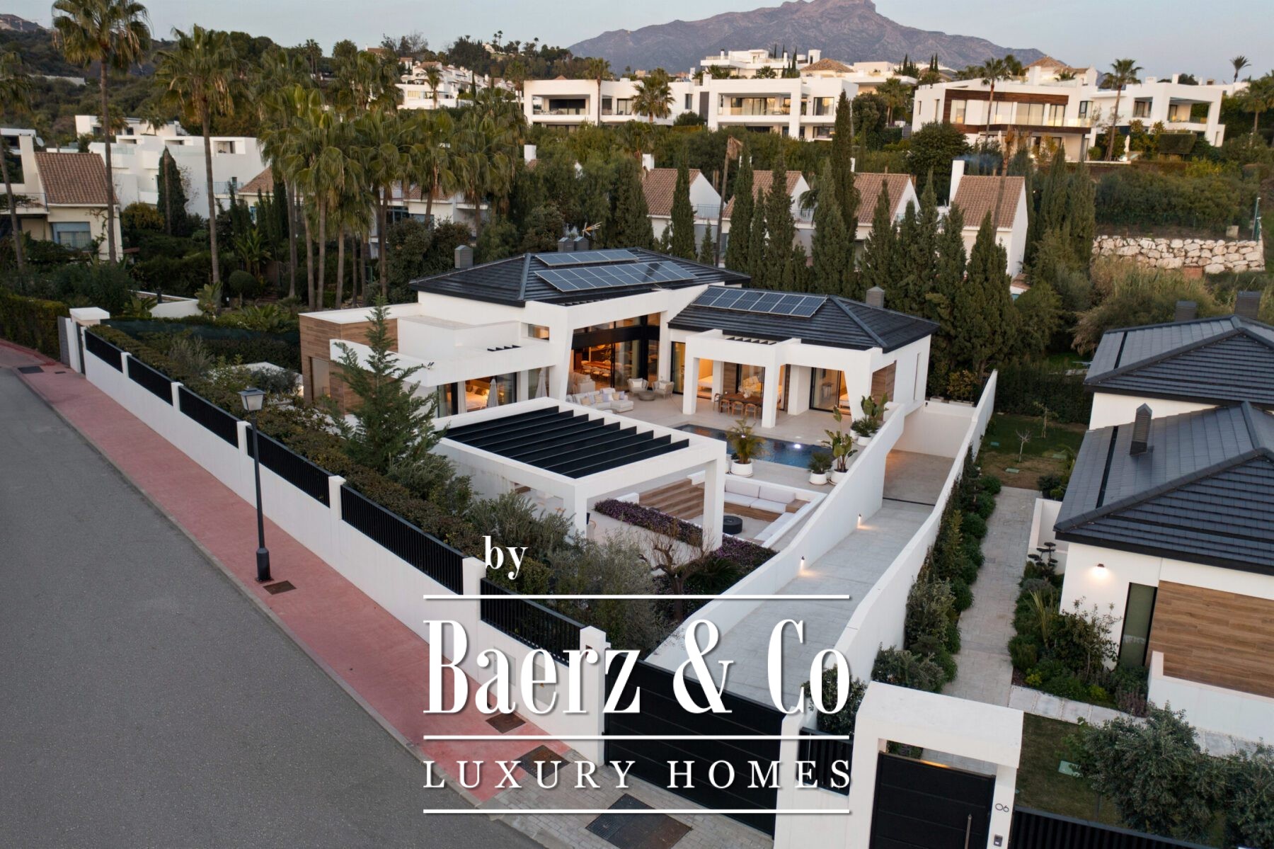Technical specifications include comprehensive home automation, underfloor heating, air conditioning, Sonos sound systems, solar panels, advanced insulation, and security. The villa is close to golf, international schools, beaches, and curated amenities, inviting a year-round lifestyle attuned to privacy and design. For those seeking a luxury villa for sale in Marbella, this address combines architectural clarity with a coveted setting.