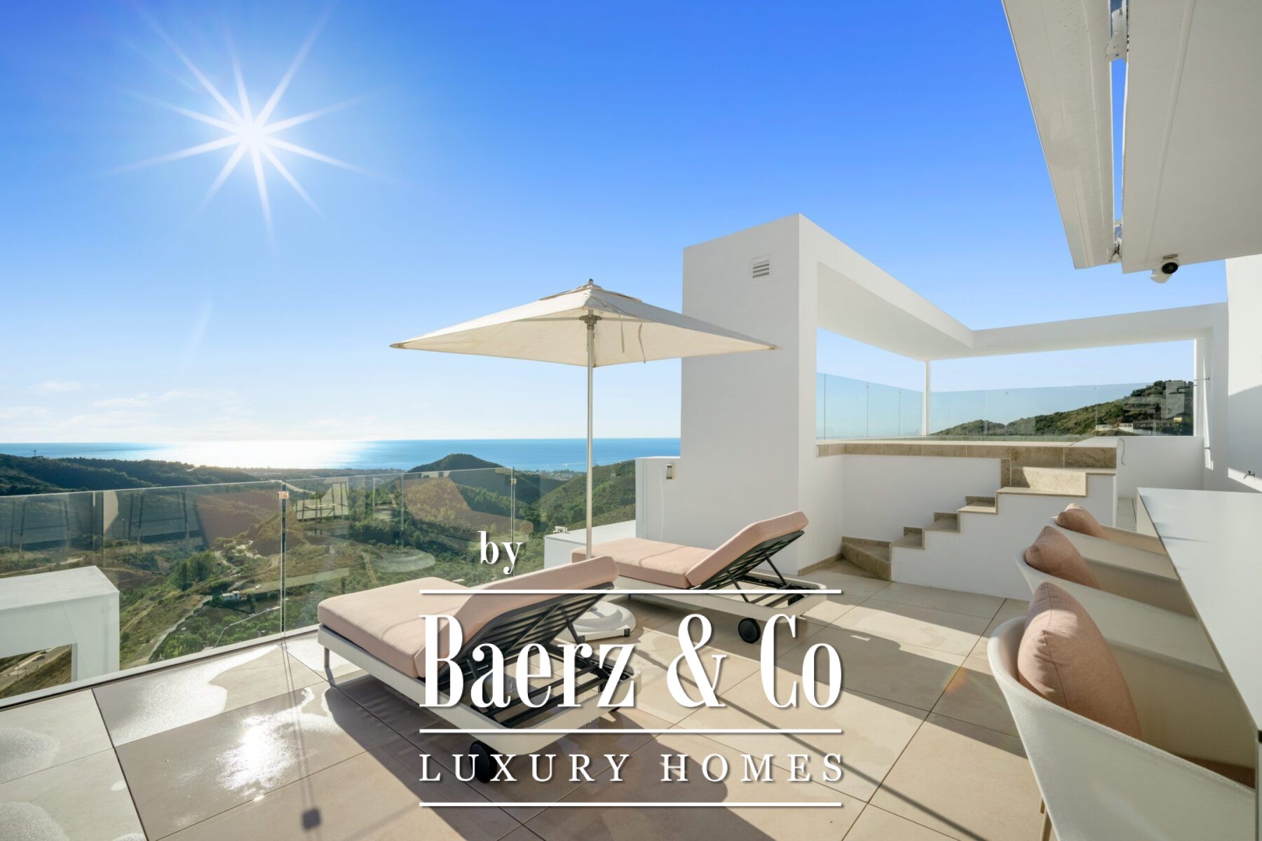 Residents enjoy 24-hour security and an array of resort-inspired amenities: clubhouse, spa, gym, sauna, cold plunge, cinema room, tennis courts, scenic hiking trails, and an on-site organic market. Located within minutes of Marbella's coast, golf courses, and all local conveniences, this duplex penthouse Marbella is a statement of elevated living in a privileged setting.