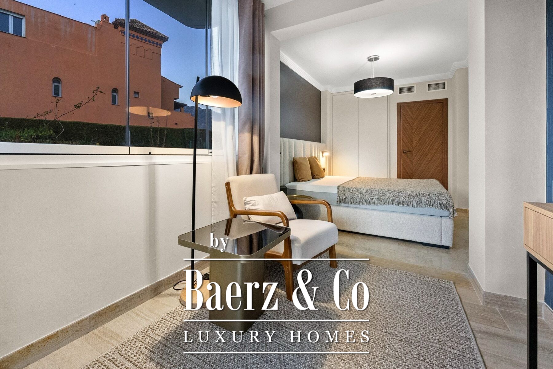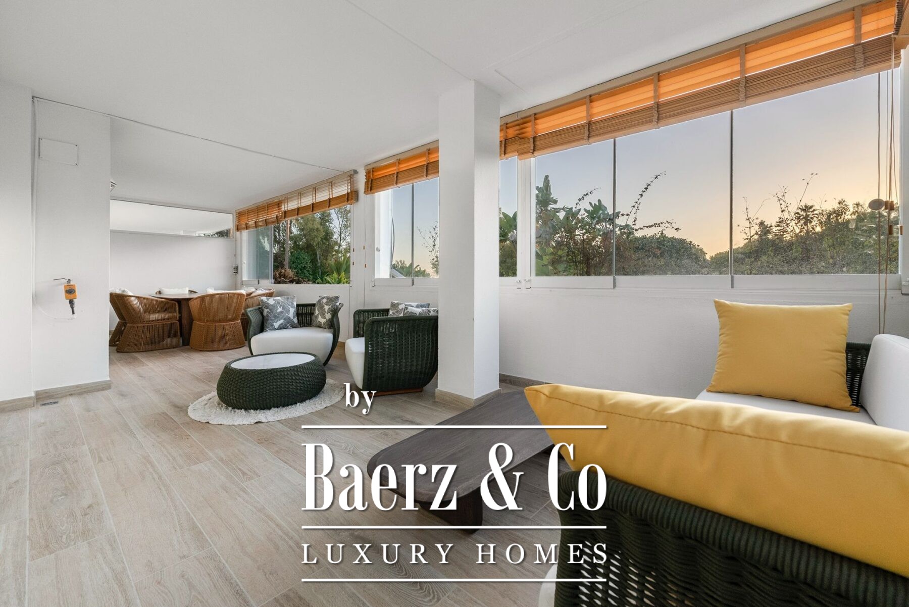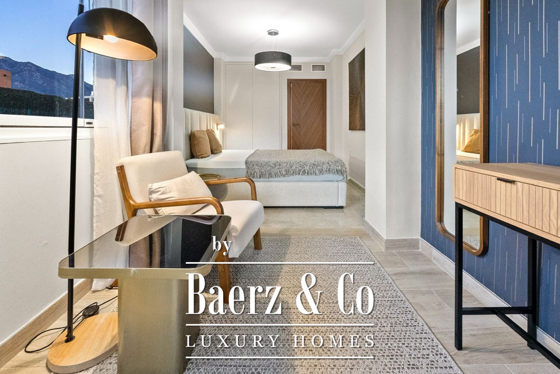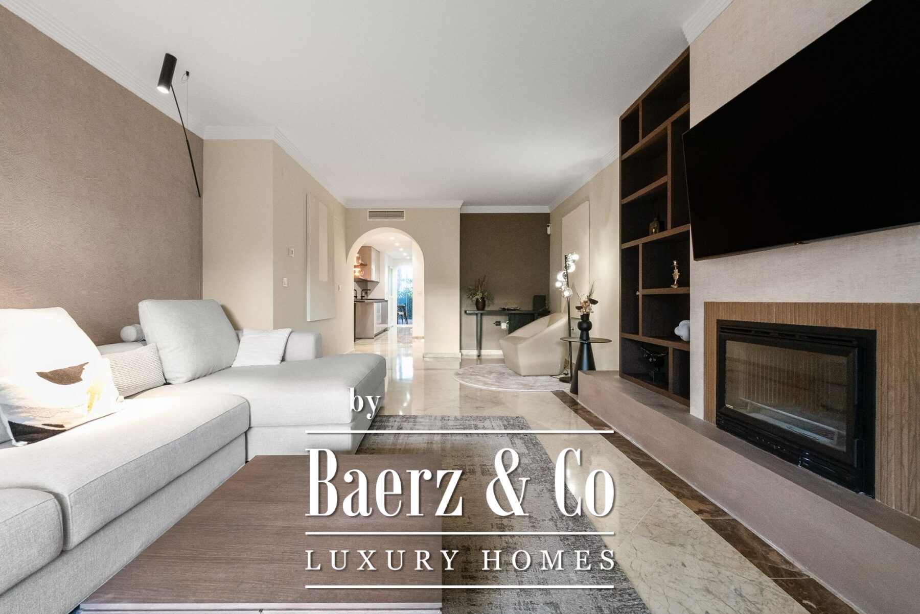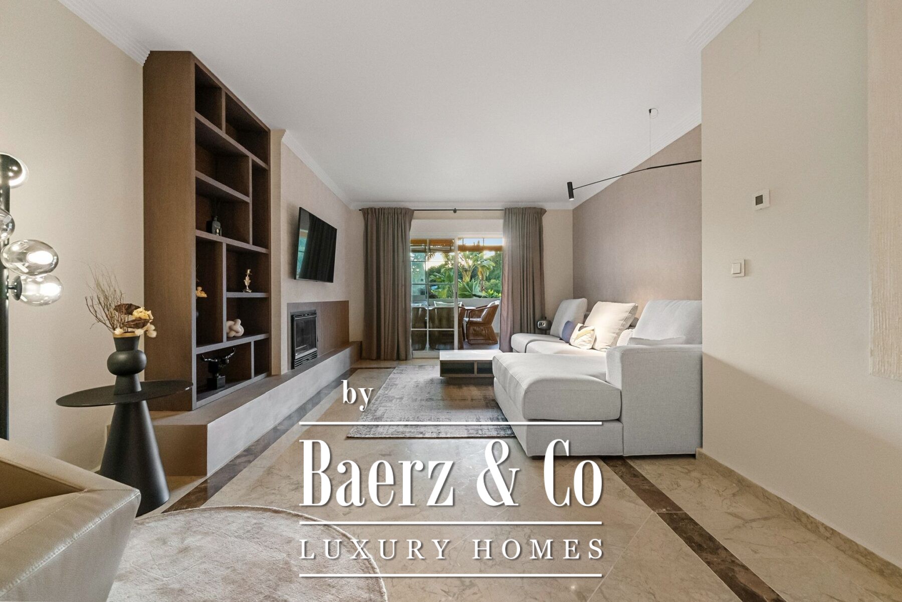 Apartment Marbella Golden Mile presents refined single-level living within a gated enclave on the renowned Golden Mile. This three-bedroom residence spans 160 m², designed to maximize both comfort and privacy, with light-filled interiors opening to a covered terrace that offers tranquil garden and pool views.