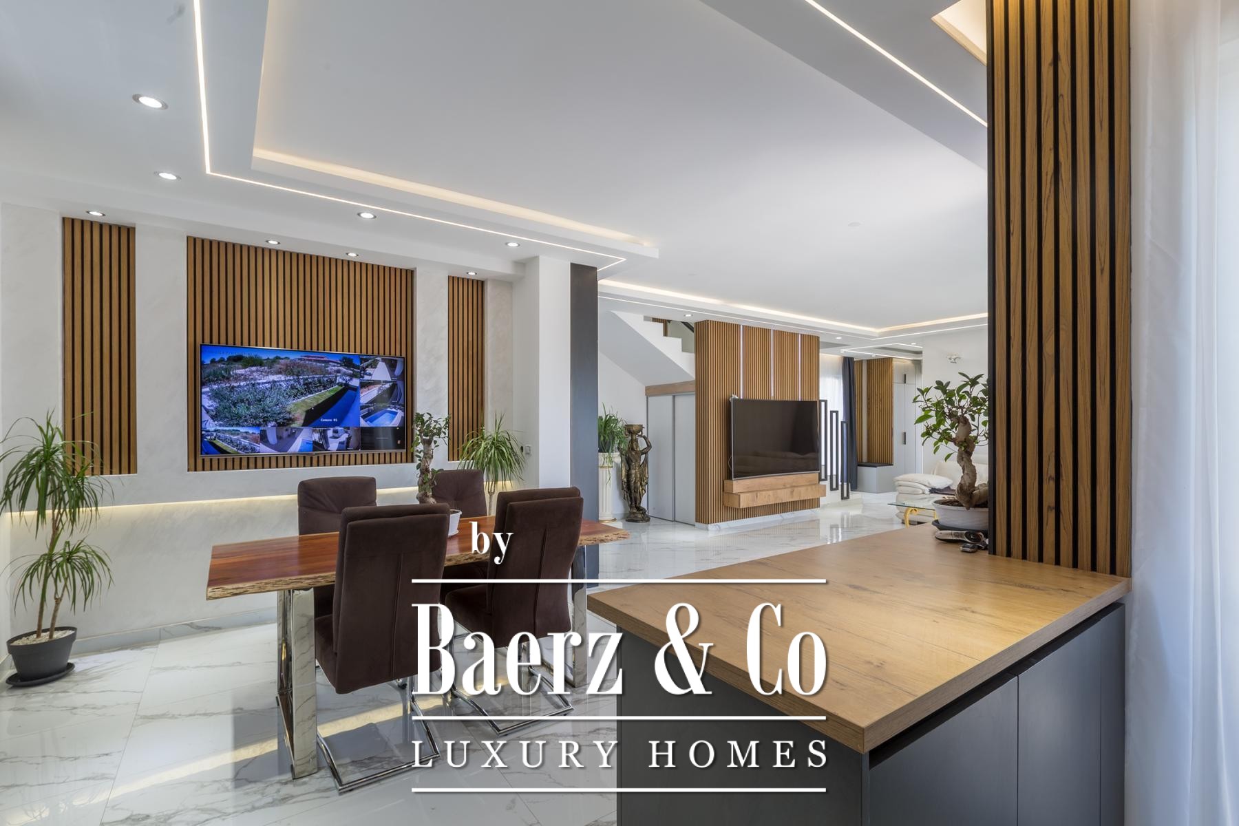 throughout the staircase. This floor houses three elegant and spacious bedrooms, each meticulously furnished with an emphasis on comfort and privacy. Each bedroom features its own modern en-suite bathroom, equipped with premium sanitary ware and designer details, ensuring complete comfort for every resident or guest. The master bedroom particularly stands out, offering generous space, providing a private sanctuary for rest and relaxation. All three bedrooms have direct access to a large covered terrace, offering views of the surroundings and ideal for morning coffee or evening relaxation in the fresh air.This exceptional property is equipped with the latest 'smart home' system, allowing you full control over lighting, temperature, security, and other villa functions via smartphone or tablet, achieving an unprecedented level of comfort and energy efficiency. The fireplace in the living room provides additional warmth and ambiance during cooler months, while a dedicated storage room within the villa offers a practical solution for belongings. The villa comes fully furnished and ready for immediate occupancy, with carefully chosen furniture and decorations that reflect a modern yet warm style.The villa's entrance courtyard is cleverly designed with ample space for parking three vehicles, discreetly located in a lower terrain section, thus not disturbing the aesthetic harmony of the entire property. This is an ideal property for anyone seeking a luxurious family home, a peaceful holiday retreat, or an exceptional investment opportunity for tourism purposes. Medulin, with its rich amenities, beautiful beaches, and proximity to Pula and the Brijuni National Park, offers inexhaustible possibilities for enjoying nature, culture, and active leisure. This villa represents the pinnacle of contemporary living in the heart of Istria, offering privacy, comfort, and incomparable beauty.Do not miss the opportunity to become the owner of this architectural gem in Medulin, where luxury meets nature, and modern design meets the warmth of a home. For more information about this beautiful villa and to arrange a viewing, we are at your disposal.
