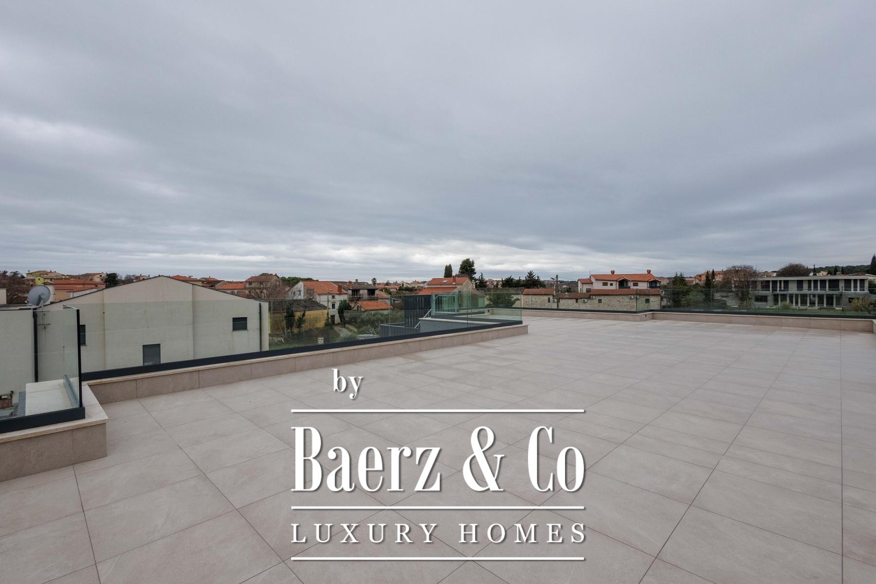 Villa Medulin steps from the Adriatic is a contemporary retreat set just 20 meters from the shoreline in the south of the Istrian peninsula. This property offers 390 m² of living space, thoughtfully arranged across two floors, with a roof terrace that frames long sea views and southern light. The villa occupies a 720 m² plot, where interiors open easily to the outdoors. The ground level centers around a bright open plan living space, leading onto a covered terrace and a south-facing swimming pool. A modern kitchen, guest suite with bathroom, guest toilet, and generous storage spaces set a functional tone.